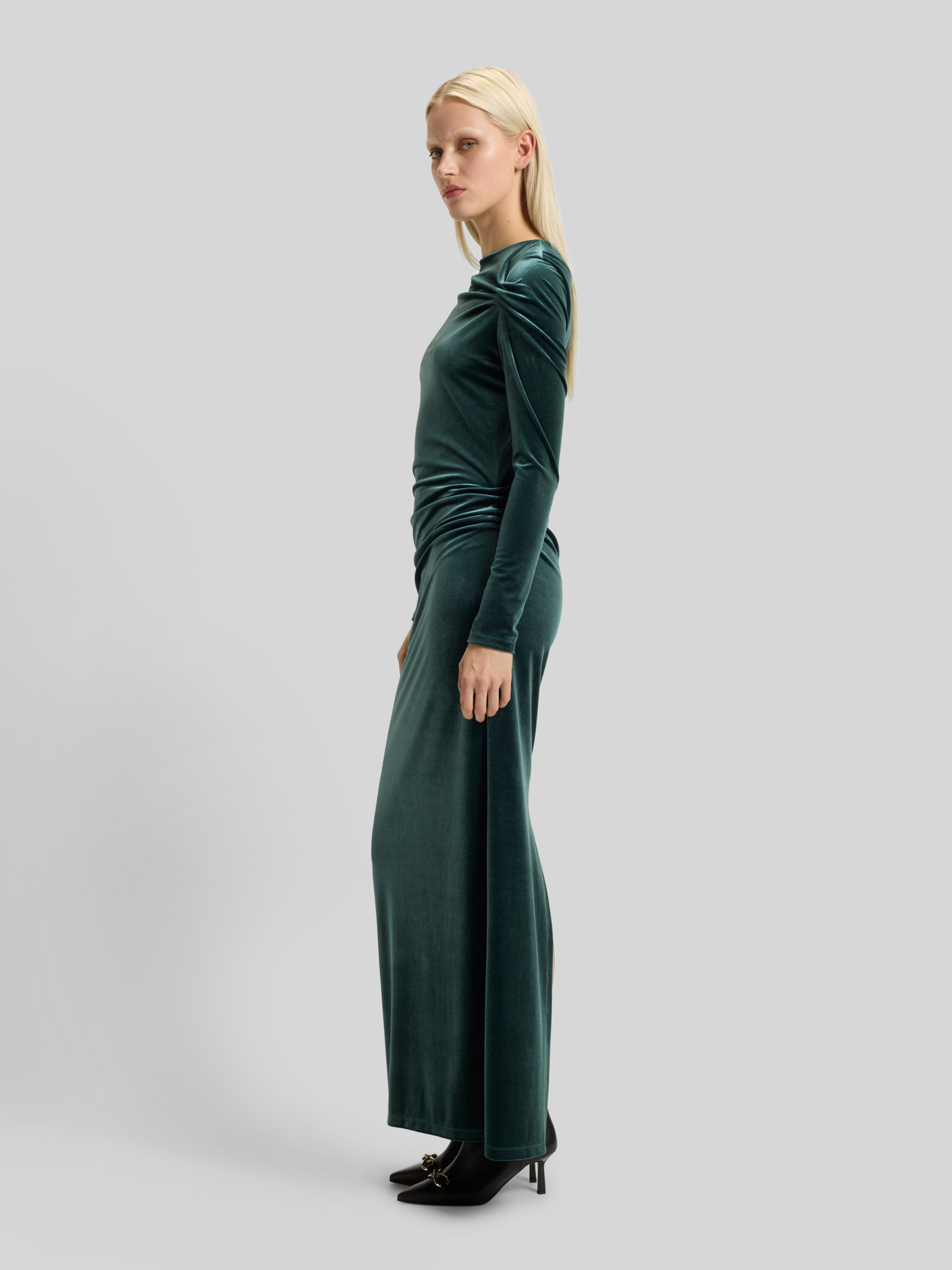 Das Damen Maxikleid von HUGO, Modell 'Narteco', legt den Fokus auf eine schmale Passform und einen hochgeschlossenen Ausschnitt, wodurch eine klare Silhouette entsteht. Der weiche Samt sorgt für ein angenehmes Tragegefühl und unterstreicht die unifarbene Optik. Dezente Raffungen setzen Akzente und unterstützen eine elegante Ausstrahlung.