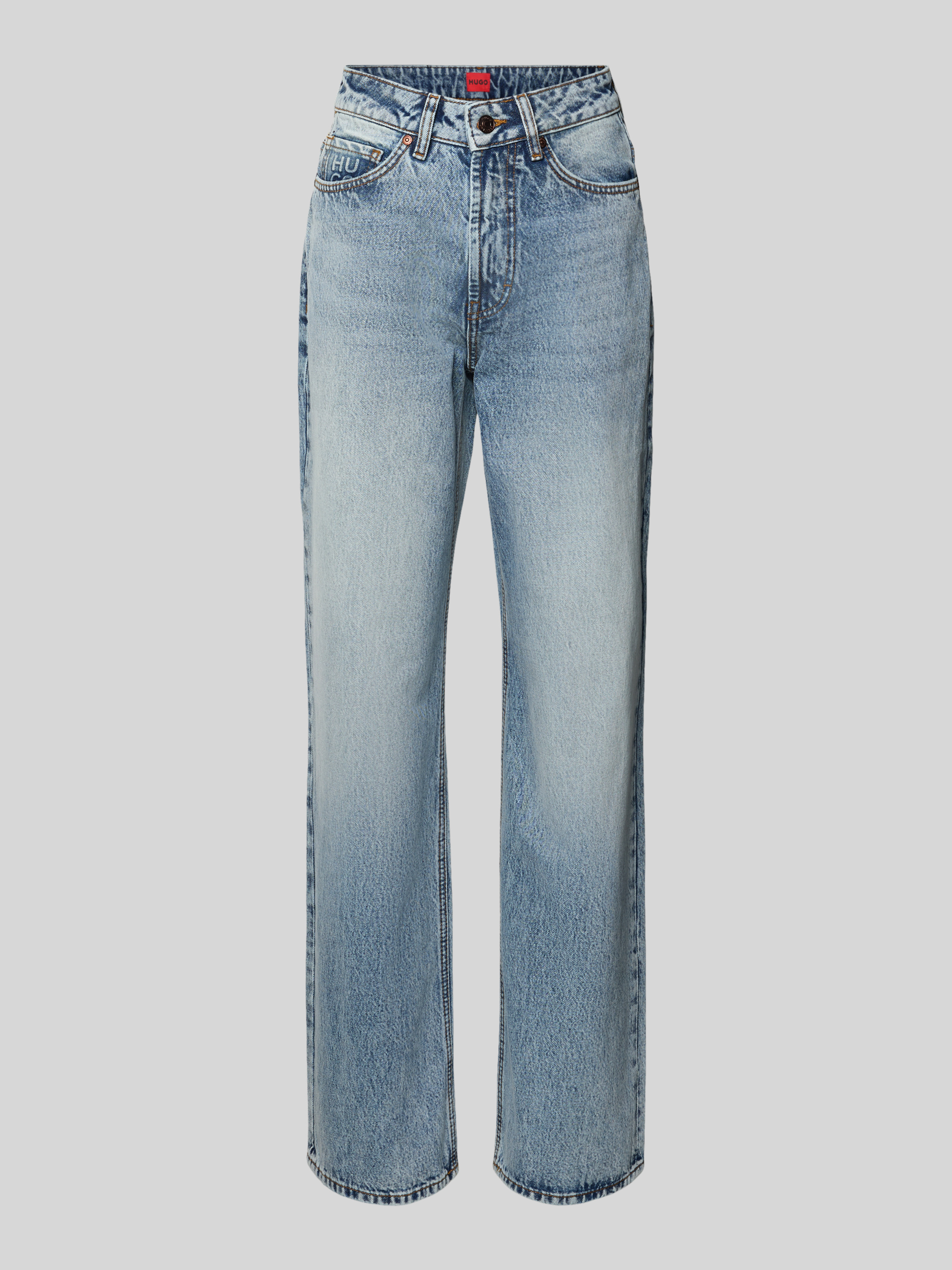 Die Damen Straight Fit Jeans von HUGO, Modell '937_14', zeigt sich in Melange-Optik und fällt durch ihren Wide Leg-Schnitt angenehm locker. Durch die reine Baumwolle fühlt sich das Material besonders weich an und liegt angenehm auf der Haut. Dank High-Waist und Label Patch entsteht eine moderne Silhouette, die vielseitig kombinierbar bleibt.