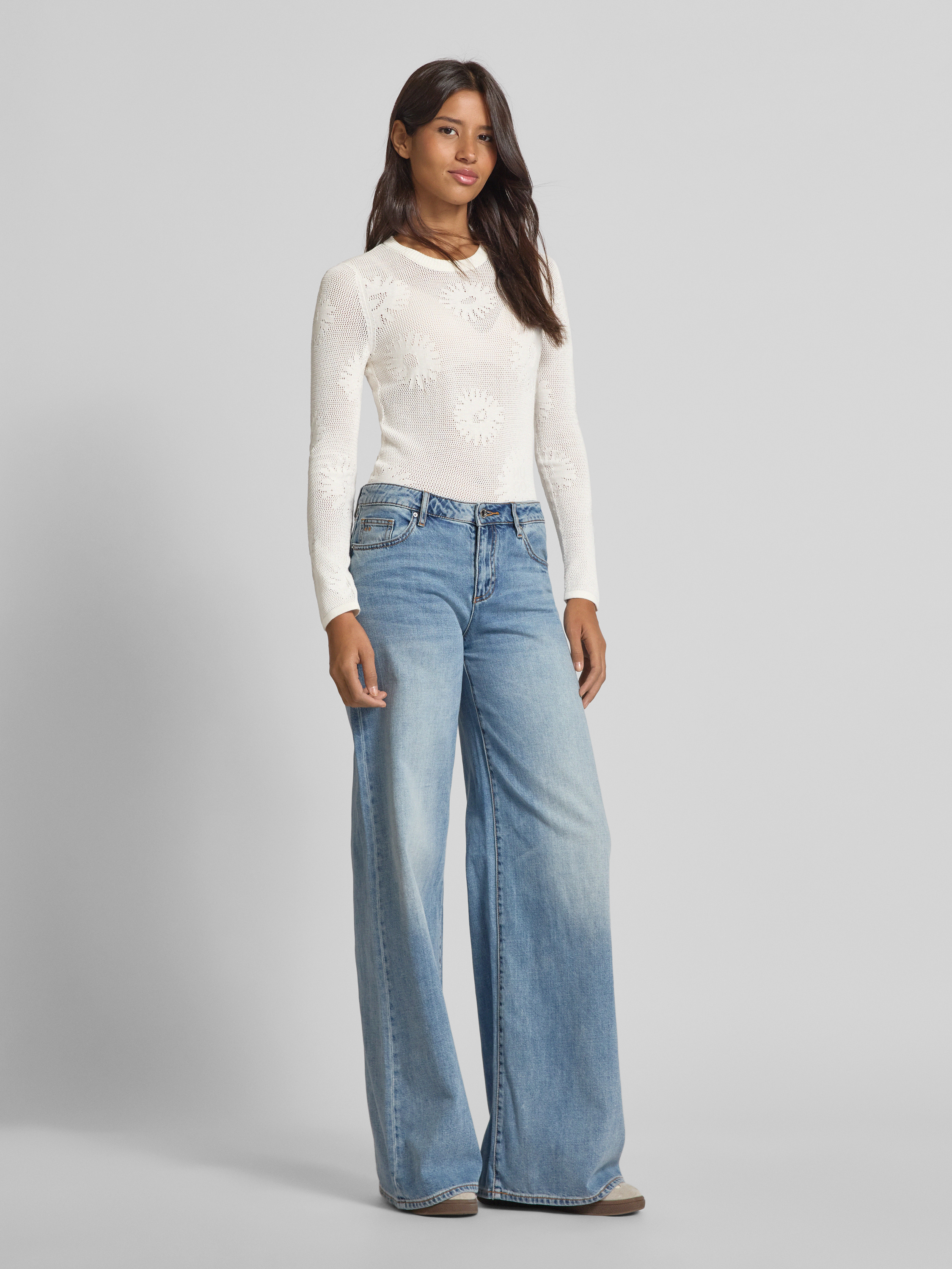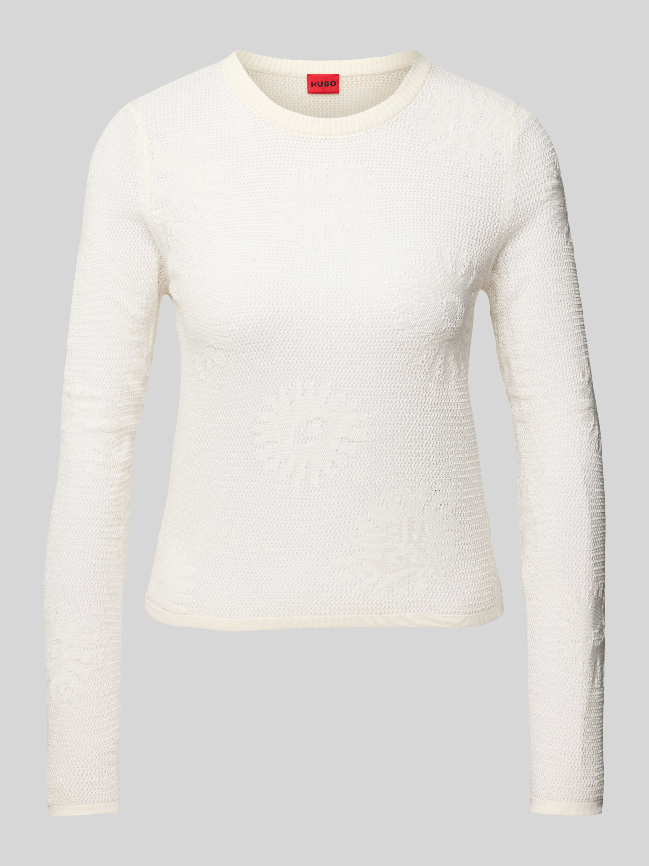 HUGOStrickpullover mit gerippten Abschlüssen Modell 'Saisy' in offwhite