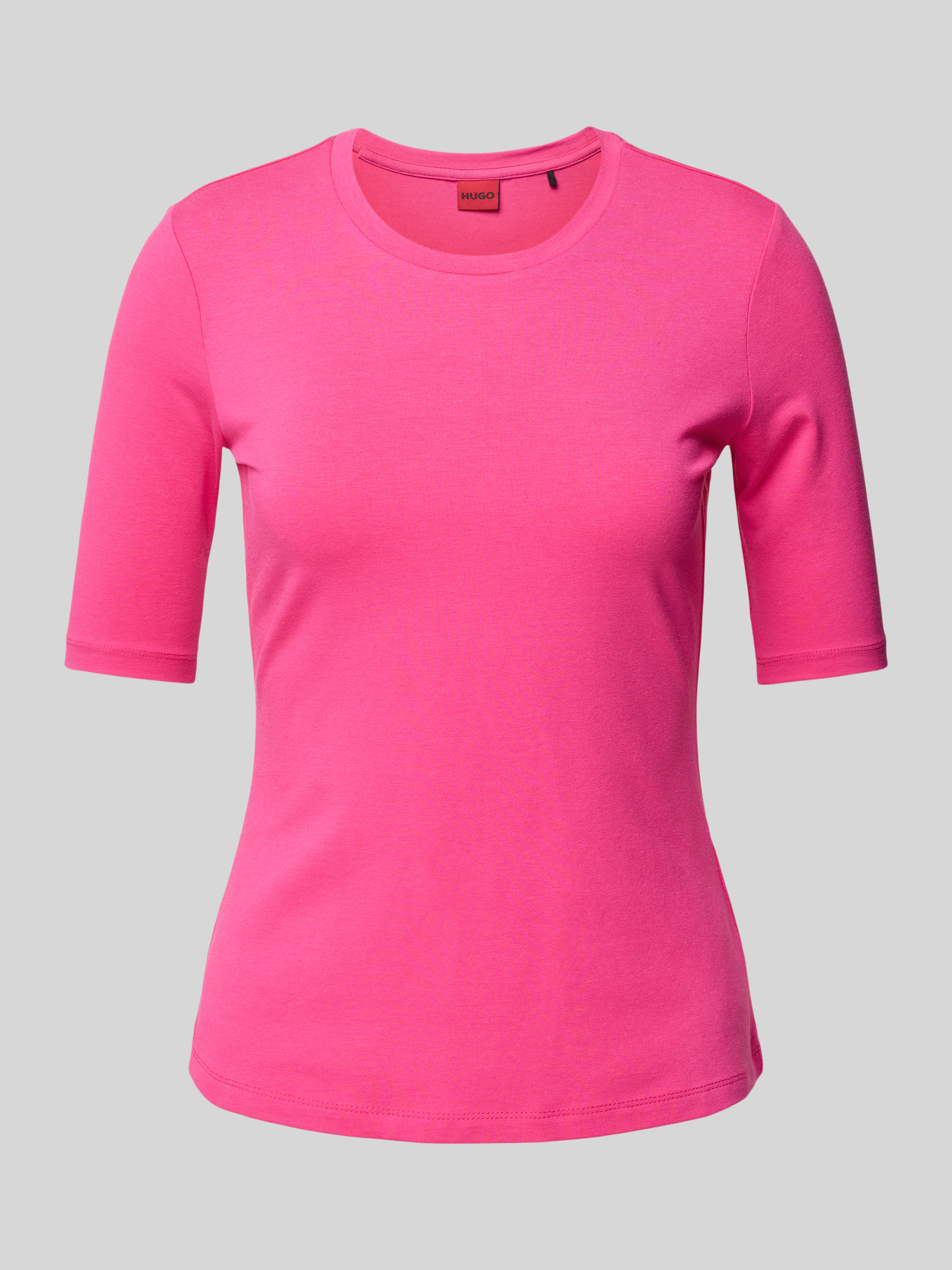 HUGOT-Shirt mit geripptem Rundhalsausschnitt Modell 'Darnelia' in pink