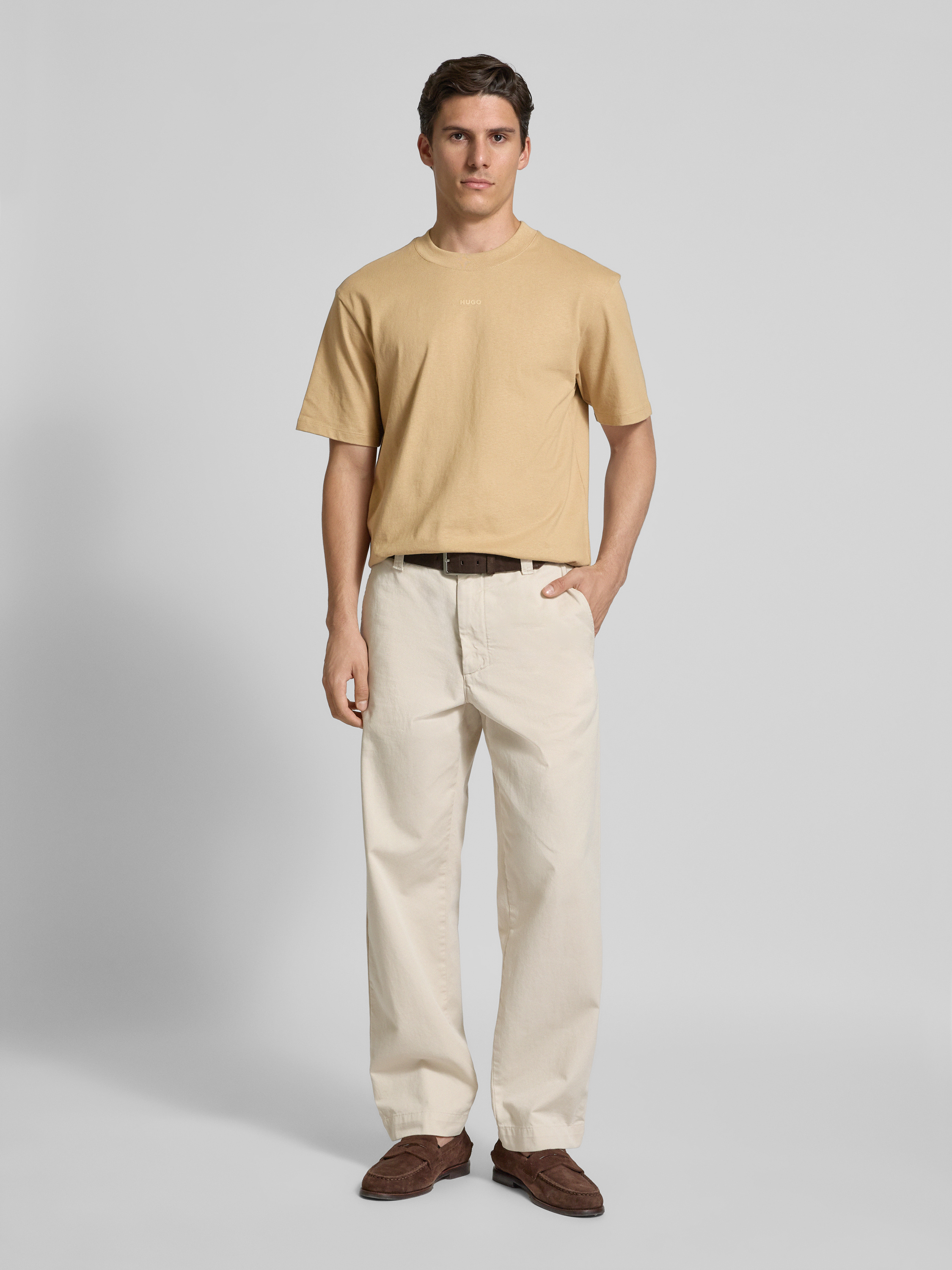 HUGOT-Shirt mit Label-Print Modell 'Dapolino' in beige