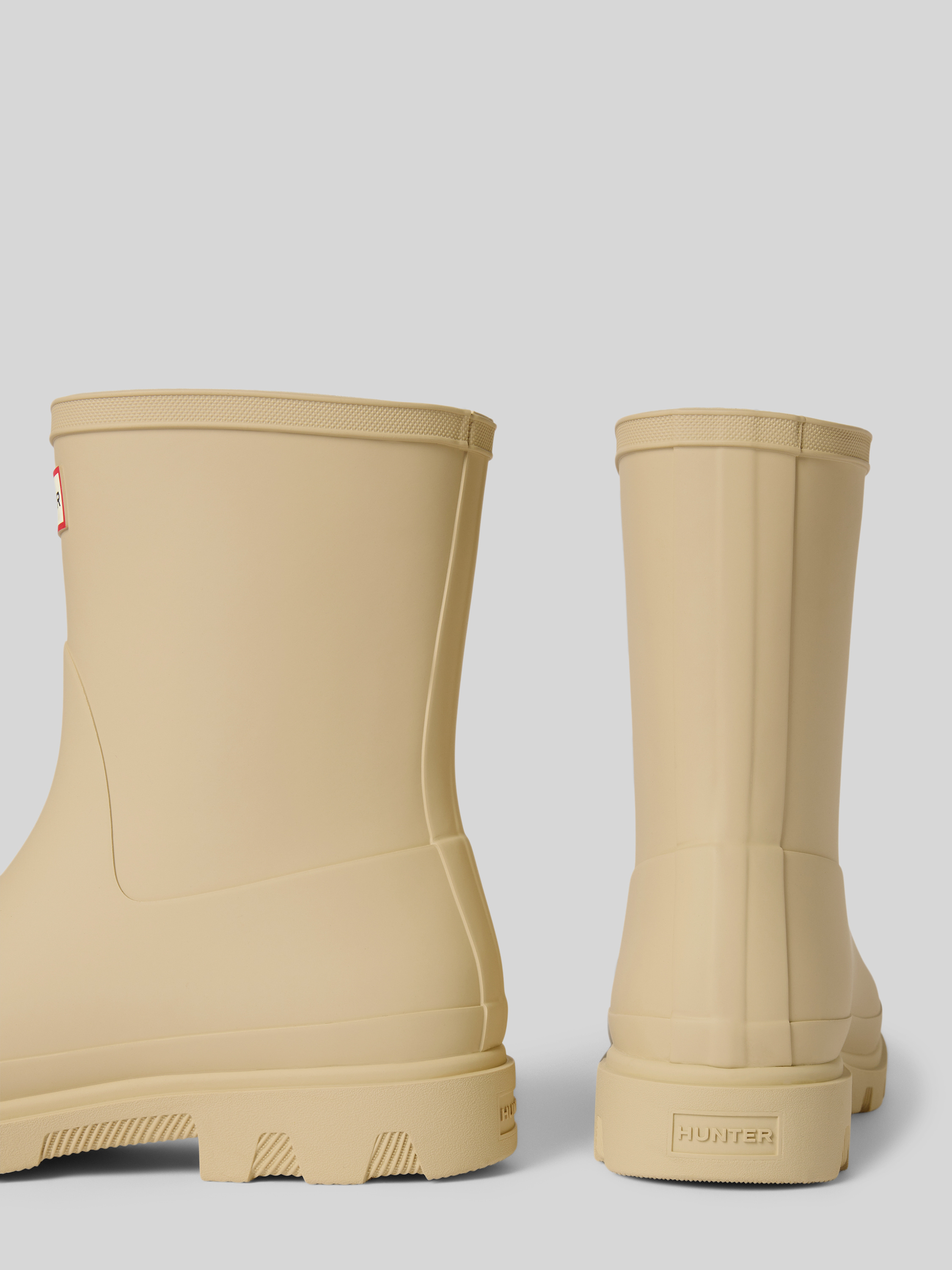 Die Hunter Gummistiefel mit Logo zeigen sich in moderner Schlupfform und abgerundeter Spitze, wodurch ein unkompliziertes Hineinschlüpfen möglich wird. Dank der profilierten Sohle bleibt man auch bei nassem Wetter sicher unterwegs. Das markante Logo setzt einen dezenten, sportiven Akzent.