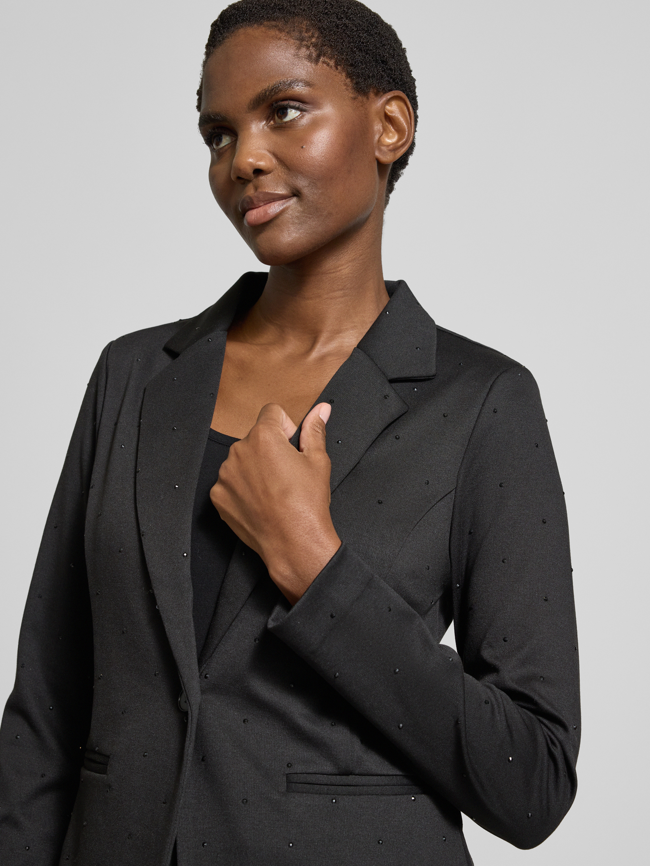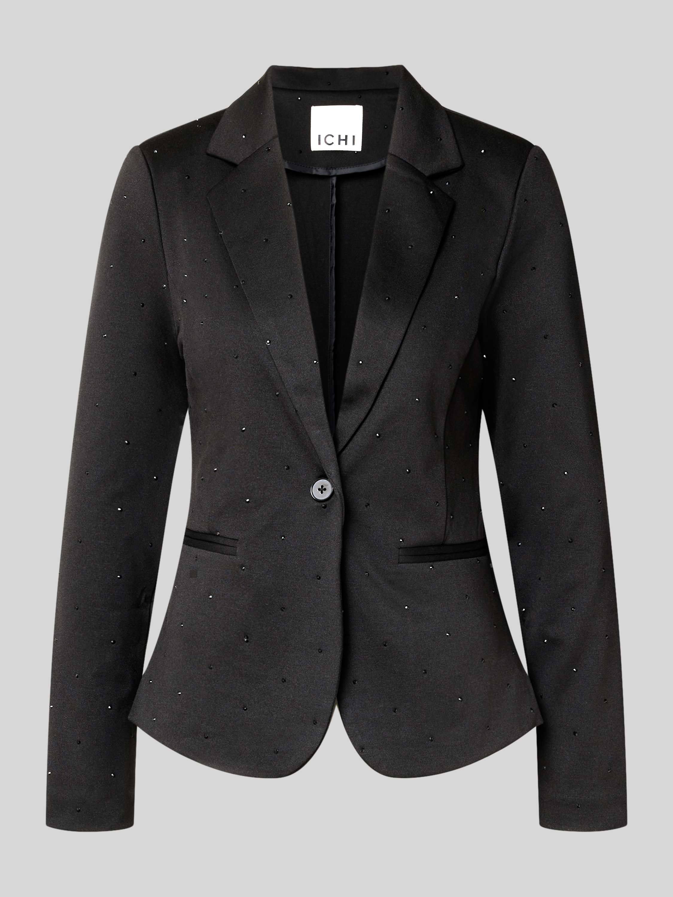 Der Damen Blazer mit Reverskragen Modell 'KATE' von ICHI sitzt in einem Regular Fit angenehm und sorgt für eine klassische Silhouette. Durch den Material-Mix mit Viskose-Anteil wirkt die Oberfläche weich und trägt sich bequem. Dank der Eingrifftaschen bleibt Kleines schnell zur Hand, während der Schnitt vielseitige Kombinationen ermöglicht.