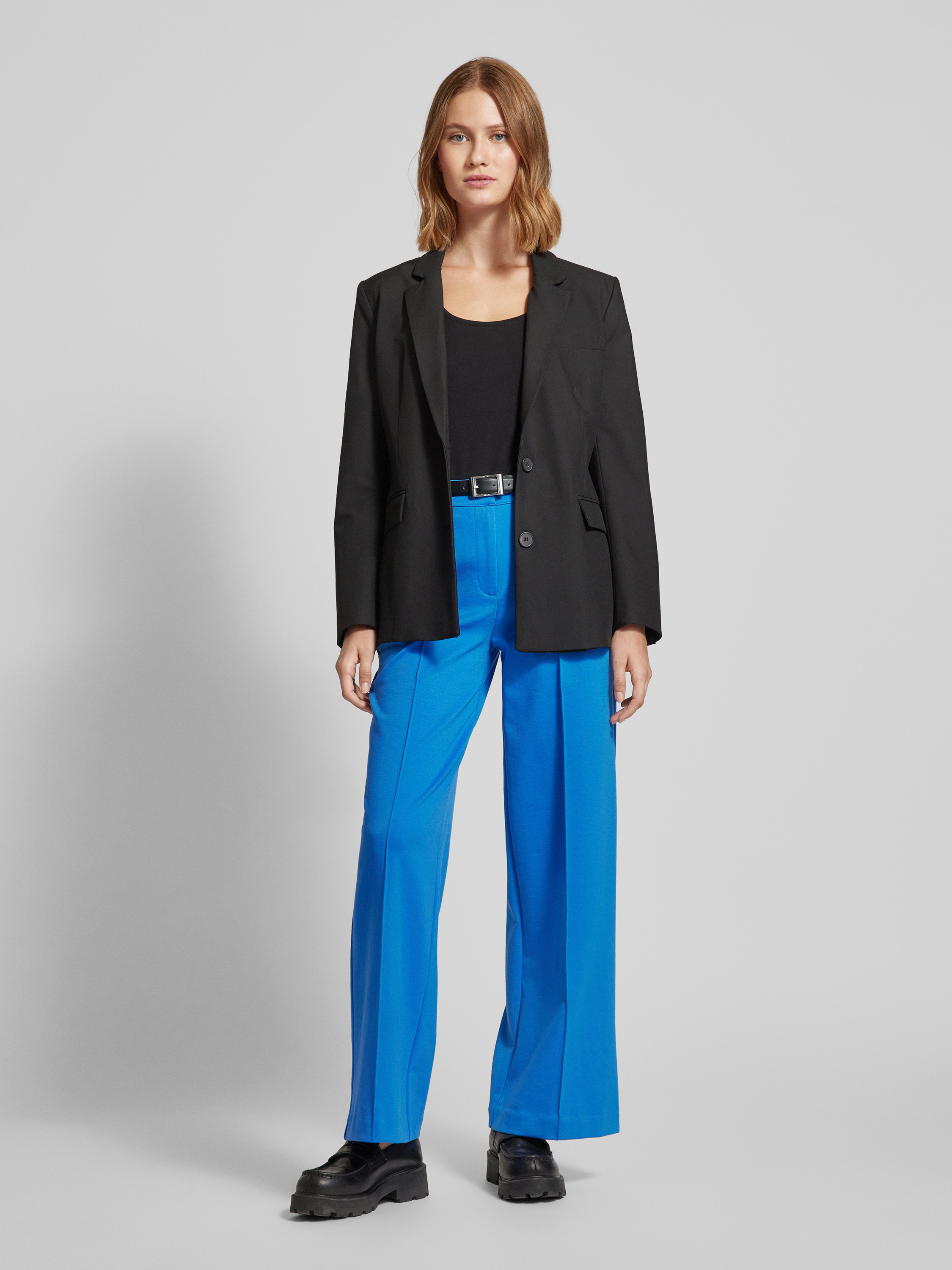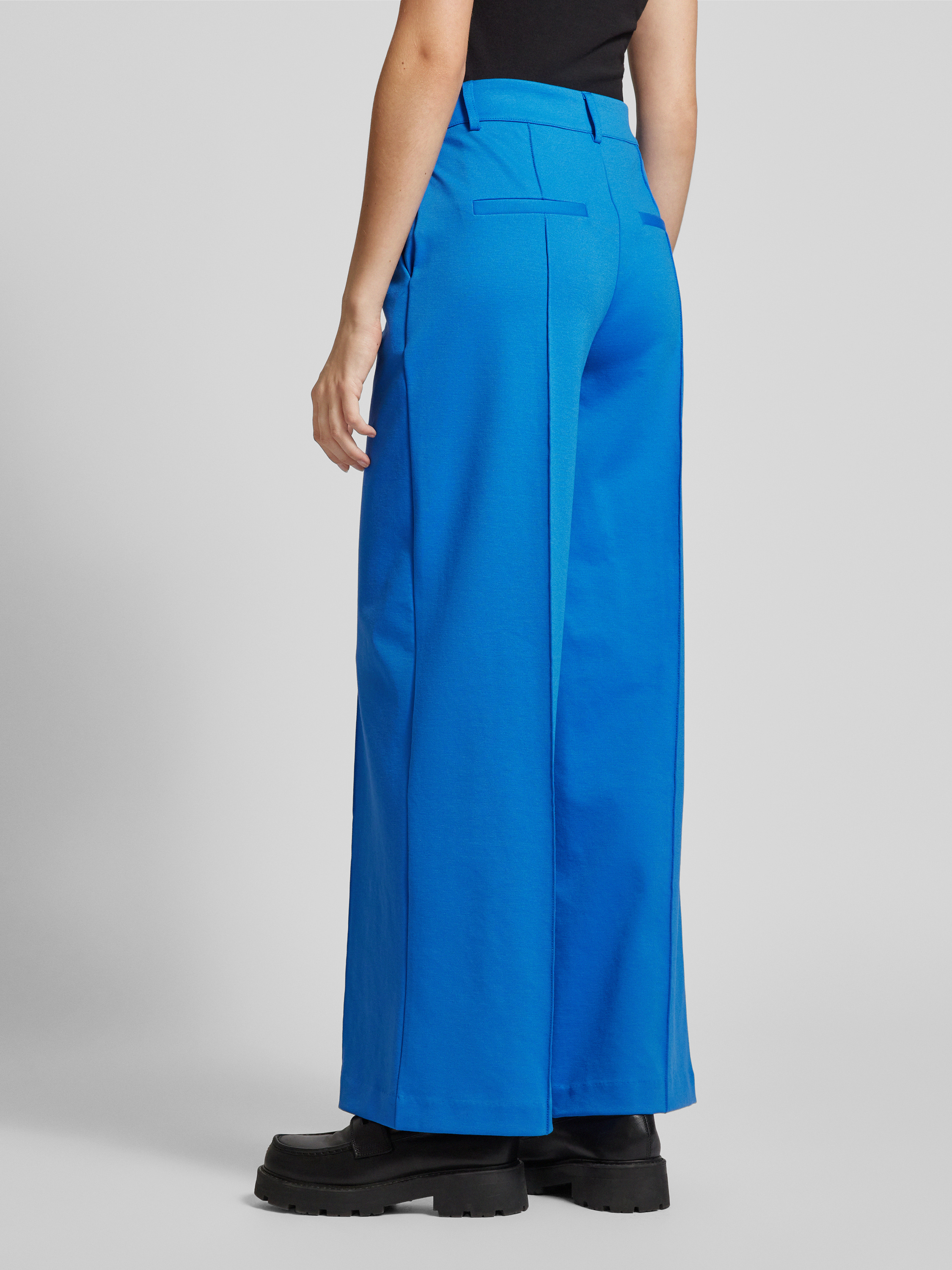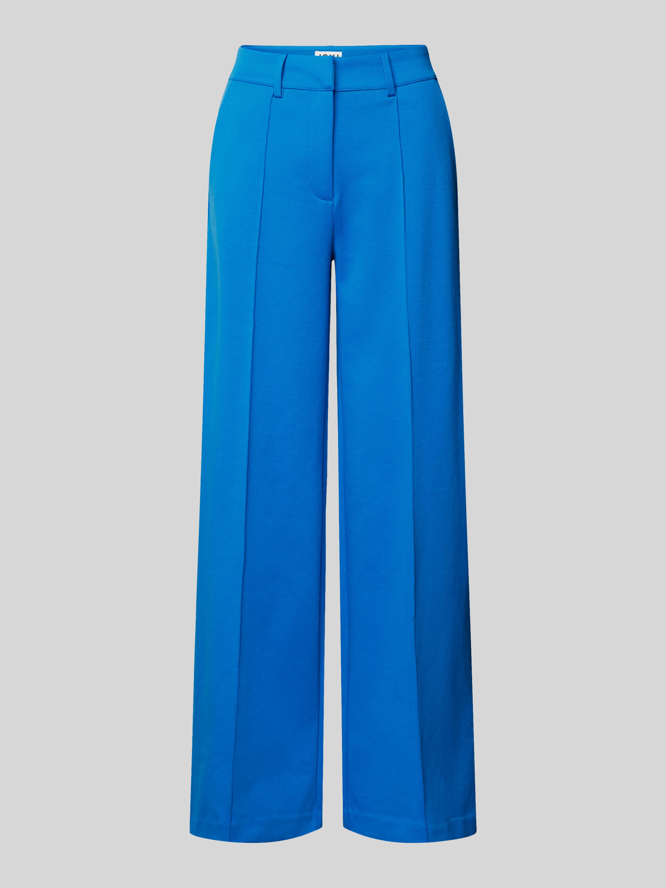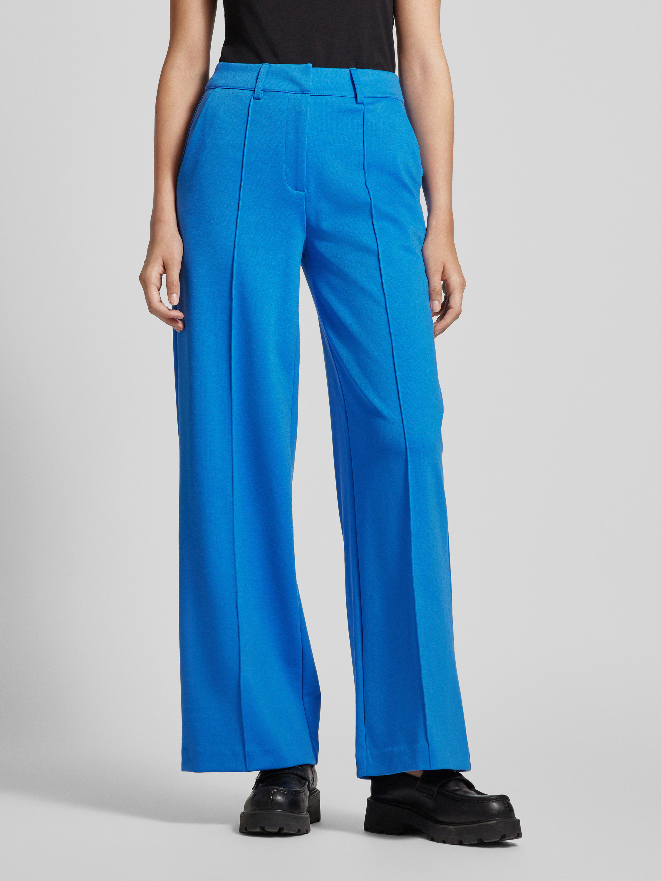 Die Damenhose von ICHI, Modell 'KATE', kombiniert einen stilvollen Material-Mix mit einem komfortablen Viskose-Anteil. Durch das weite Bein und die eleganten Bügelfalten entsteht ein legerer Look, der vielseitig im Alltag getragen werden kann. Der Hakenverschluss rundet das Design ab.