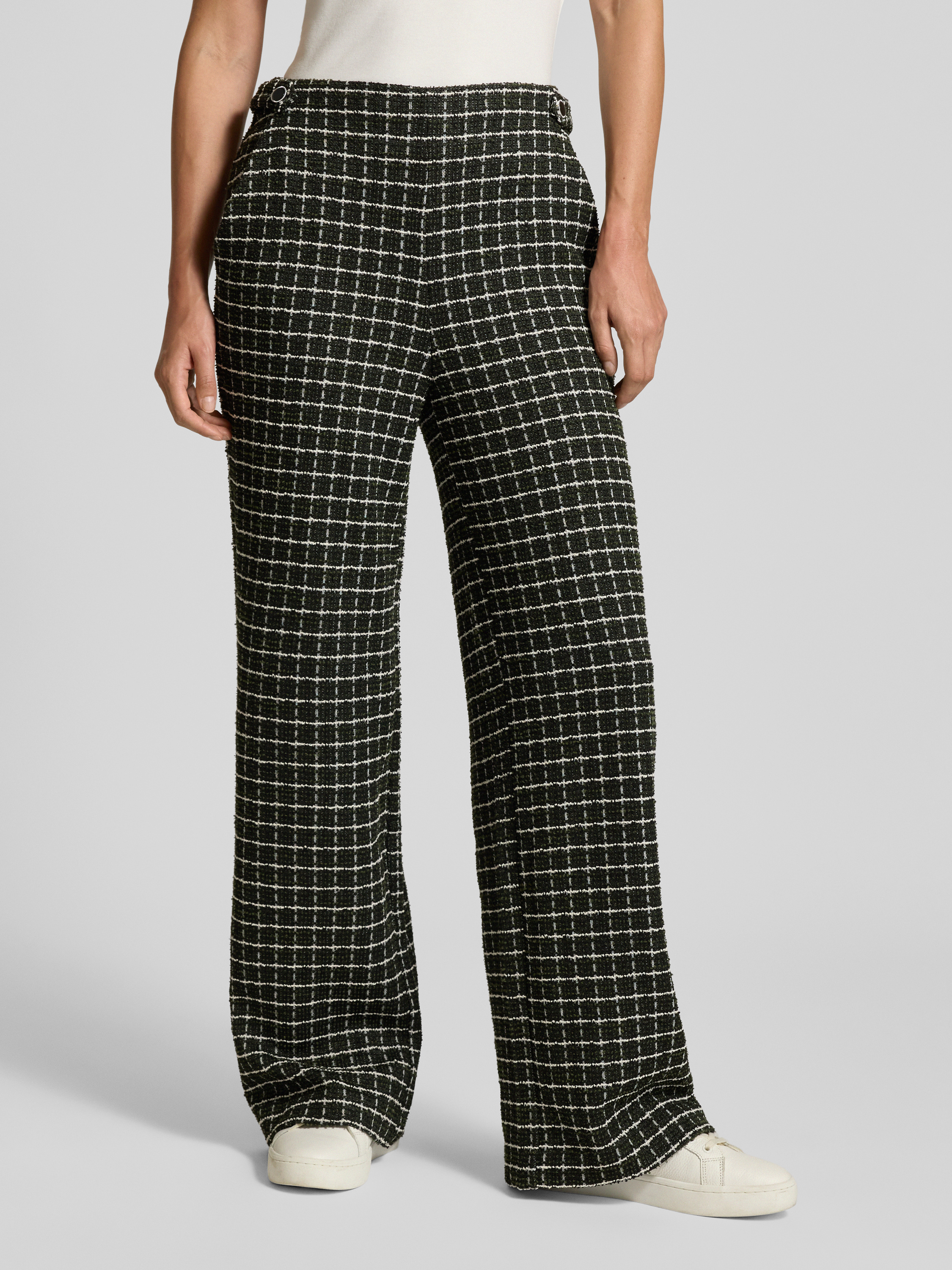 Die Hose mit Strukturmuster von ICHI Modell 'KATE' fällt durch das weite Bein und das dezente Muster angenehm auf. Dank des Baby Alpaka-Anteils im Material-Mix erhält das Gewebe eine weiche Haptik, die sich im Alltag angenehm trägt. Praktische Eingrifftaschen runden das Design funktional ab.