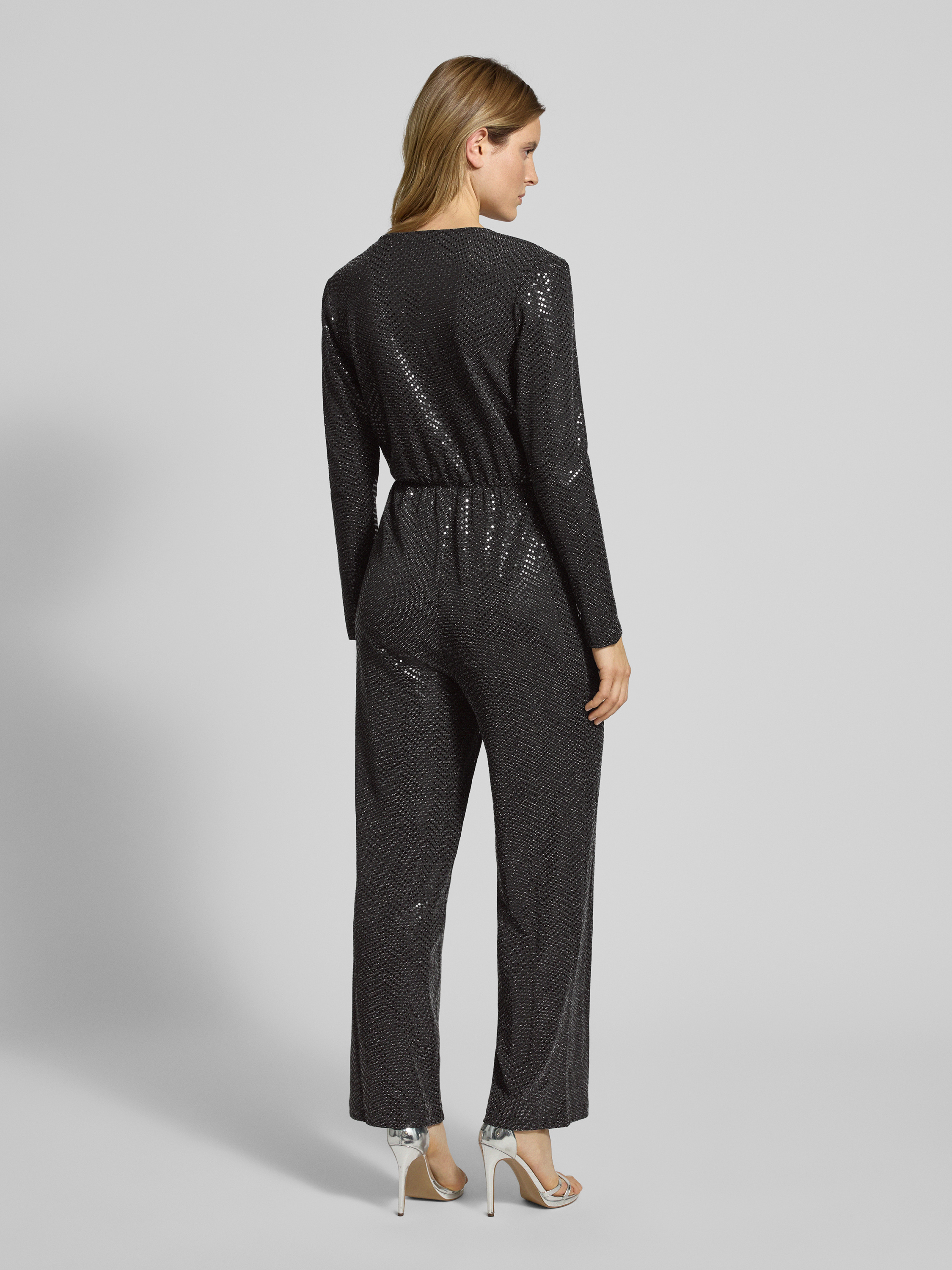 Der Damen Jumpsuit von ICHI, Modell 'NELENIA', kombiniert einen lockeren Schnitt mit einem Material-Mix und Stretch-Anteil, wodurch Bewegungsfreiheit im Alltag spürbar bleibt. Ein V-Ausschnitt und ein dezenter Paillettenbesatz setzen moderne Akzente. So eignet sich das Kleidungsstück sowohl für entspannte Stunden als auch besondere Anlässe.