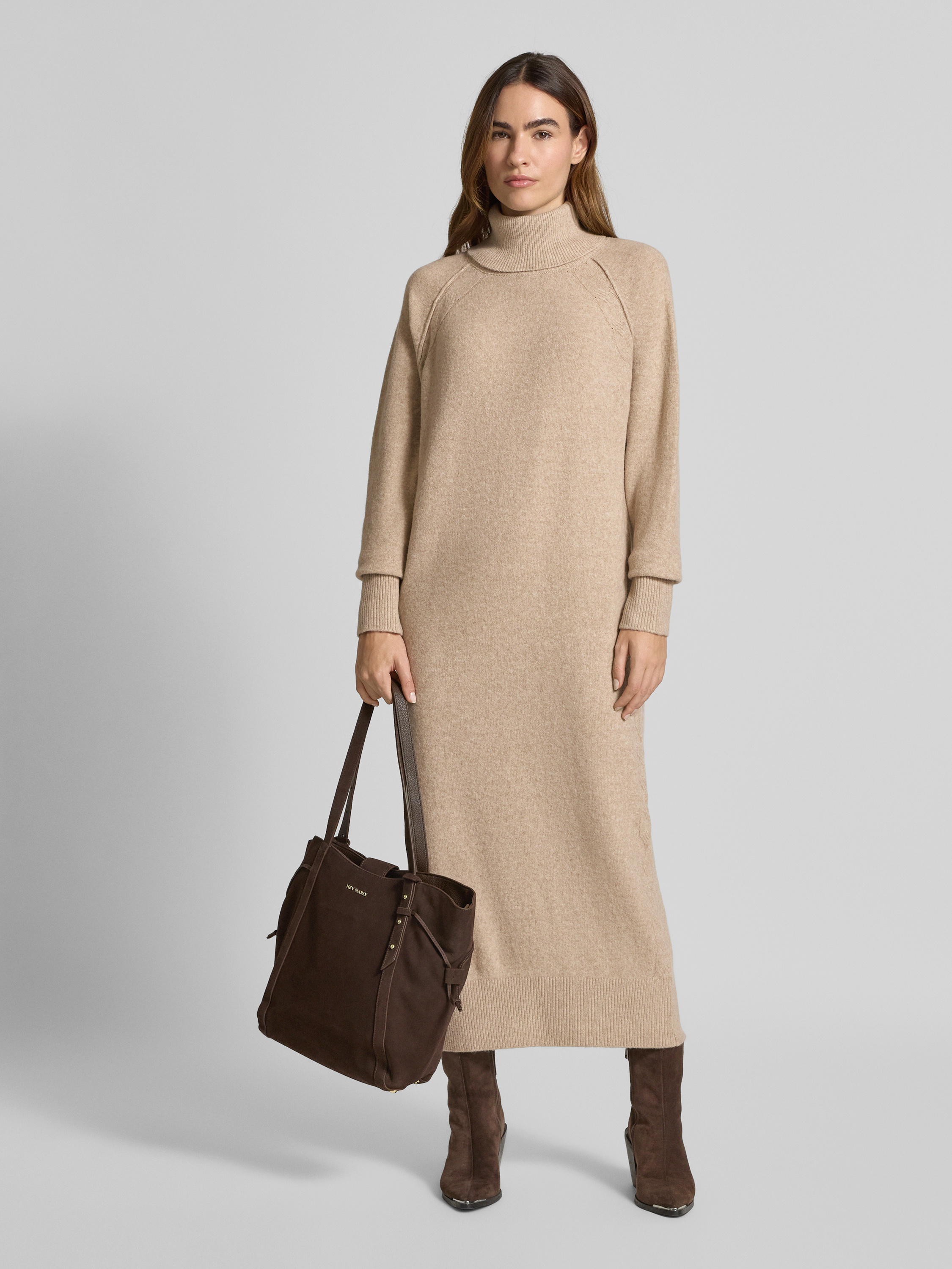 ICHIMidikleid mit gerippten Abschlüssen Modell 'DASILA' in beige