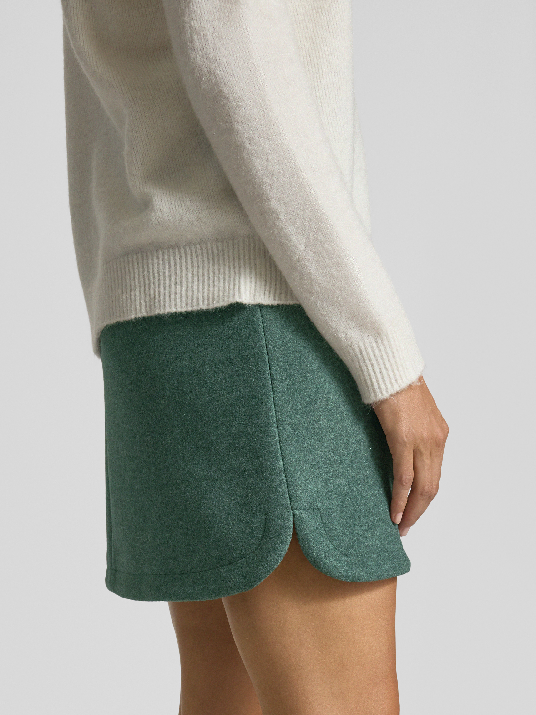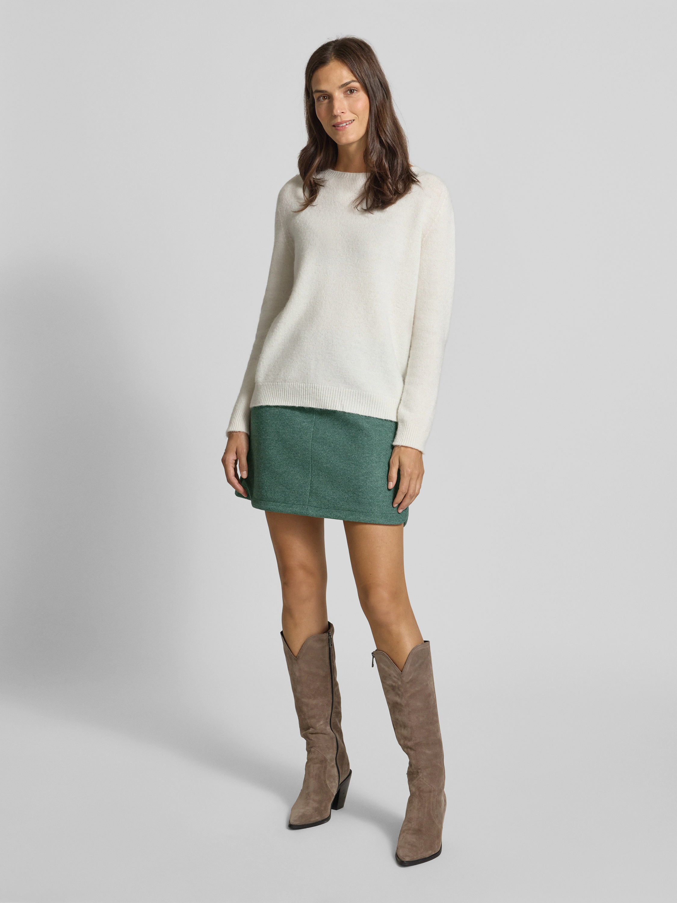Der Damen Minirock von ICHI, Modell WOOLY, fällt durch seinen geraden Schnitt angenehm unkompliziert aus. Dank des Woll-Anteils entsteht ein angenehmes Tragegefühl, das sich für verschiedene Gelegenheiten eignet. Durch den elastischen Bund sitzt der Rock bequem und lässt sich vielseitig kombinieren.