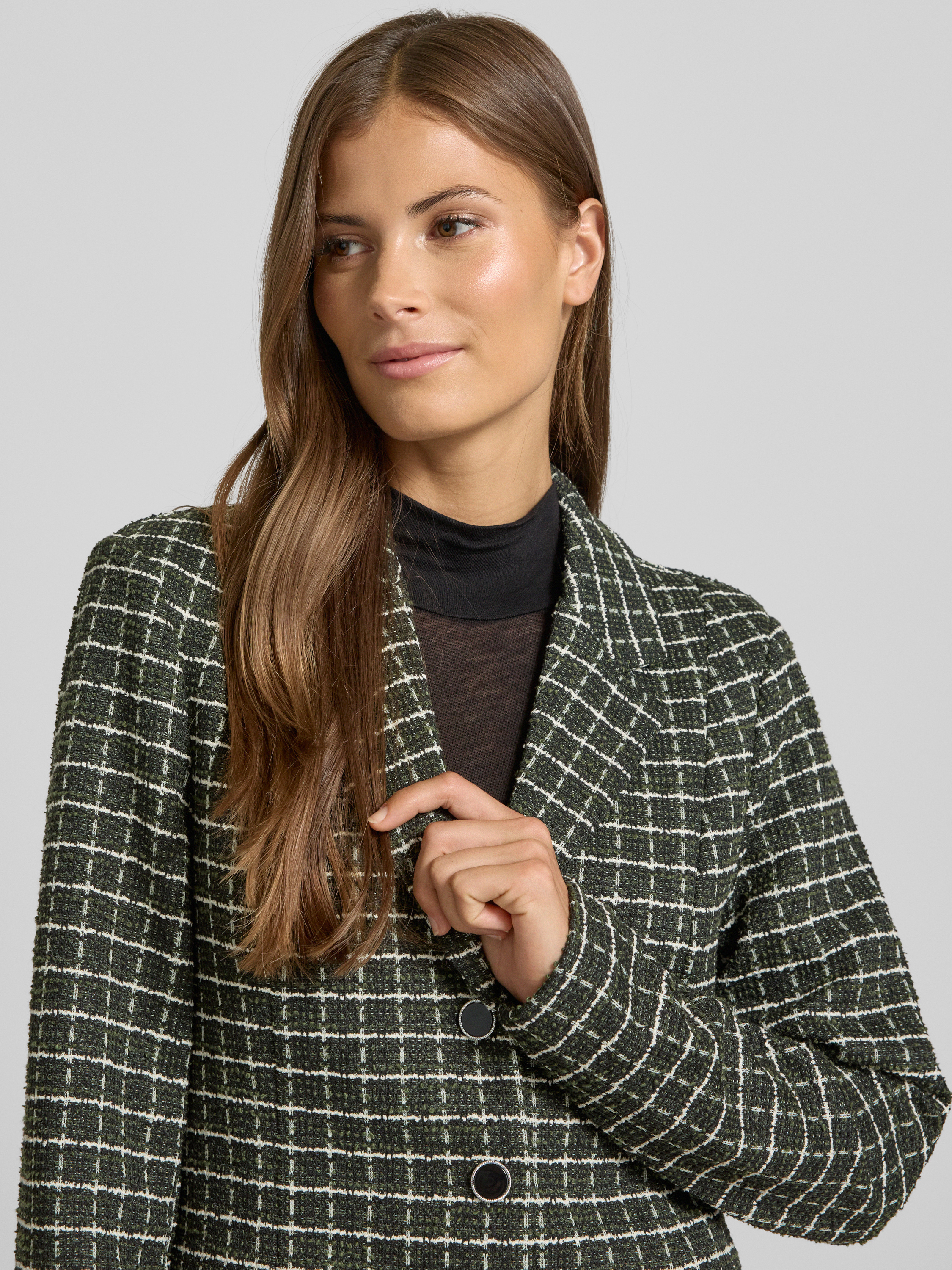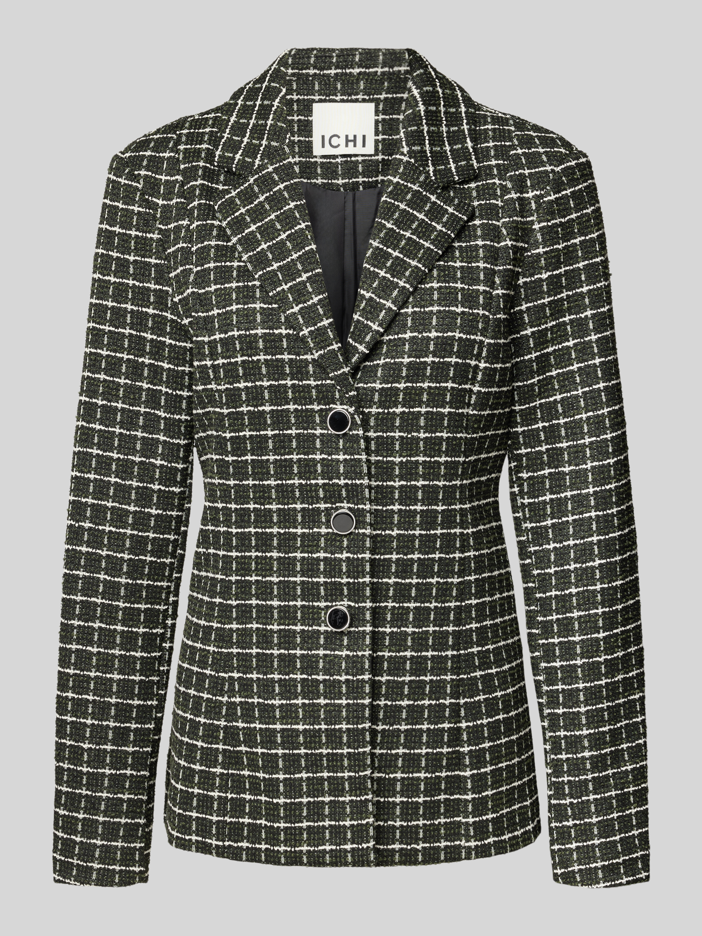 Der Damen Slim Fit Blazer mit Reverskragen von ICHI, Modell 'KATE', schmiegt sich durch seinen körpernahen Schnitt angenehm an und sorgt für eine gepflegte Silhouette. Dank des Material-Mix mit Baumwoll-Anteil wirkt das Gewebe wertig und fühlt sich angenehm auf der Haut an. Mit seinem klassischen Reverskragen eignet sich das Modell sowohl für formelle als auch für ungezwungene Anlässe, da es sich vielseitig kombinieren lässt.