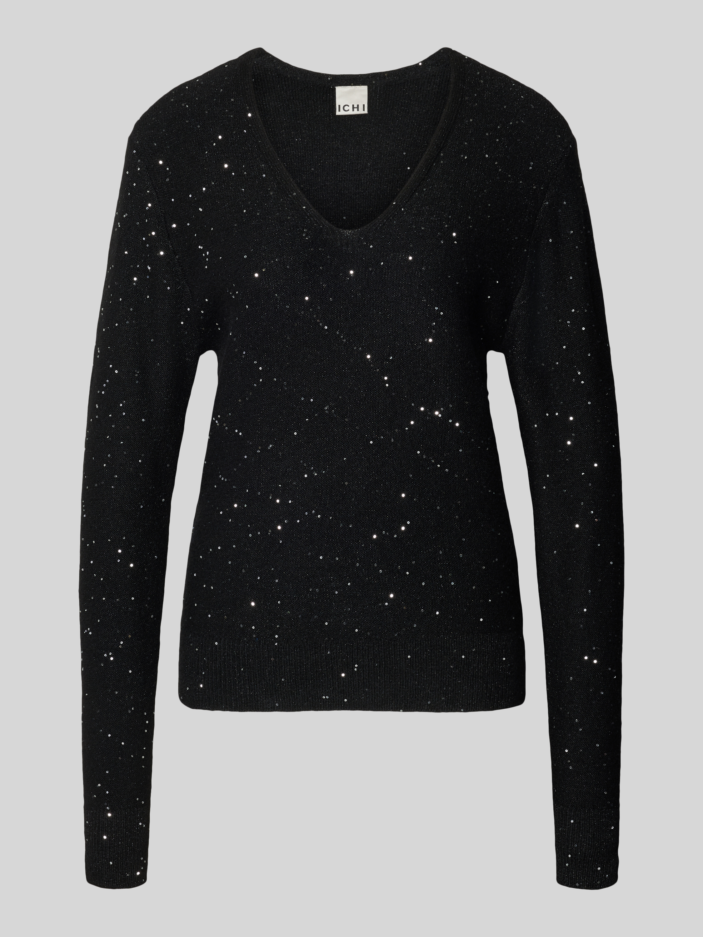 Der Strickpullover DAMIAN von ICHI kombiniert einen angenehmen Material-Mix mit Woll-Anteil und sorgt dadurch für ein behagliches Tragegefühl. Durch den Regular Fit und den V-Ausschnitt entsteht eine lässige Silhouette, die sich vielseitig kombinieren lässt. Dezente Pailletten setzen feine Akzente und lockern den Look dezent auf.