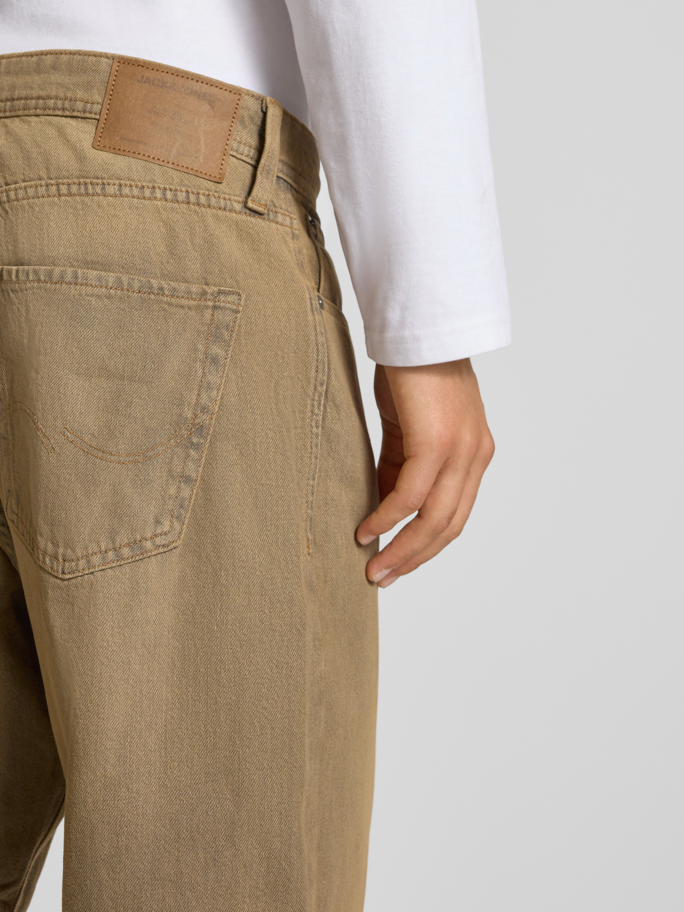 Die Herren Jeans von Jack & Jones im Baggy Fit Modell 'ALEX' besteht aus reiner Baumwolle und sorgt durch ihren lockeren Schnitt für Bewegungsfreiheit im Alltag. Das klassische 5-Pocket-Design ergänzt vielseitige Outfits. So eignet sich die Hose für entspannte Freizeitlooks genauso wie für urbanes Styling.