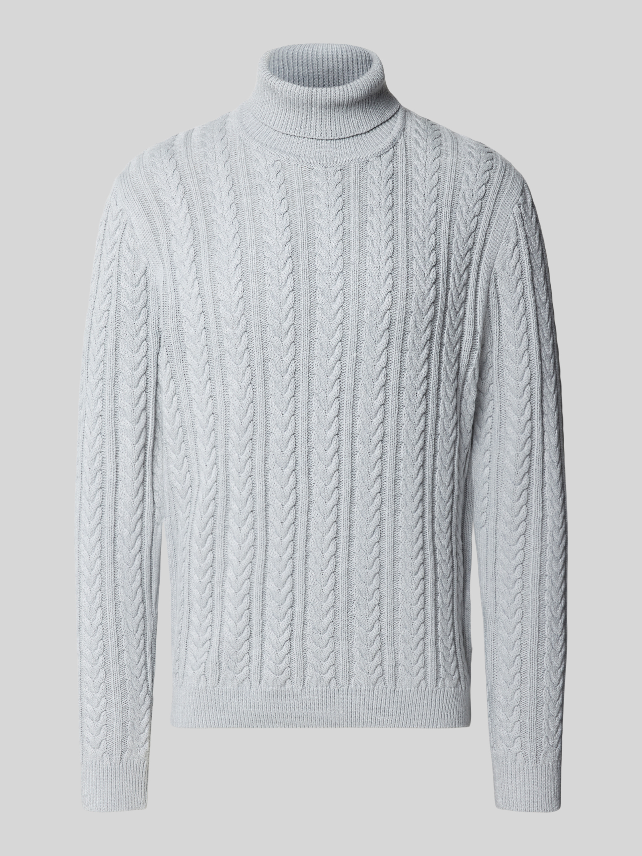• Jack & Jones Premium Strickpullover mit Zopfmuster Hellgrau Melange