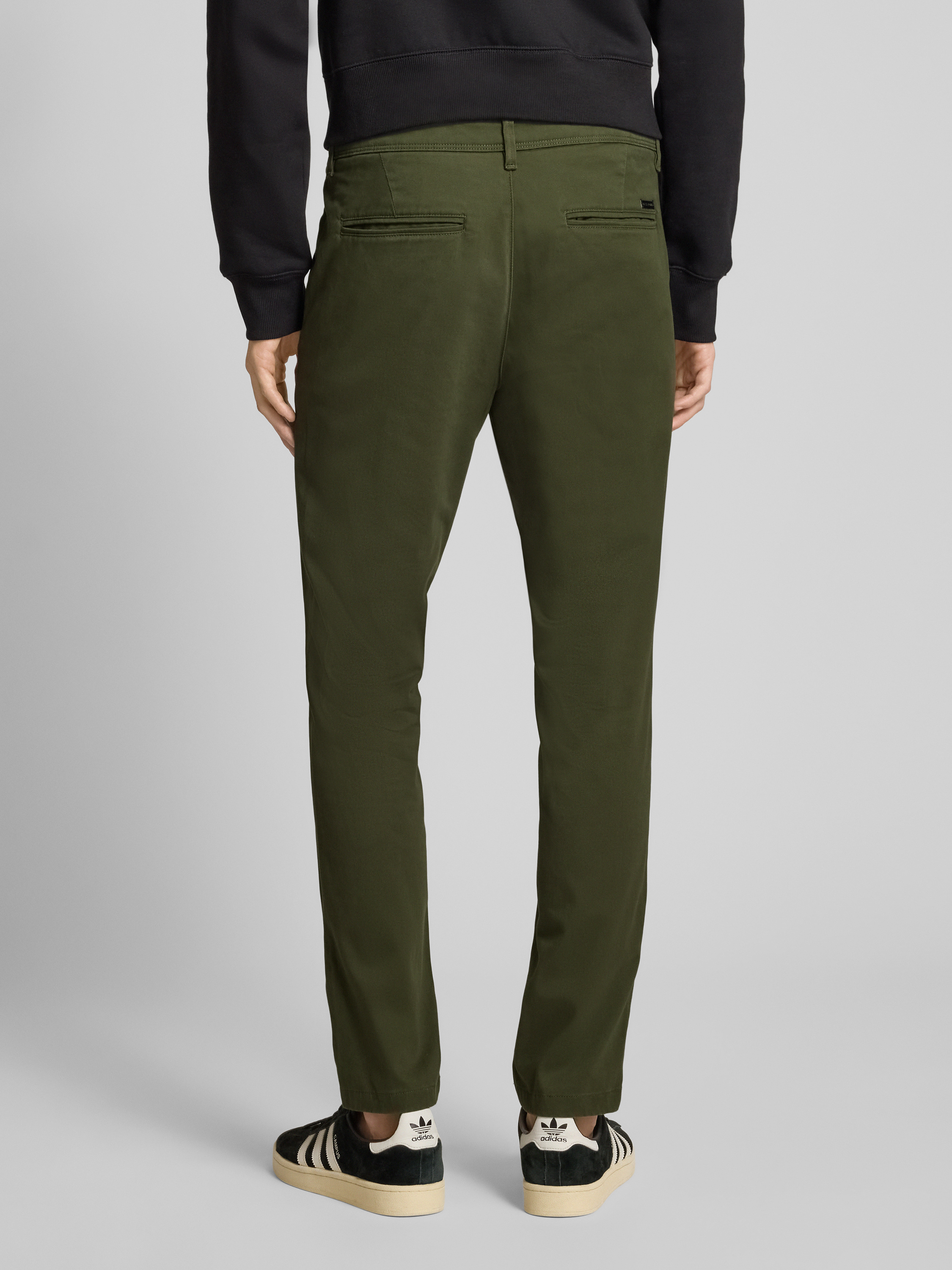 Die Herren Chino von Jack & Jones, Modell 'MARCO', überzeugt durch ihren Regular Fit und den angenehmen Baumwoll-Elasthan-Mix. Durch die bequeme Passform eignet sich die Regular Fit Chino mit Stretch-Anteil Modell 'MARCO' für vielseitige Alltagskombinationen. Praktische Eingriff- und Gesäßtaschen ergänzen das durchdachte Design.