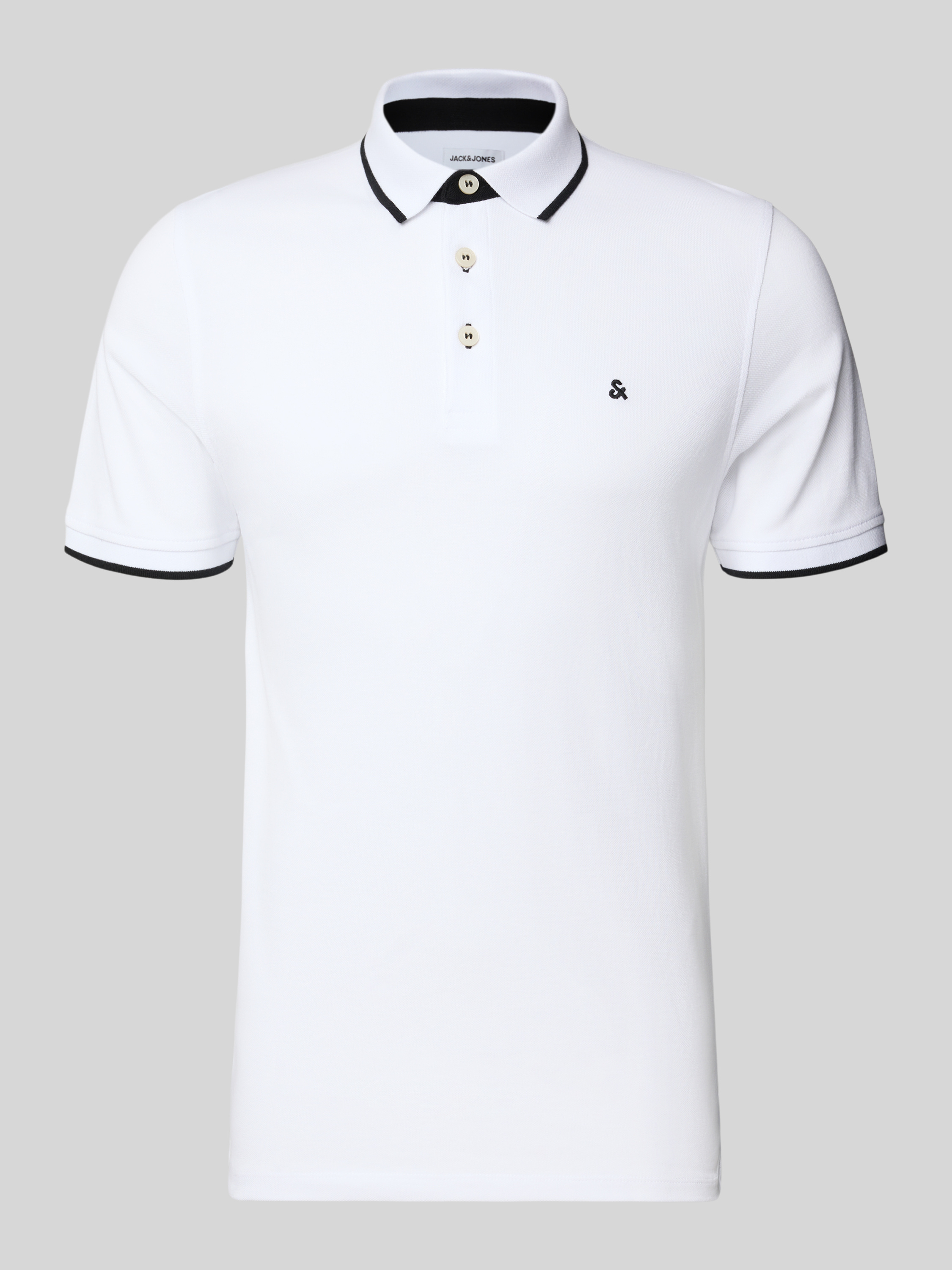 Jack & JonesRegular Fit Poloshirt mit Label-Stitching Modell 'PAULOS' in weiss