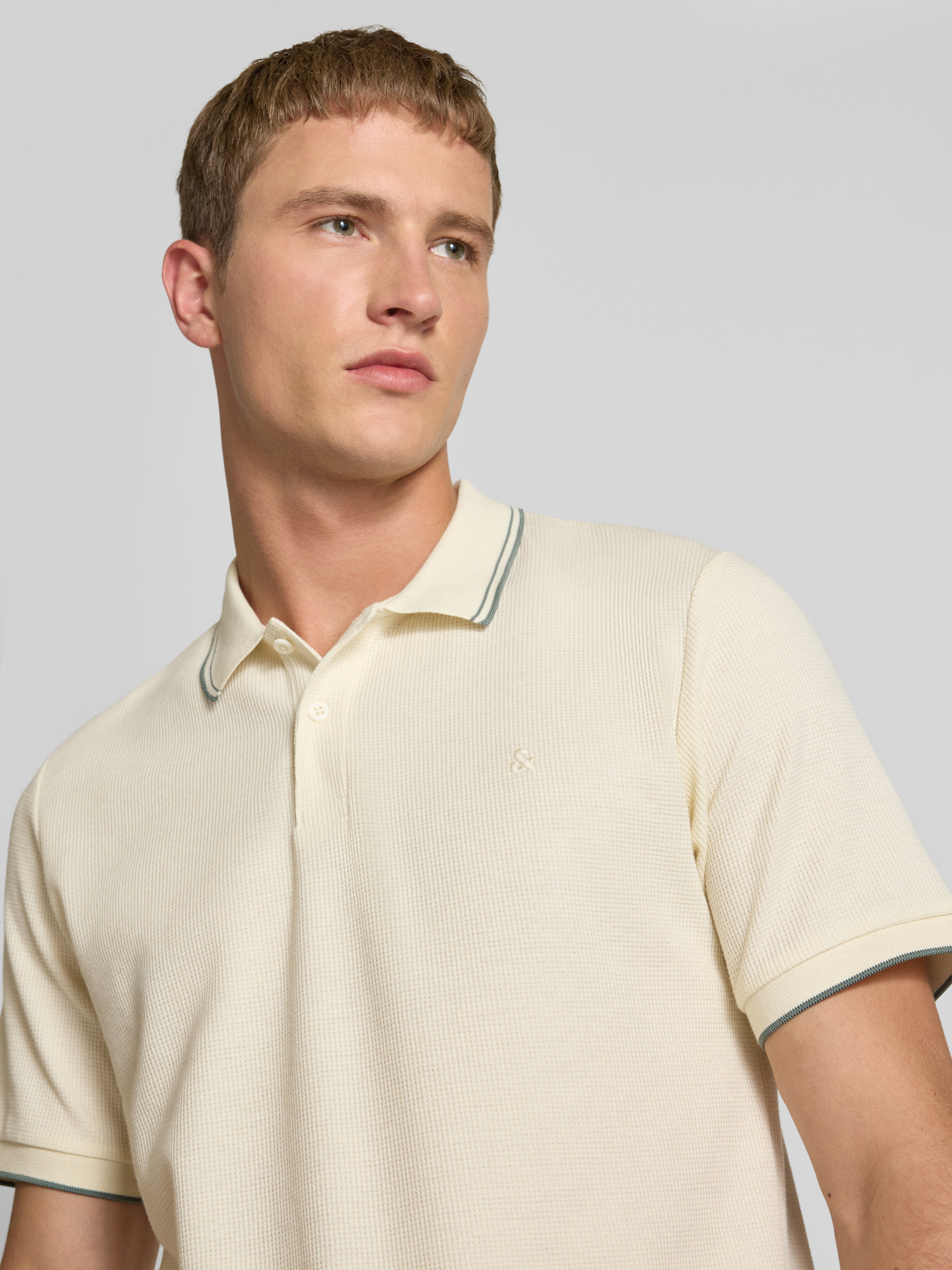 Jack & JonesRegular Fit Poloshirt mit Strukturmuster Modell 'AUSTIN' in offwhite