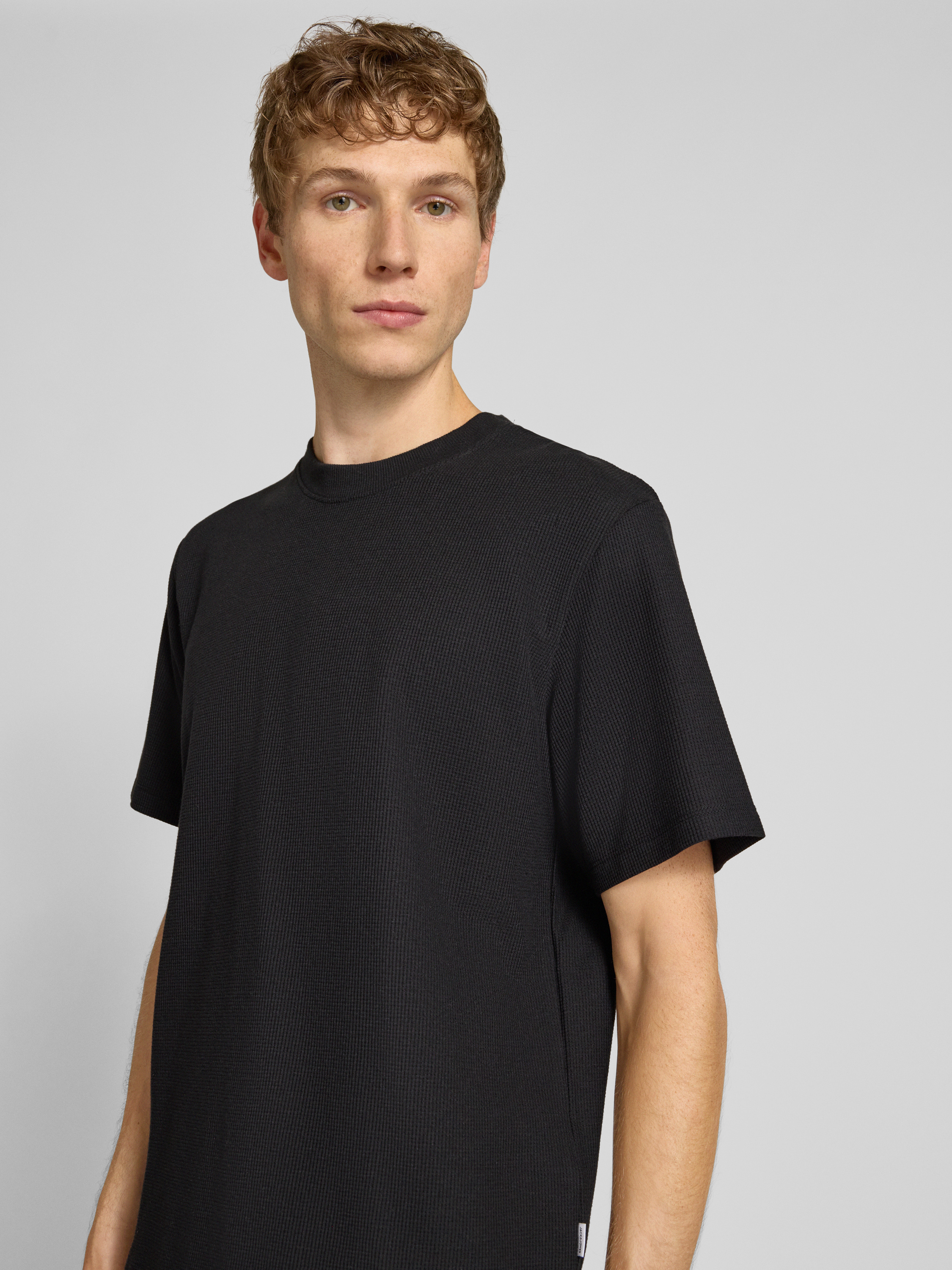 Das Herren T-Shirt von Jack & Jones, Modell 'EAUSTIN', fällt durch sein dezentes Strukturmuster angenehm ins Auge. Dank des geraden Schnitts liegt es locker am Körper und lässt sich vielseitig kombinieren. Der Material-Mix mit Baumwoll-Anteil sorgt für ein angenehmes Tragegefühl im Alltag.