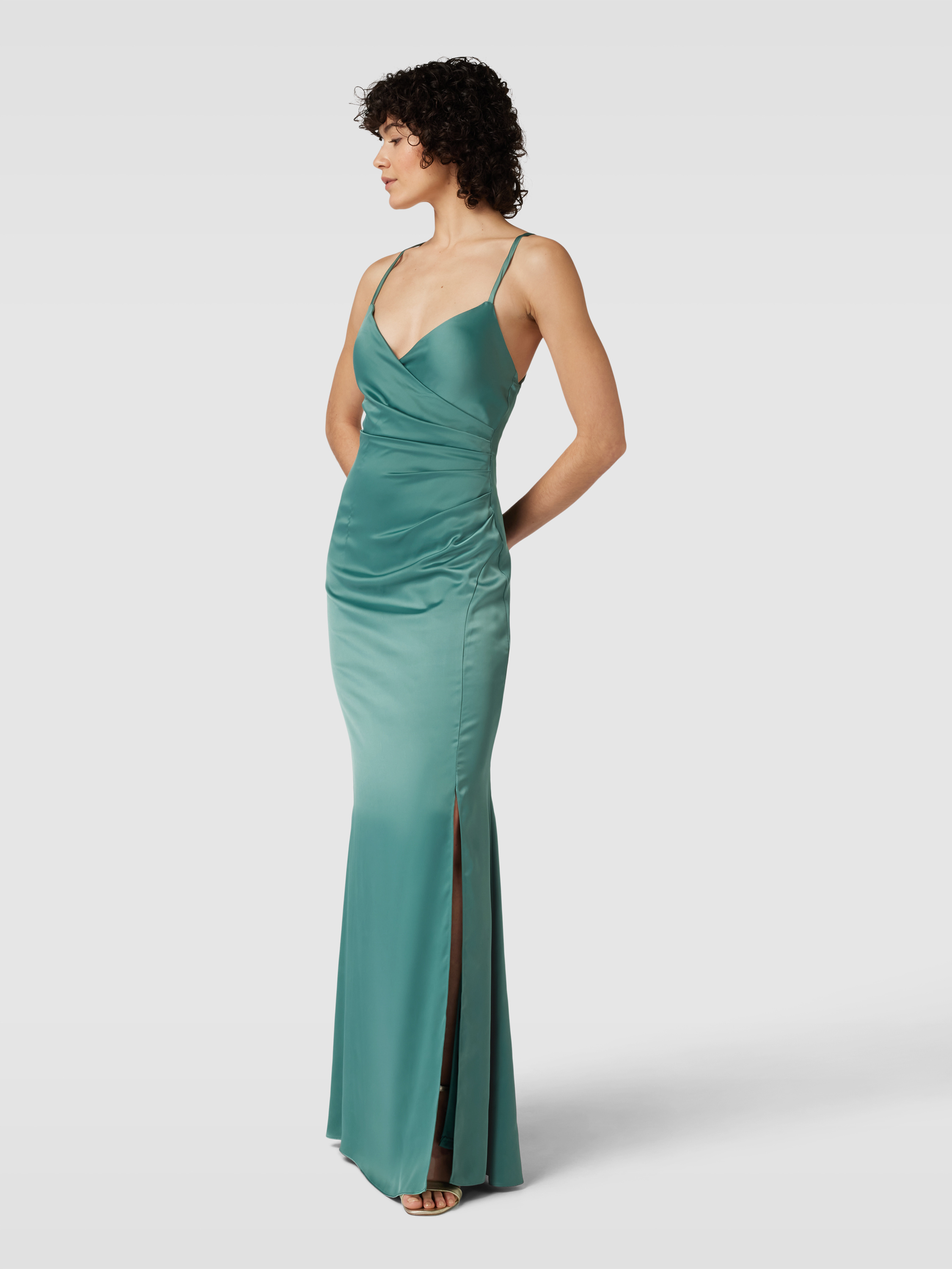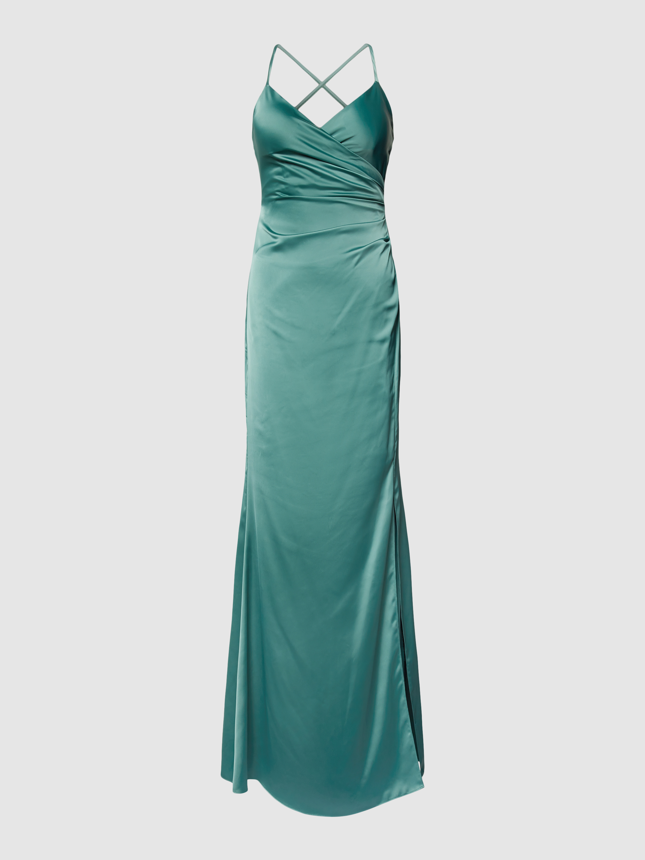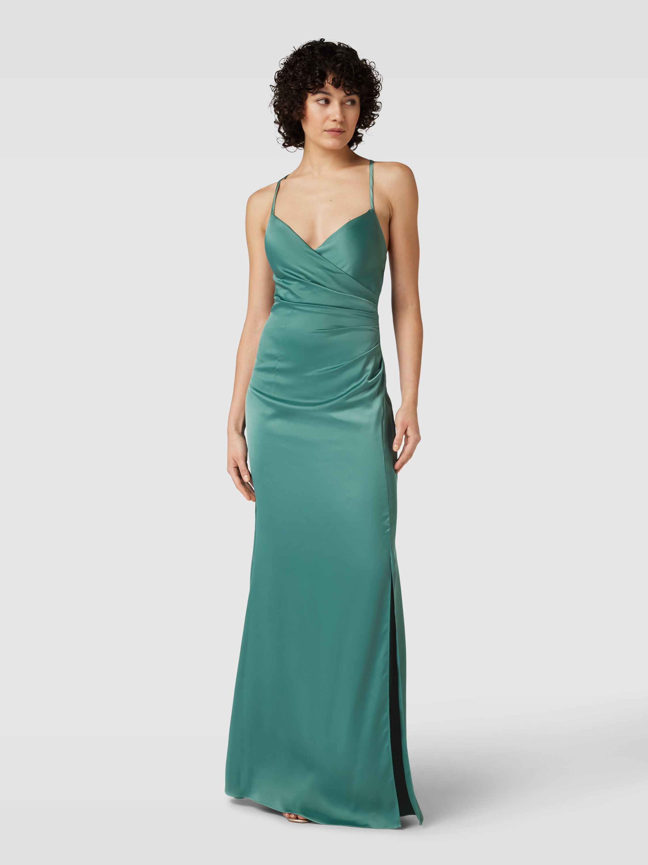 Das Abendkleid von Jake*s Cocktail aus edlem Satin schmiegt sich mit seinem figurbetonten Schnitt elegant an den Körper an. Die Wickel-Optik und die feinen Spaghettiträger verleihen dem unifarbenen Design eine besondere Raffinesse. Ideal für besondere Anlässe geeignet.