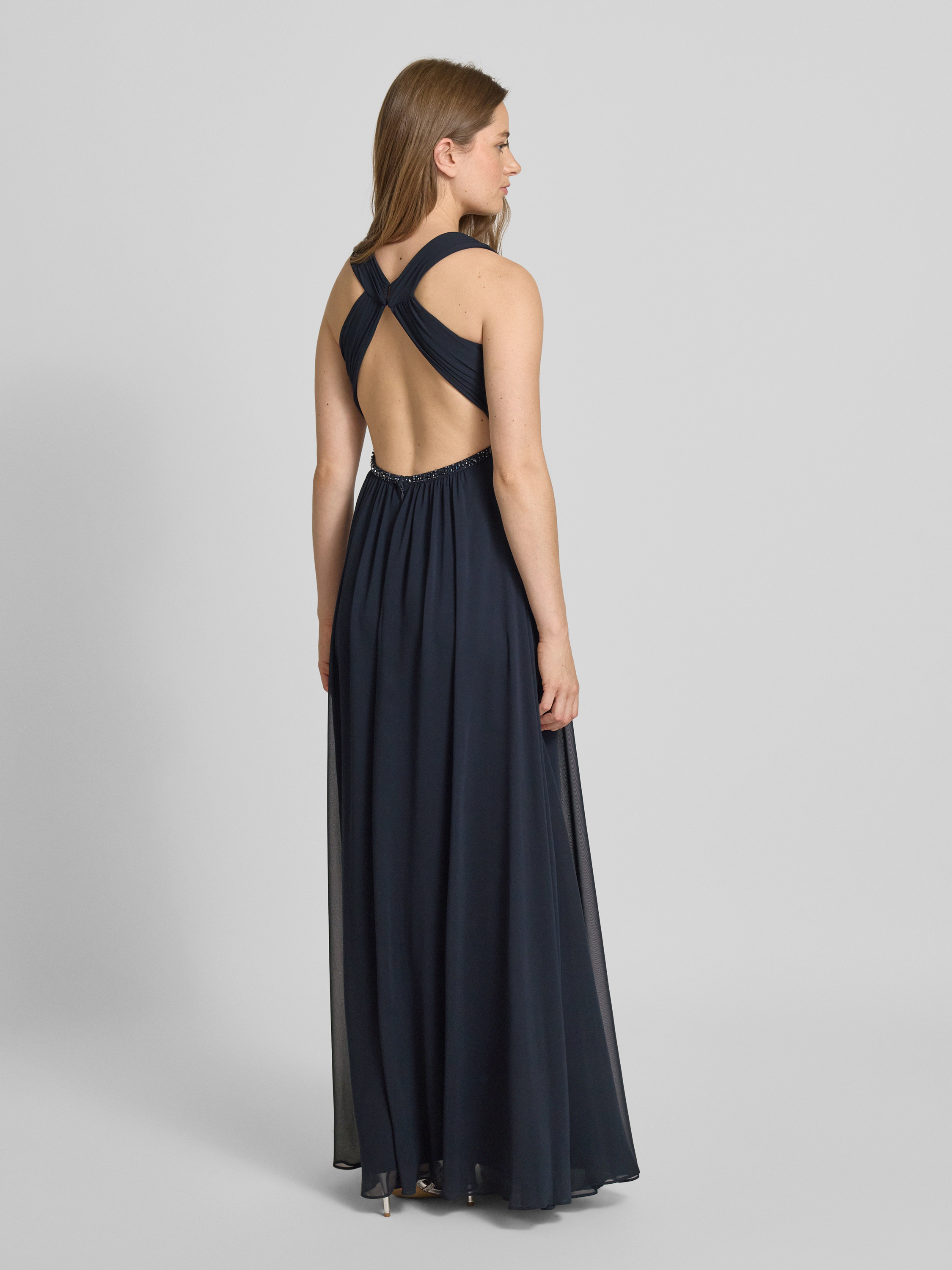 Jake*s CocktailAbendkleid mit Ziersteinbesatz in marine melange