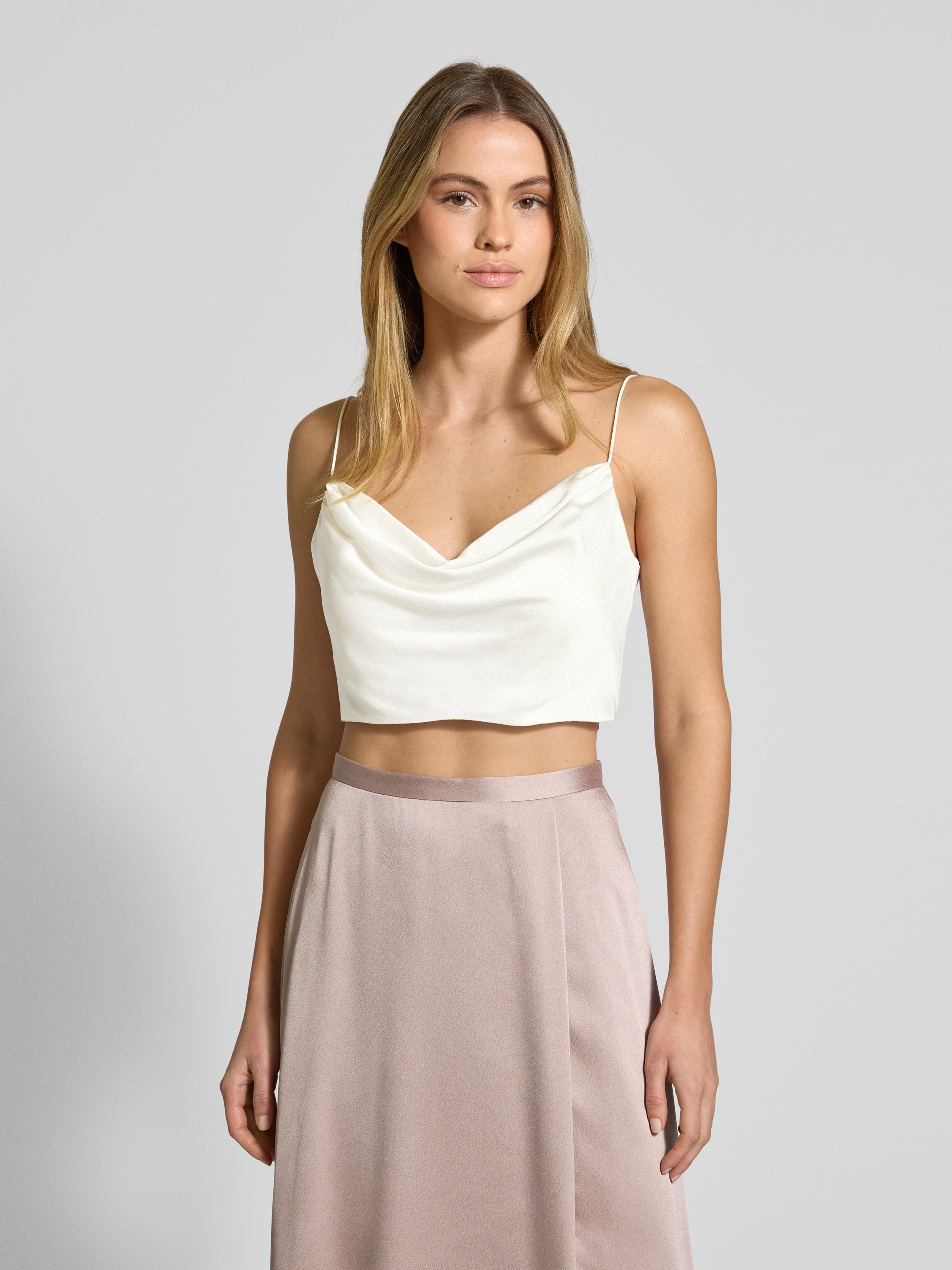 • Jake*s Cocktail Crop Top mit Wasserfall-Ausschnitt Ecru
