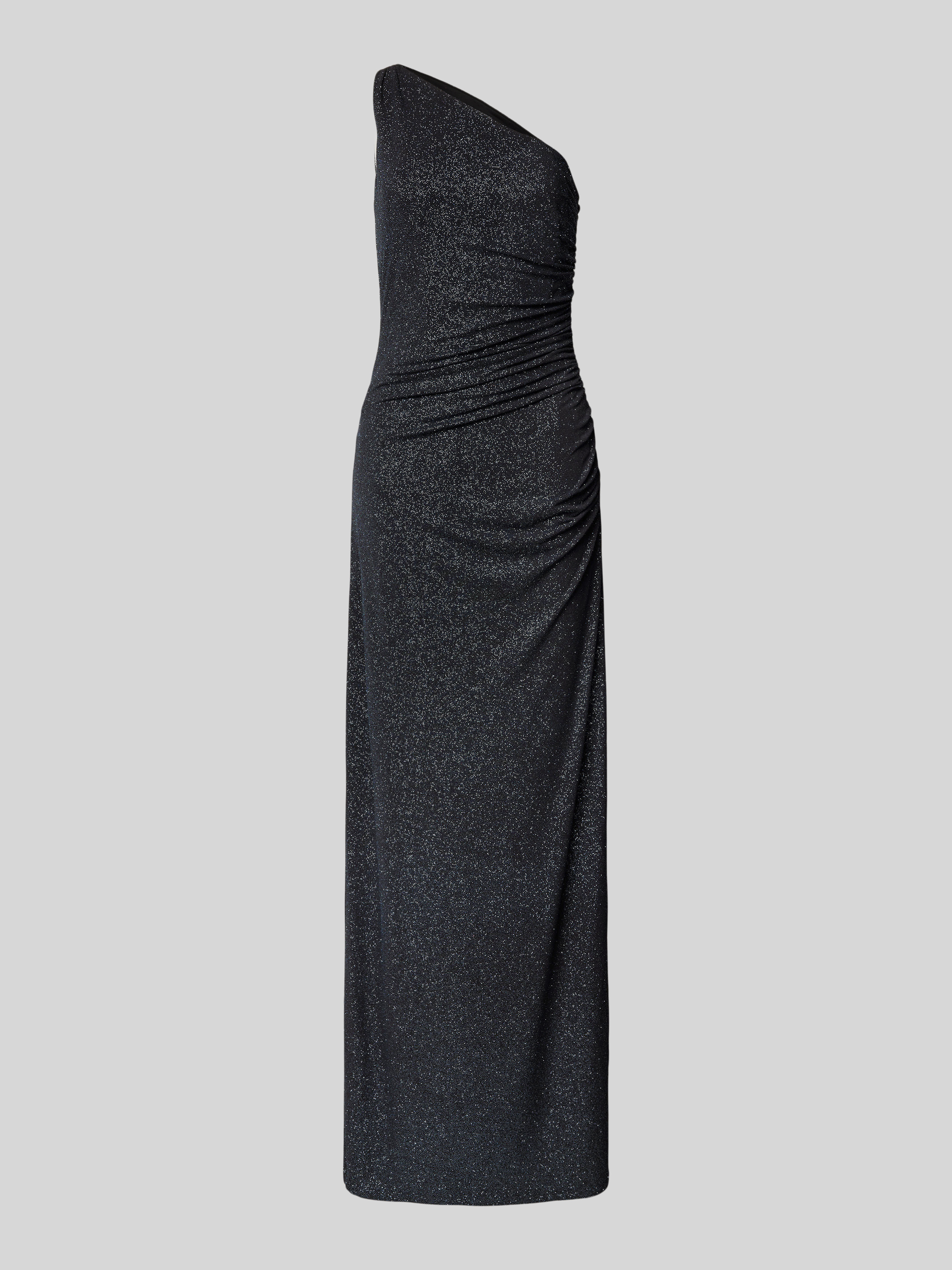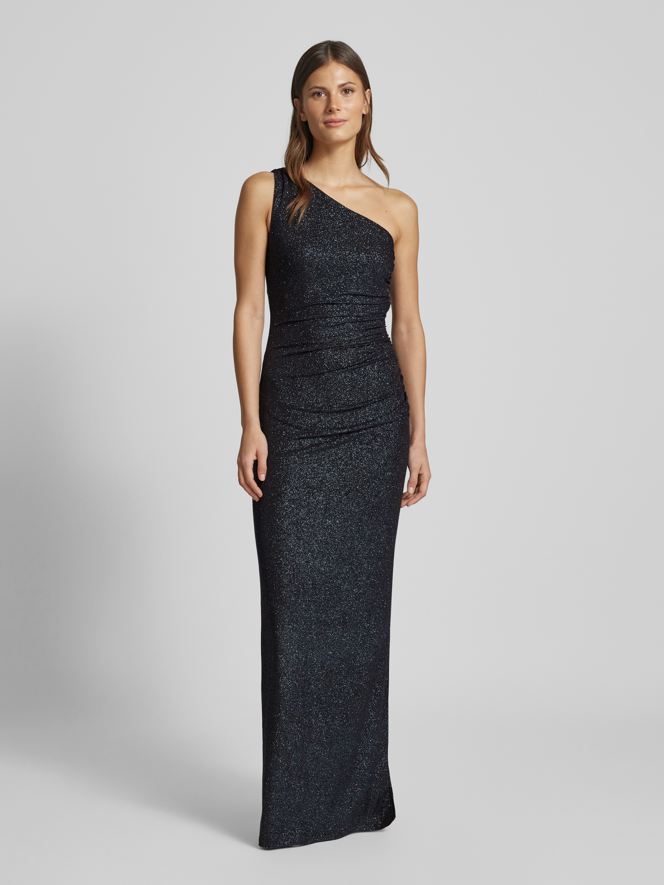 Das elegante Maxikleid von Jake*s Cocktail vereint einen schmeichelhaften taillierten Schnitt mit einem raffinierten One-Shoulder-Träger. Durch den geschmackvollen Material-Mix und den Stretch-Anteil sitzt es angenehm und bietet Bewegungsfreiheit. Ziersteinbesatz und Raffungen setzen stilvolle Akzente, während der Gehschlitz Leichtigkeit verleiht.