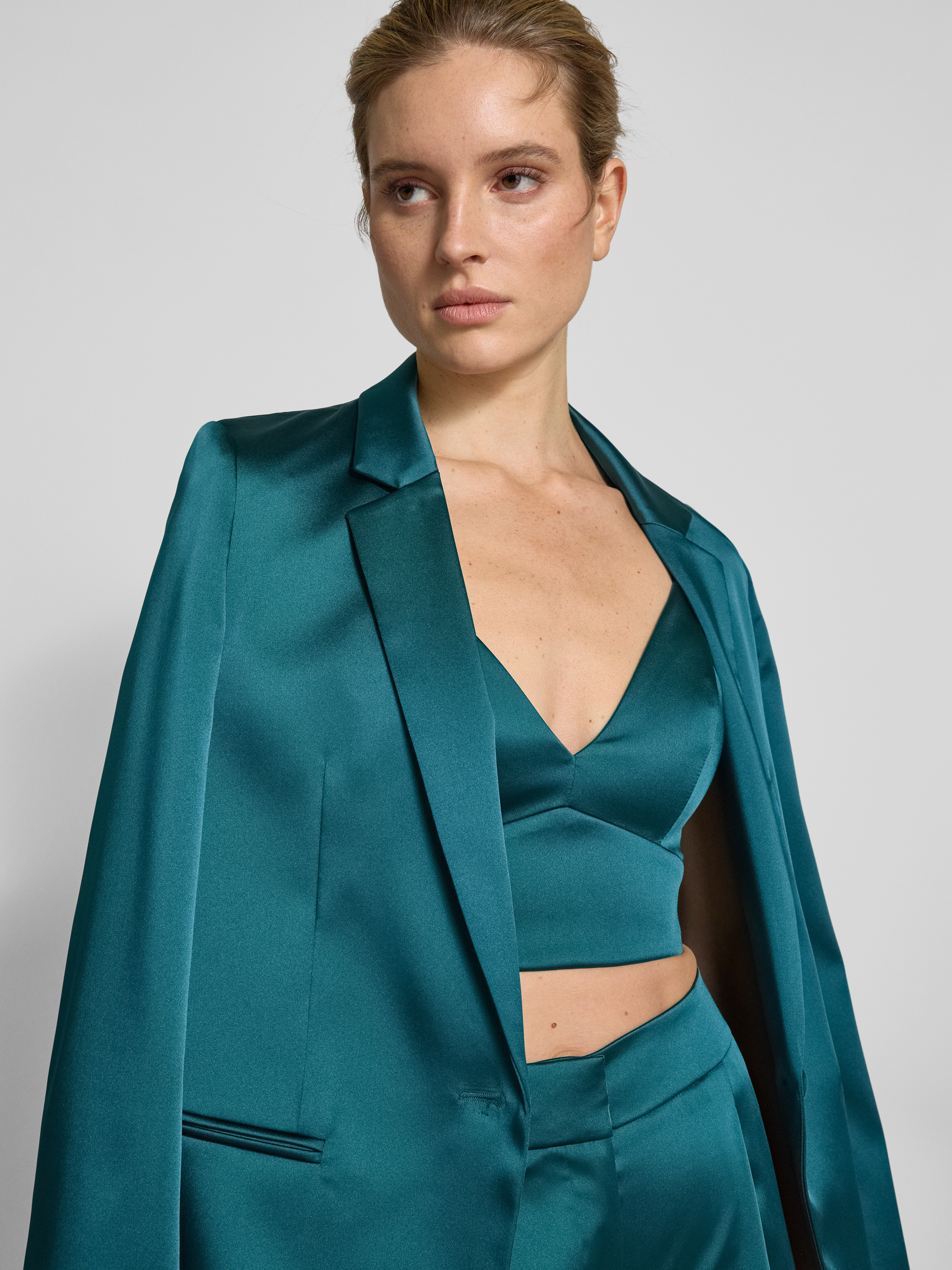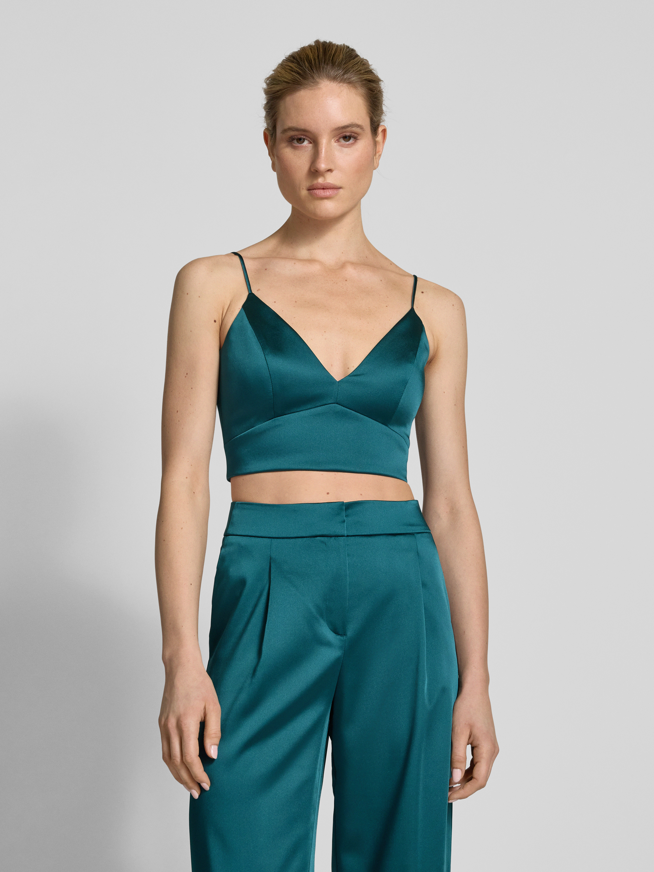 Das elegante Blusentop von Jake*s Cocktail vereint mit seinem schmalen Schnitt und dem V-Ausschnitt stilvolle Raffinesse. Dank der zarten Spaghettiträger und der Cropped-Länge ergibt sich eine moderne Silhouette, die sich ideal für sommerliche Anlässe eignet und ein angenehmes Tragegefühl verspricht.