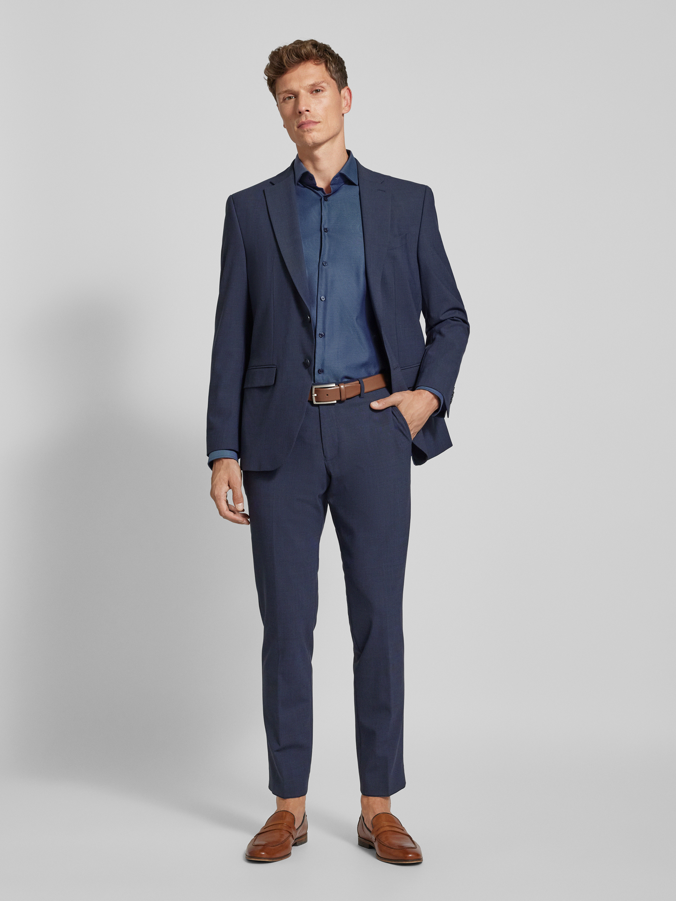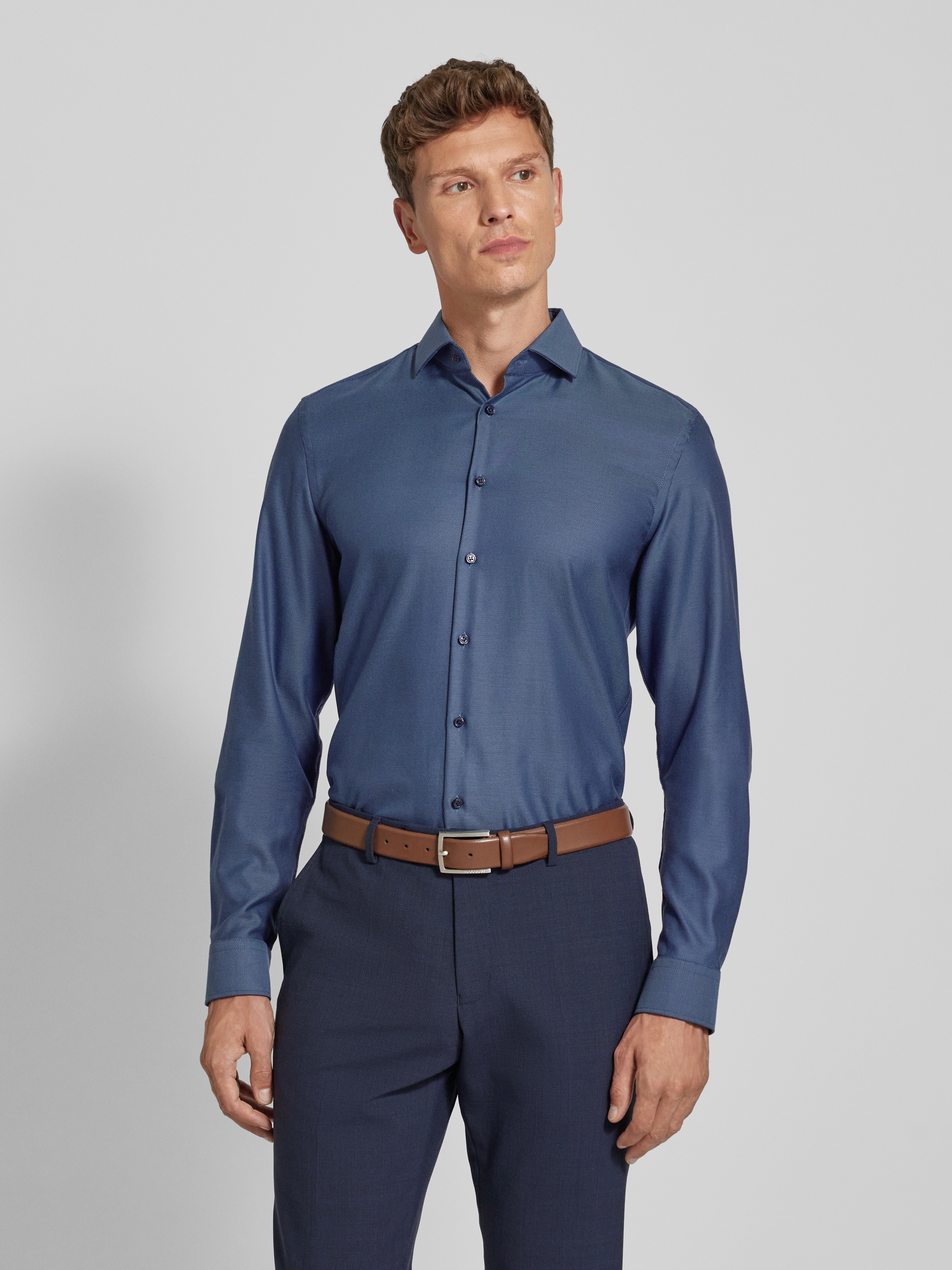 Jake*sSlim Fit Businesshemd in Premiumqualität mit extra langem Arm in marine
