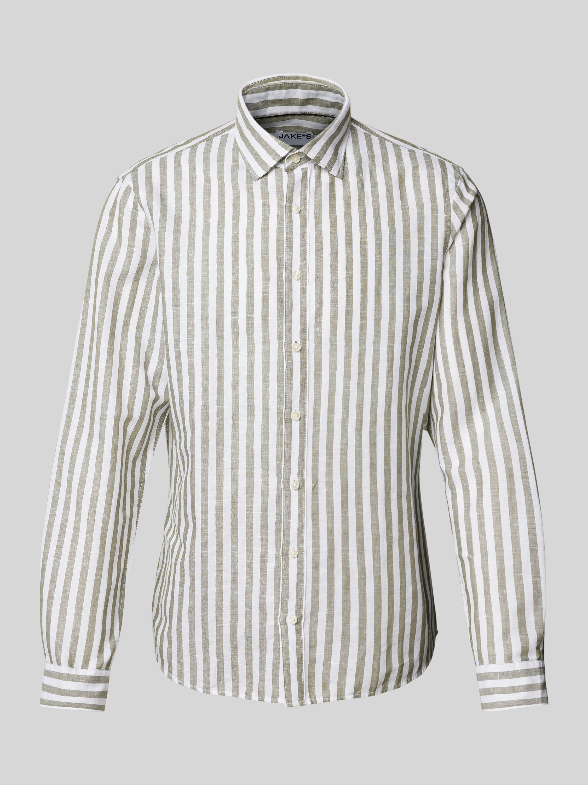 Jake*sSlim Fit Freizeithemd aus Leinen-Mix in hellgruen