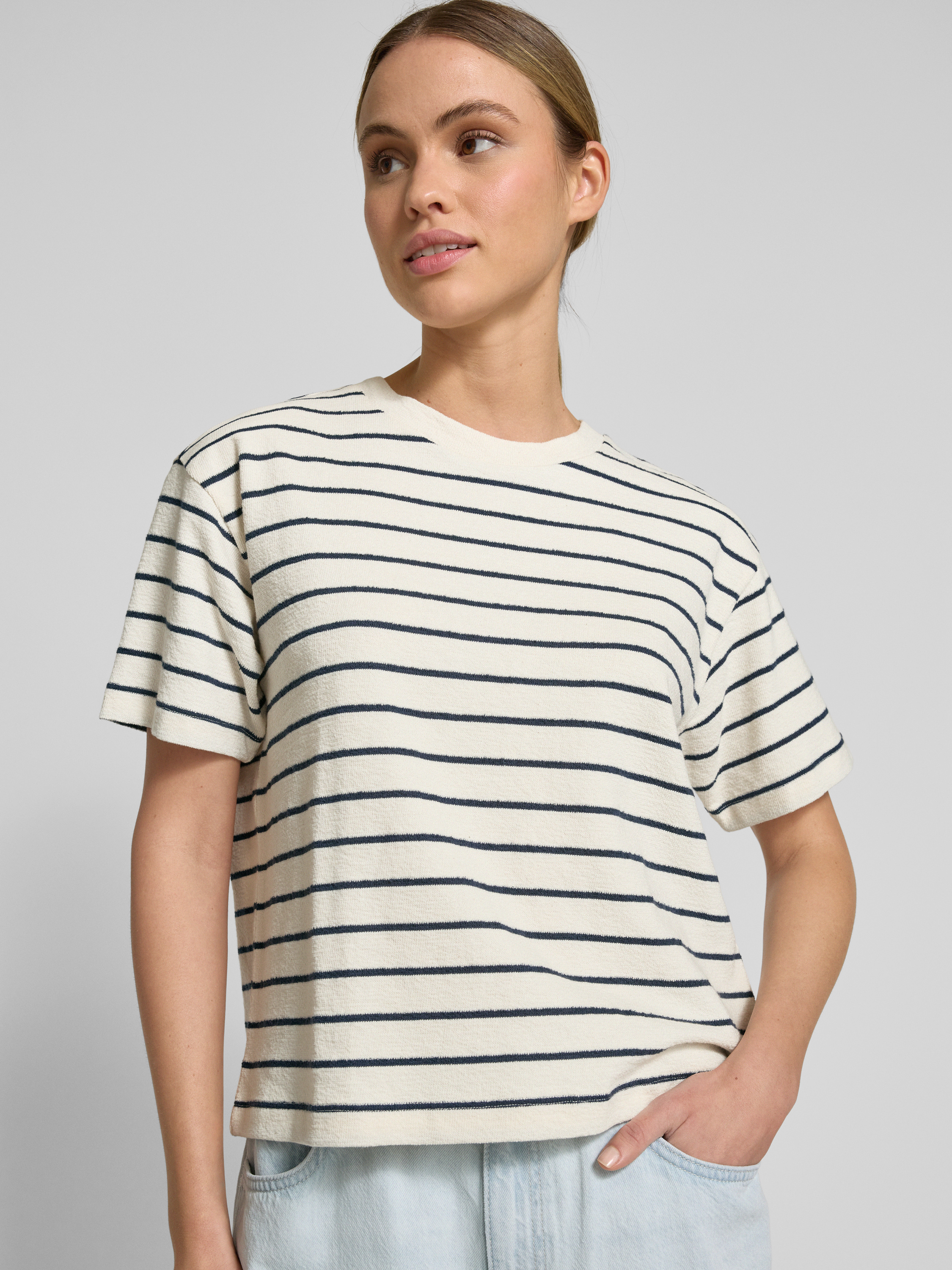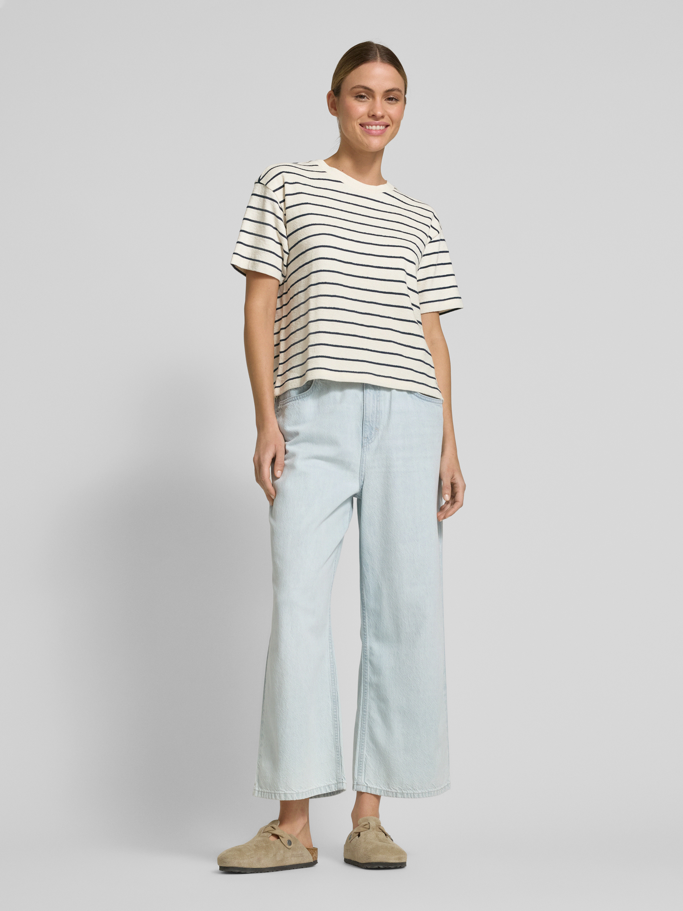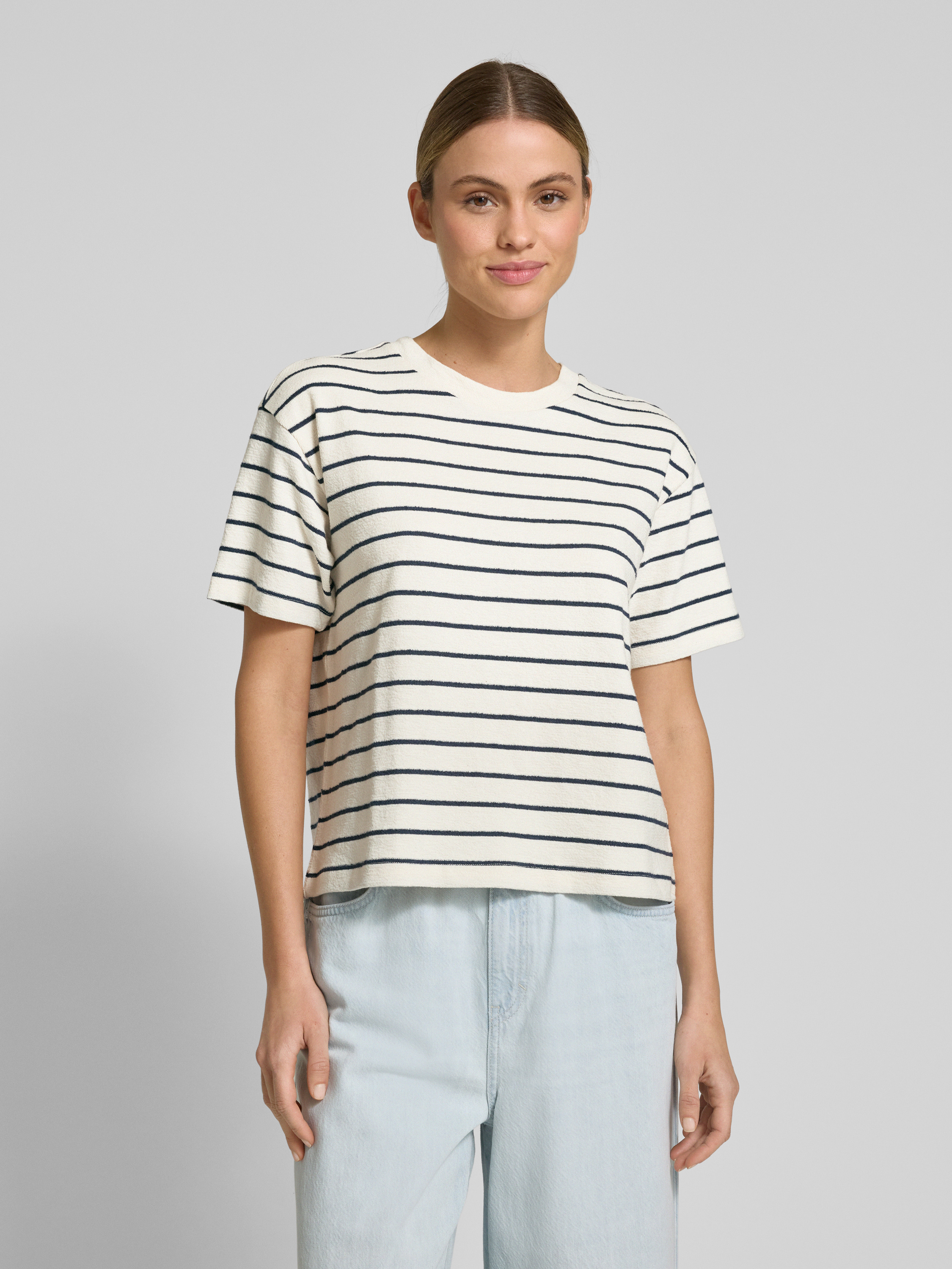 Das Cropped T-Shirt von Jake*s Studio Woman kombiniert einen lässigen Baumwoll-Mix mit einem lockeren Schnitt, der sich ideal für entspannte Tage eignet. Der gerippte Rundhalsausschnitt verleiht dem Design eine dezente Struktur. Es bietet vielseitige Kombinationsmöglichkeiten für verschiedene Anlässe.