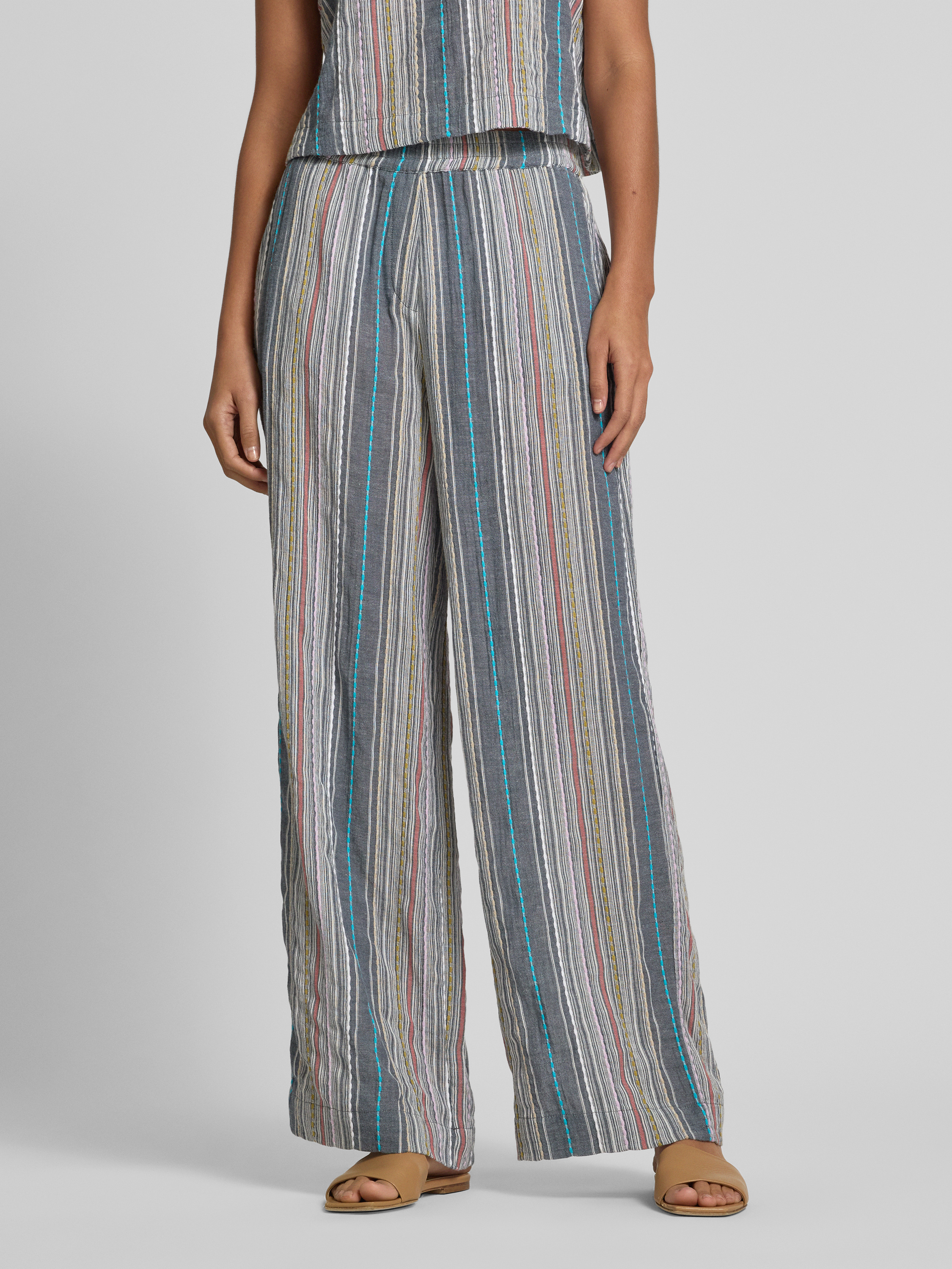 Die Hose von JAKE*S STUDIO WOMAN kombiniert die Leichtigkeit reiner Baumwolle mit einem weiten Bein, das viel Bewegungsfreiheit lässt. Praktische Eingrifftaschen runden das Design ab und bieten Platz für Kleinigkeiten, während der flexible Bund angenehm sitzt. Ideal für entspannte Tage.