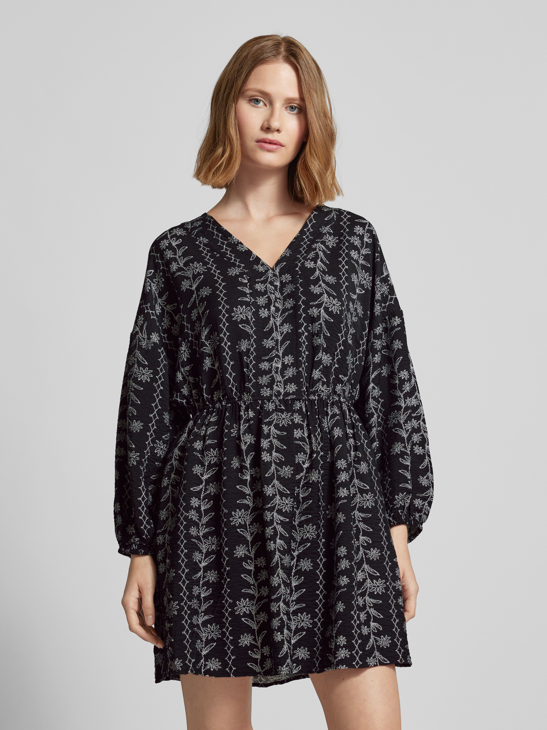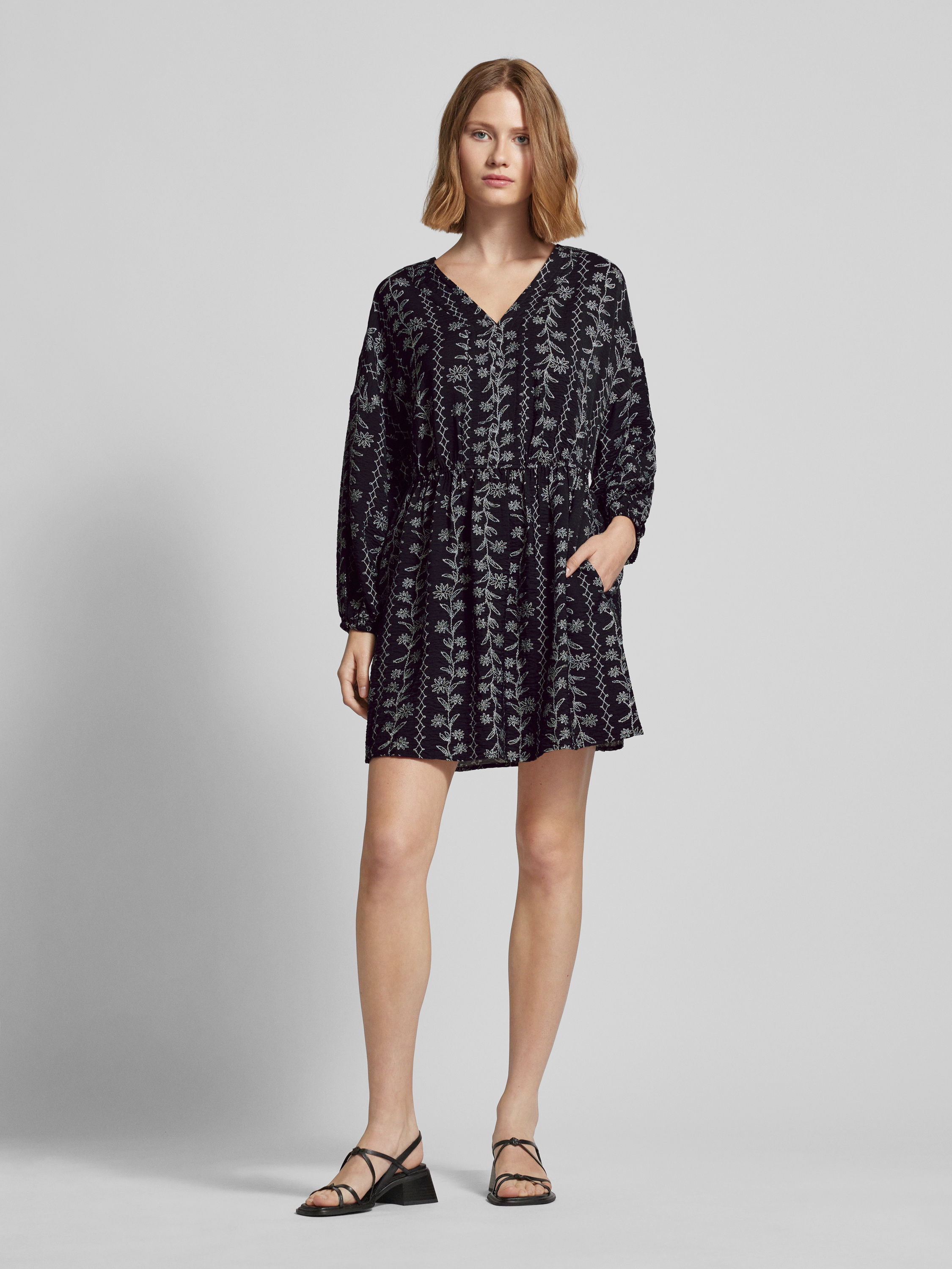 Das Minikleid mit gelegten Falten von Jake*s Studio Woman fällt durch den taillierten Schnitt angenehm ins Auge, während der V-Ausschnitt dezent die Silhouette betont. Der Viskose-Mix sorgt für ein weiches Tragegefühl. Mit langen Ärmeln eignet sich das Modell für unterschiedlichste Anlässe.