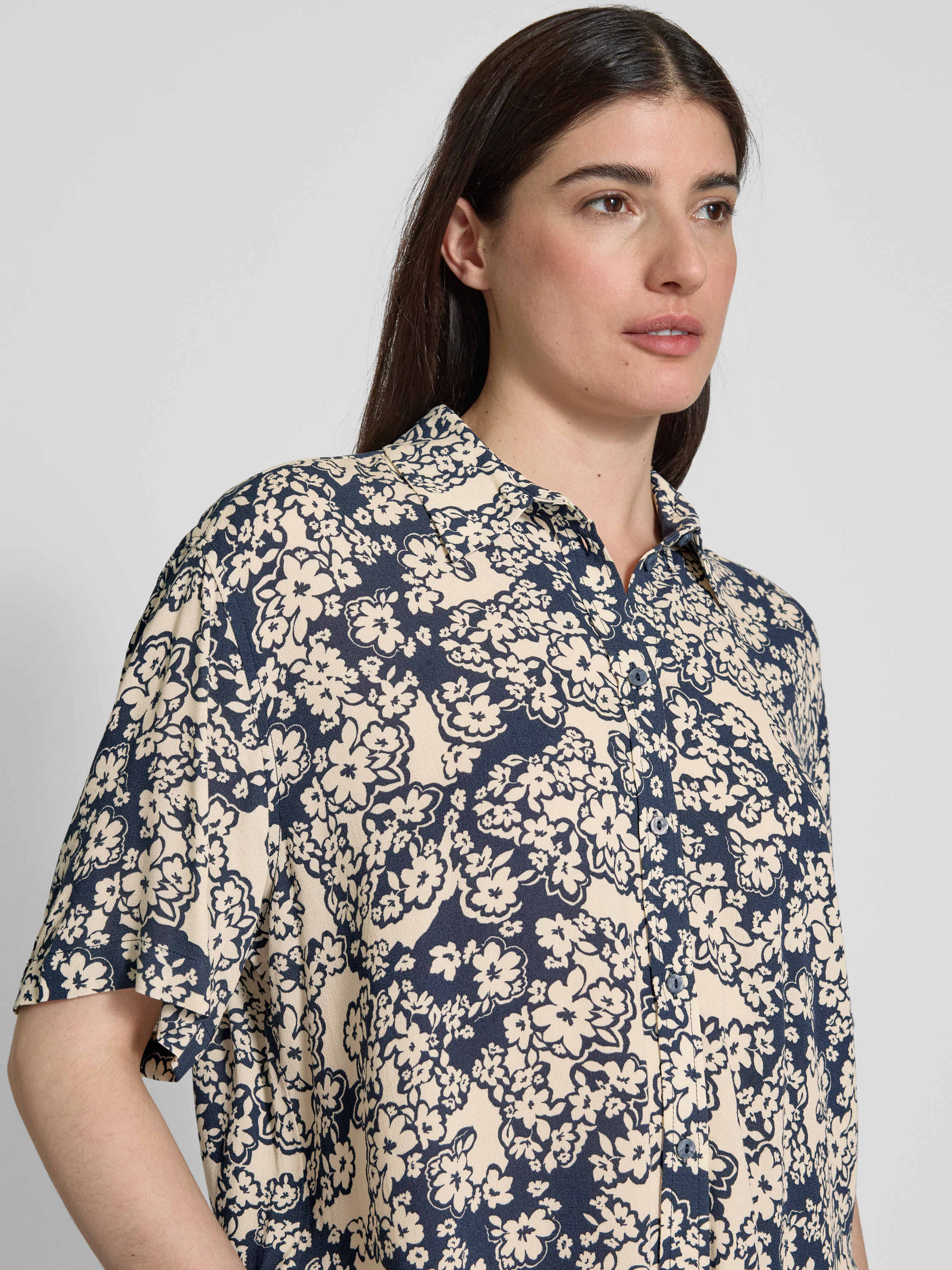 Die Relaxed Fit Bluse von Jake*s Studio Woman, gefertigt aus reiner Viskose, bietet durch ihren lässigen Schnitt und den Umlegekragen einen angenehmen Tragekomfort. Mit ihrem Allover-Look eignet sie sich ideal für entspannte, stilvolle Alltagskombinationen. Der halbärmelige Schnitt rundet das moderne Design ab.