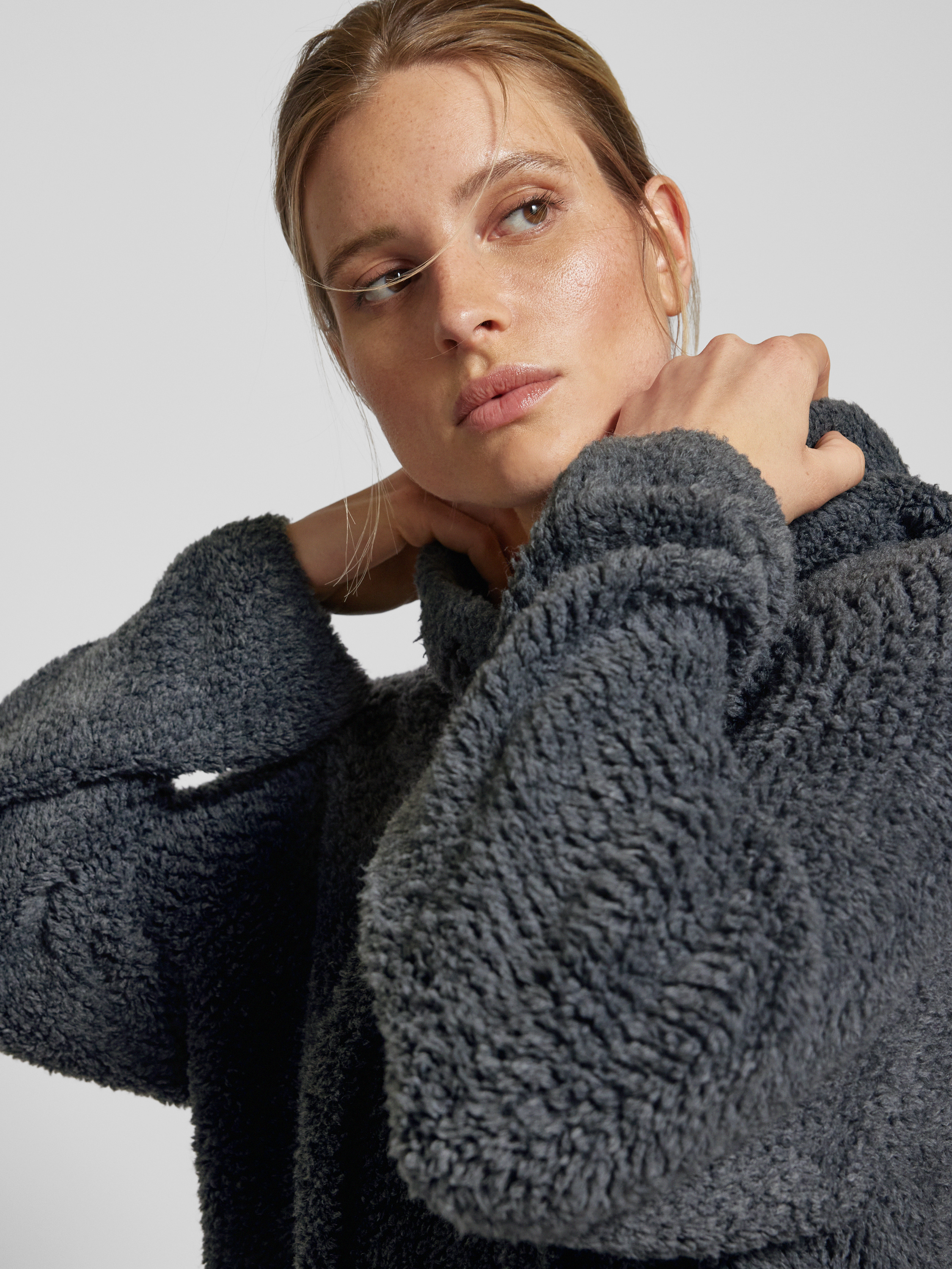 Der Damen Strickhoodie von Jake*s Studio Woman vereint lässigen Komfort mit sportlichem Charme. Der lockere Schnitt und die Raglanärmel bieten Bewegungsfreiheit, während das weiche Frottee-Material sanft auf der Haut liegt. Die Kapuze rundet den entspannten Look funktional ab.