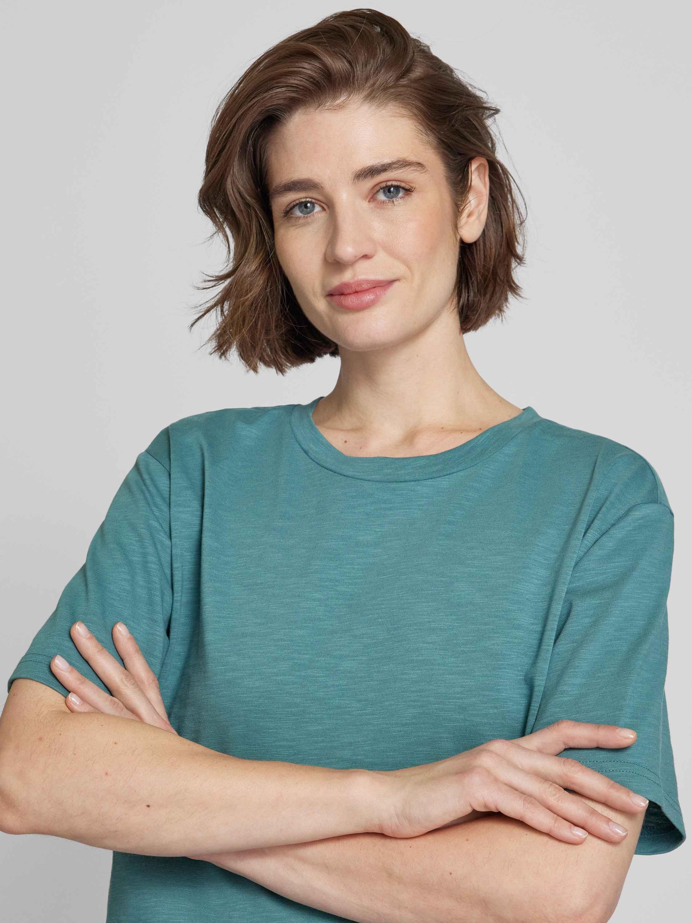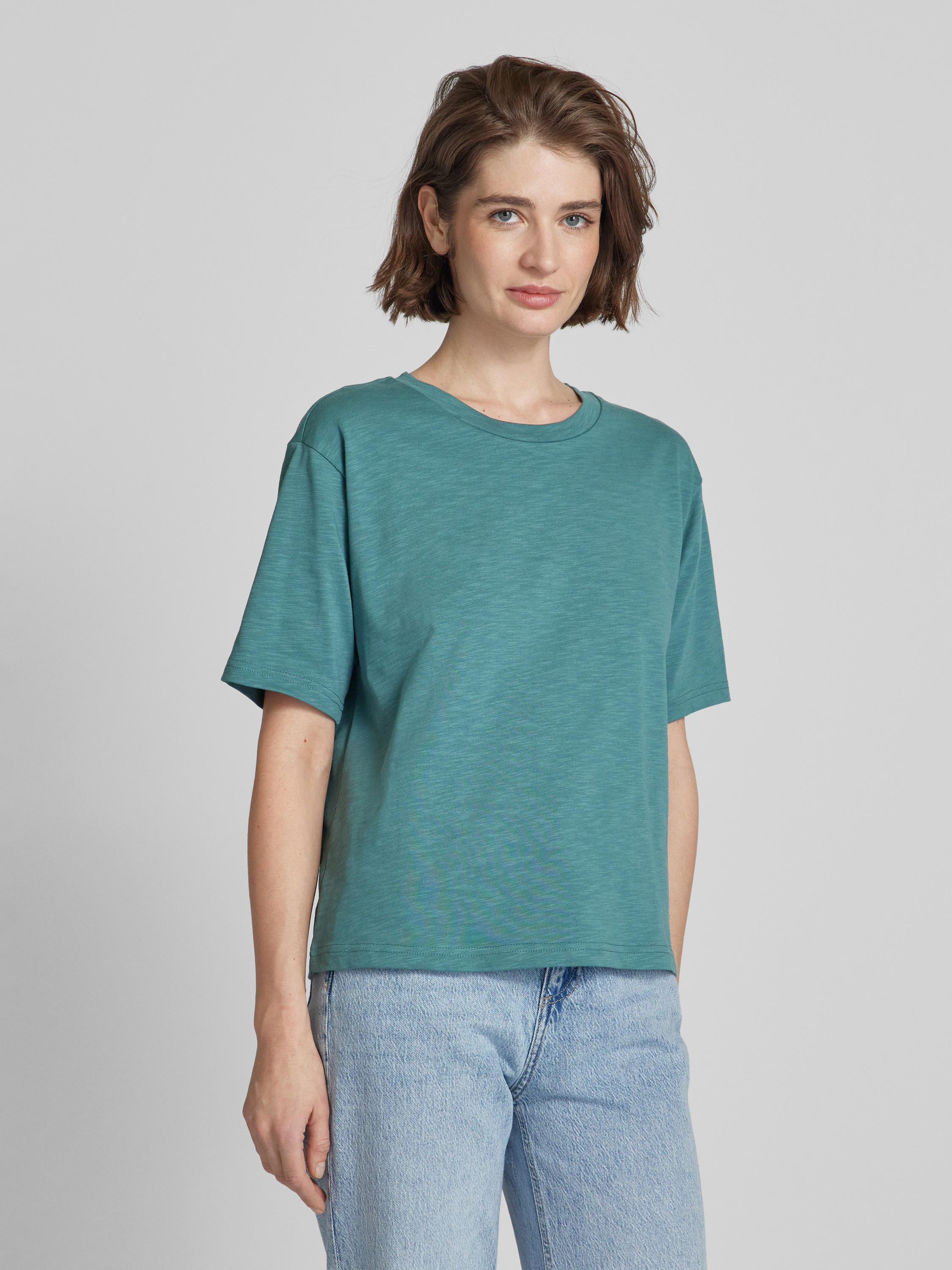 Das Damen T-Shirt von Jake*s Studio Woman präsentiert sich in einer lockeren Passform aus reiner Baumwolle, die sich angenehm auf der Haut anfühlt. Mit seinem unifarbenen Design und dem klassischen Rundhalsausschnitt lässt es sich vielseitig kombinieren. Die überschnittenen Schultern verleihen dem Kleidungsstück eine lässige Note.