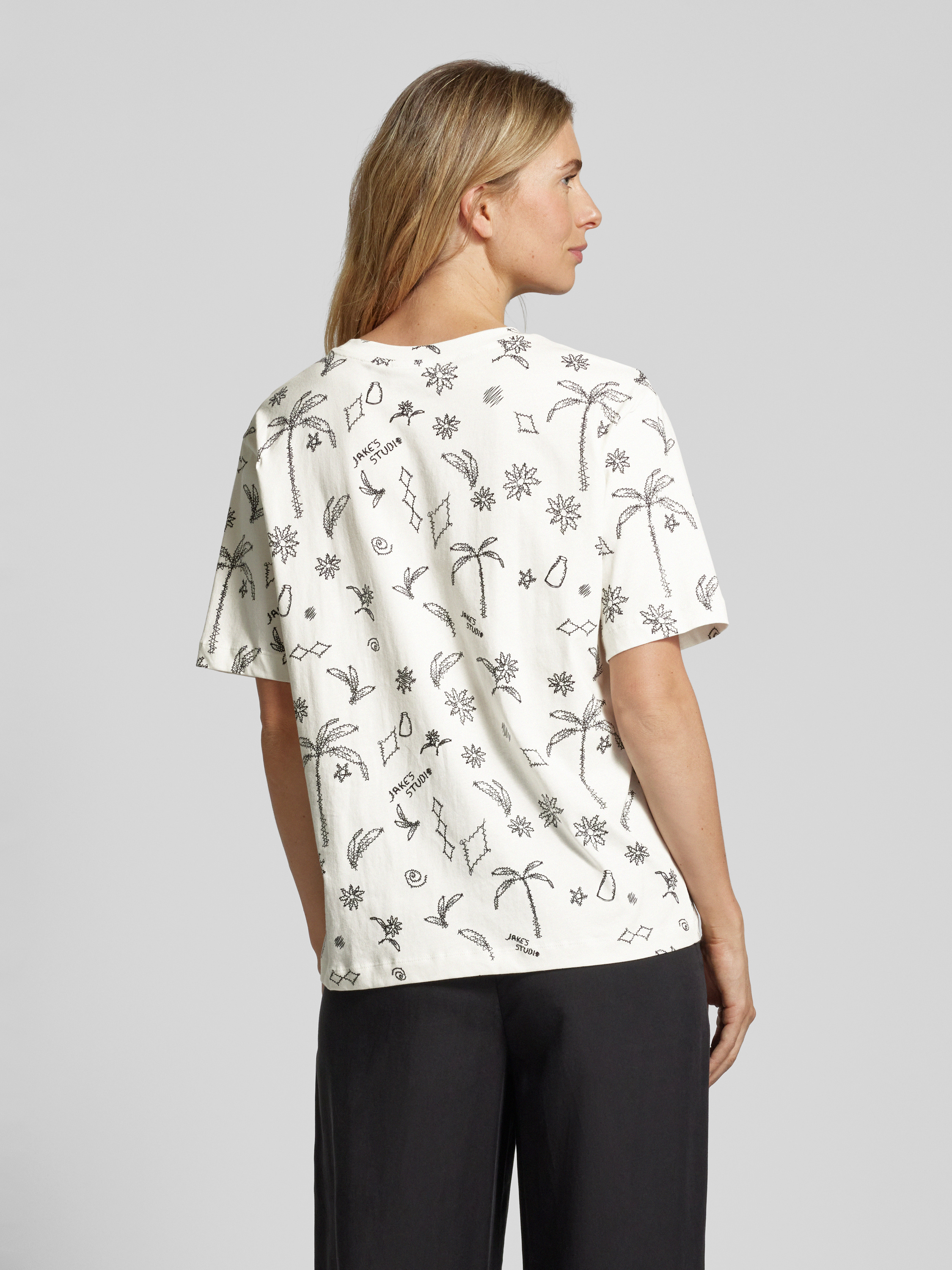Das Damen T-Shirt von Jake*s Studio Woman aus reiner Baumwolle vereint Komfort und Stil mühelos. Durch seinen geraden Schnitt und den lebhaften Allover-Print wird es zum vielseitigen Begleiter im Alltag. Der klassische Rundhalsausschnitt rundet das Design dezent ab.
