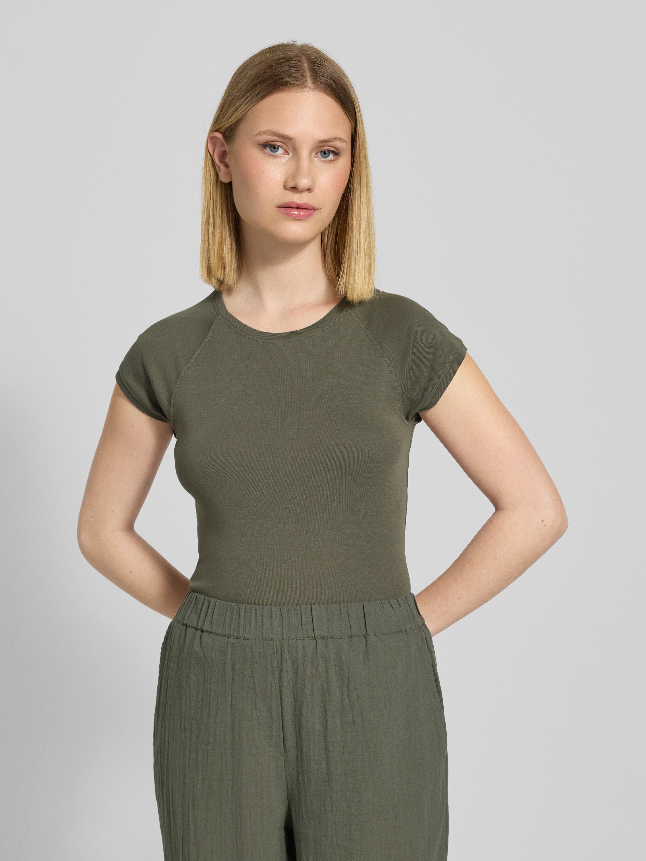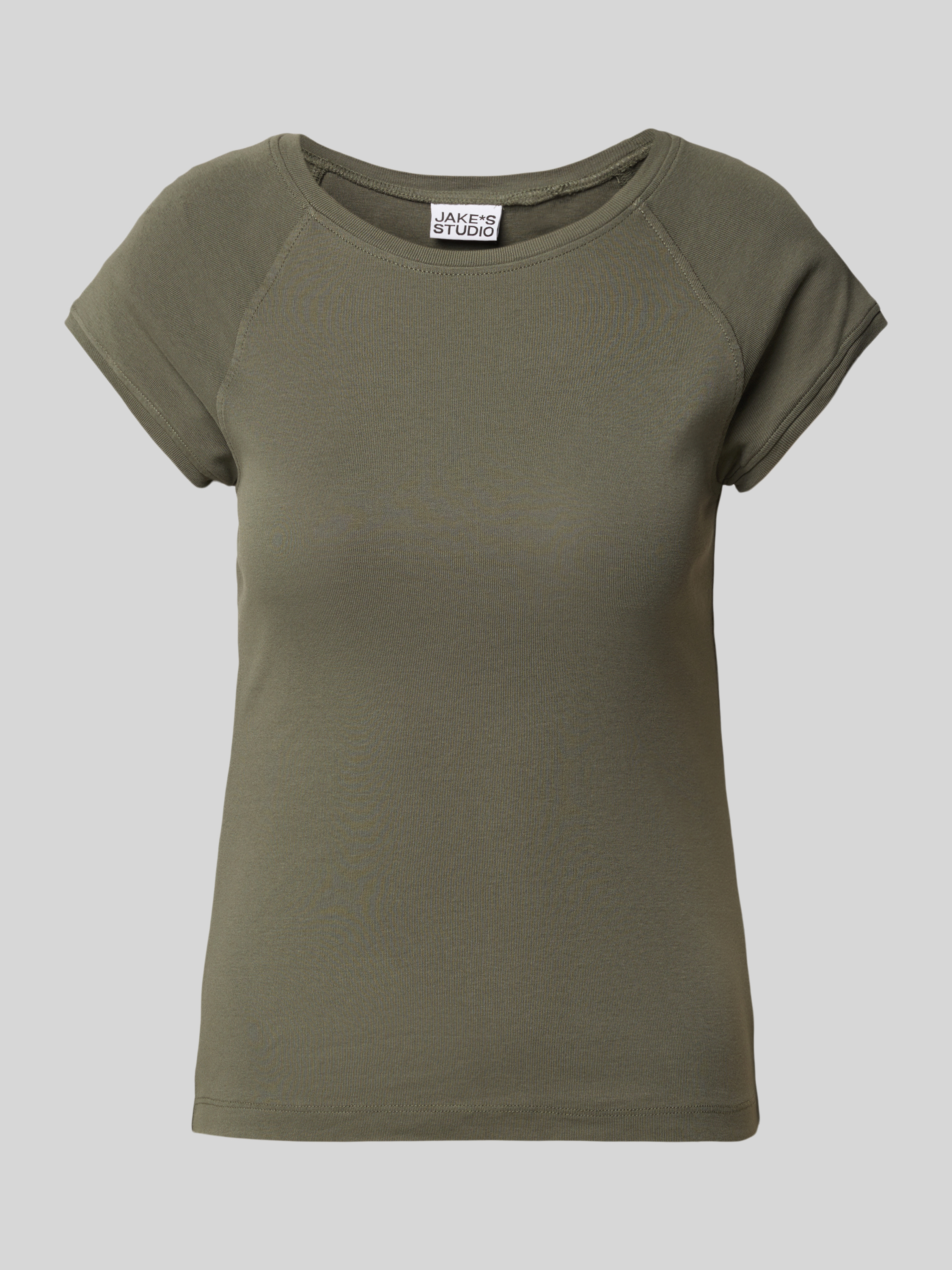 JAKE*S STUDIO WOMANT-Shirt mit geripptem Rundhalsausschnitt in khaki