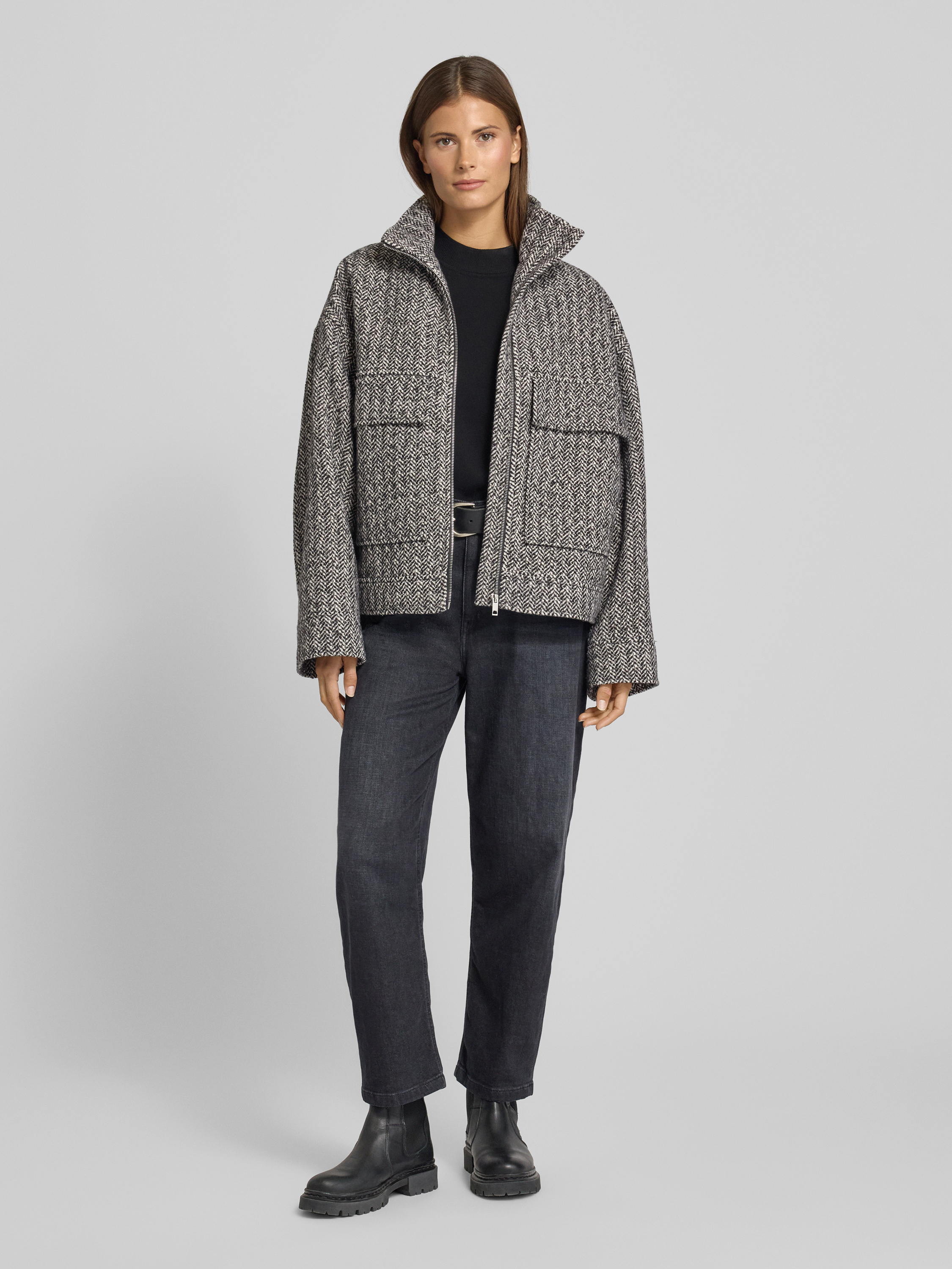 Jake*s CasualJacke mit Stehkragen und Pattentaschen in black