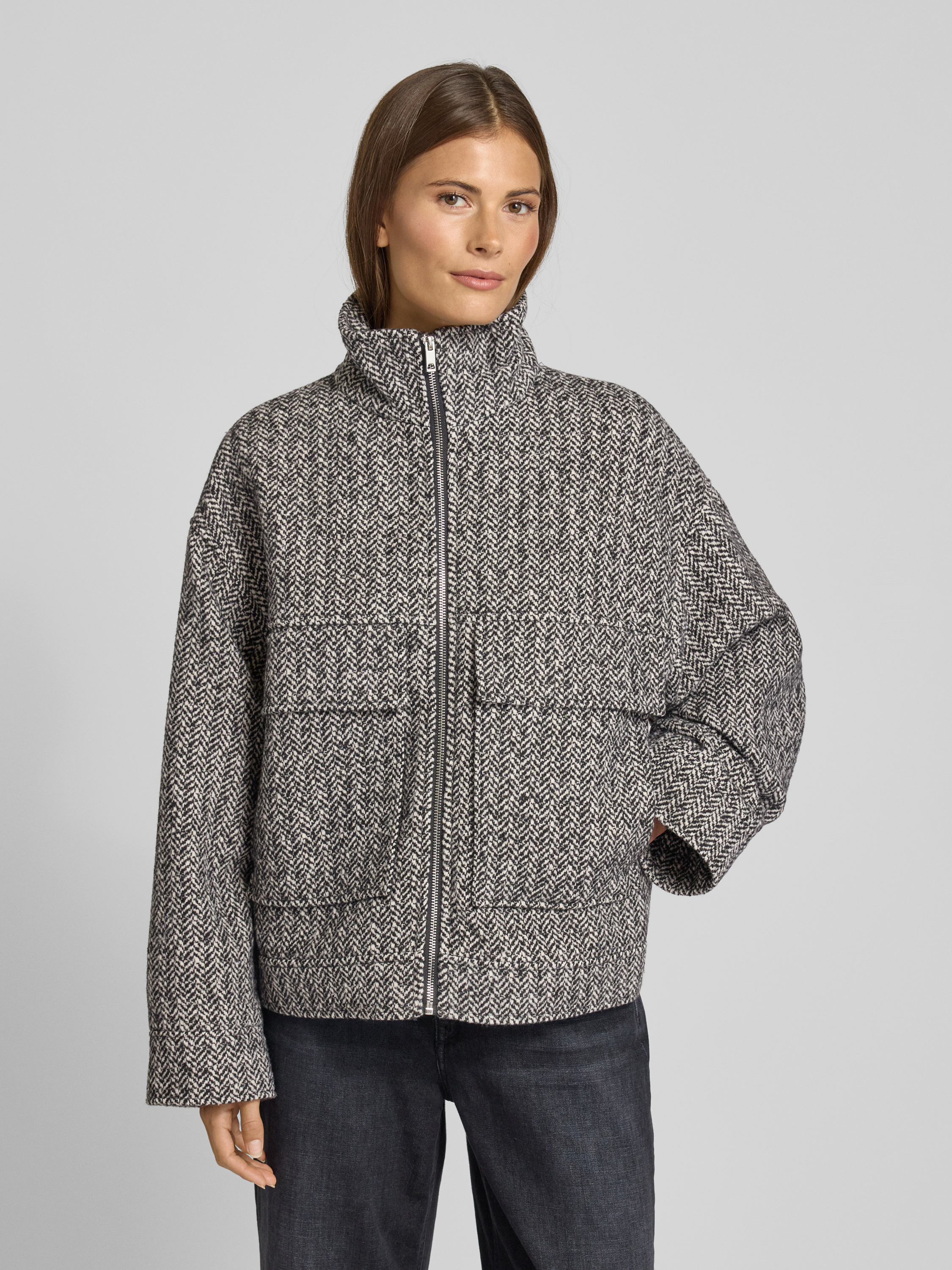 Die Damen Jacke von Jake*s Casual fällt durch ihren entspannten Relaxed Fit angenehm locker und unkompliziert aus, wodurch sie sich vielseitig kombinieren lässt. Der Stehkragen und die markanten Pattentaschen unterstreichen den modernen Charakter, während der Material-Mix mit Viskose-Anteil ein angenehmes Tragegefühl vermittelt. So entsteht ein Kleidungsstück, das Komfort und Alltagstauglichkeit gekonnt verbindet.
