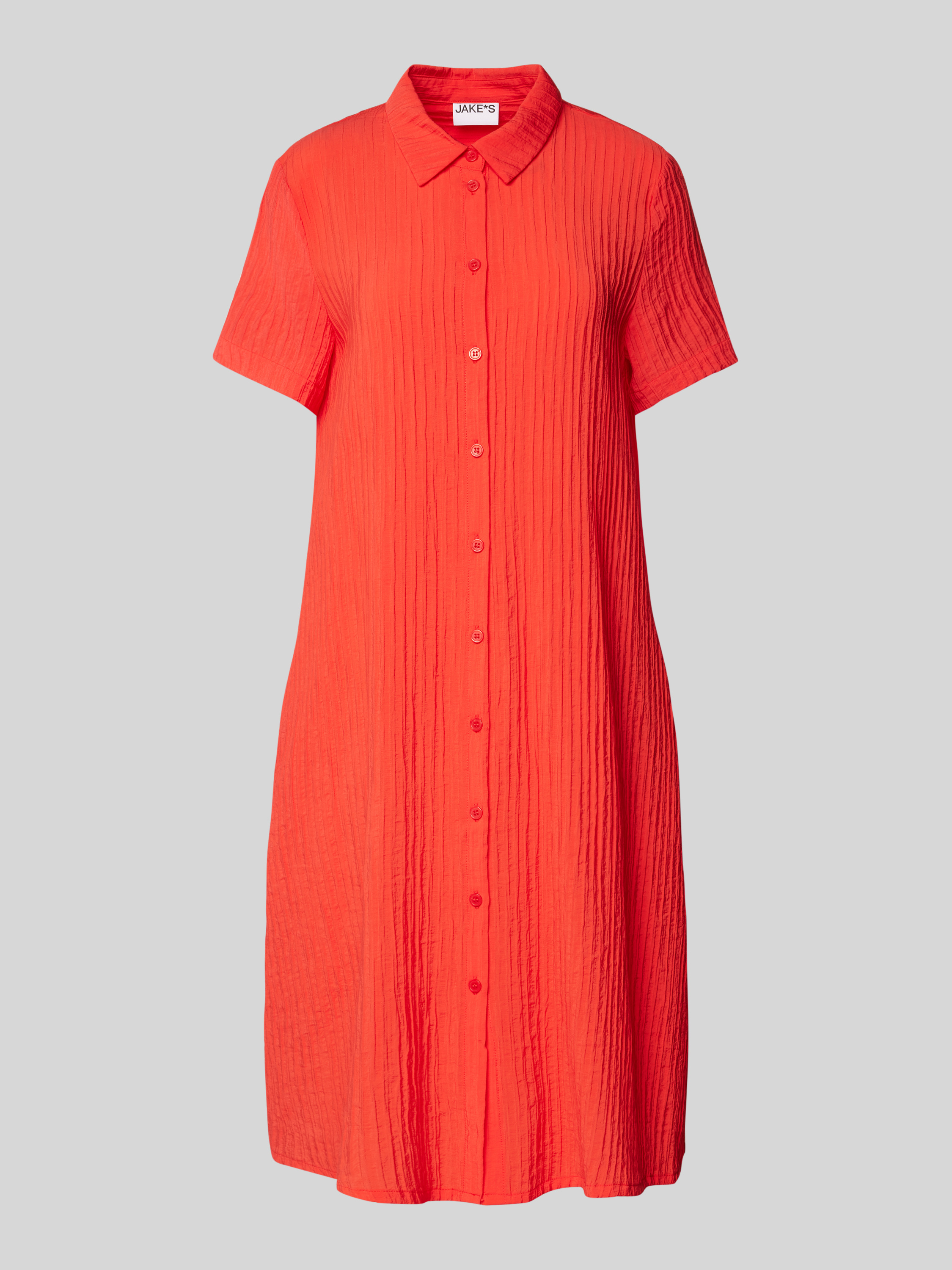 Das Jake*s Casual Hemdblusenkleid in knielanger Ausführung eignet sich ideal für vielseitige Anlässe und überzeugt durch einen geraden Schnitt, der ein angenehmes Tragegefühl vermittelt. Der Viskose-Mix sorgt für fließende Bewegungen, während das strukturierte Muster dem Kleid eine dezente Eleganz verleiht.