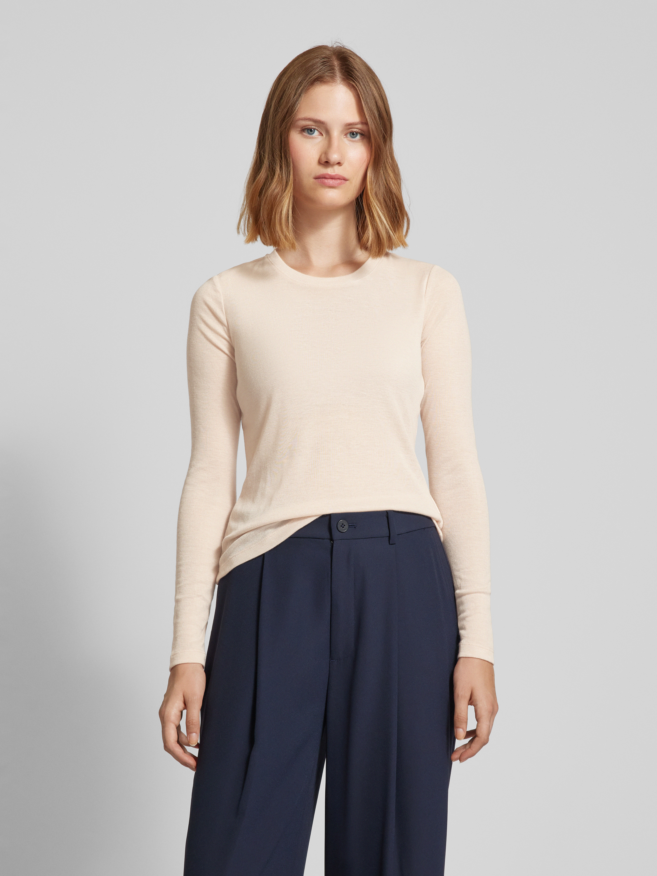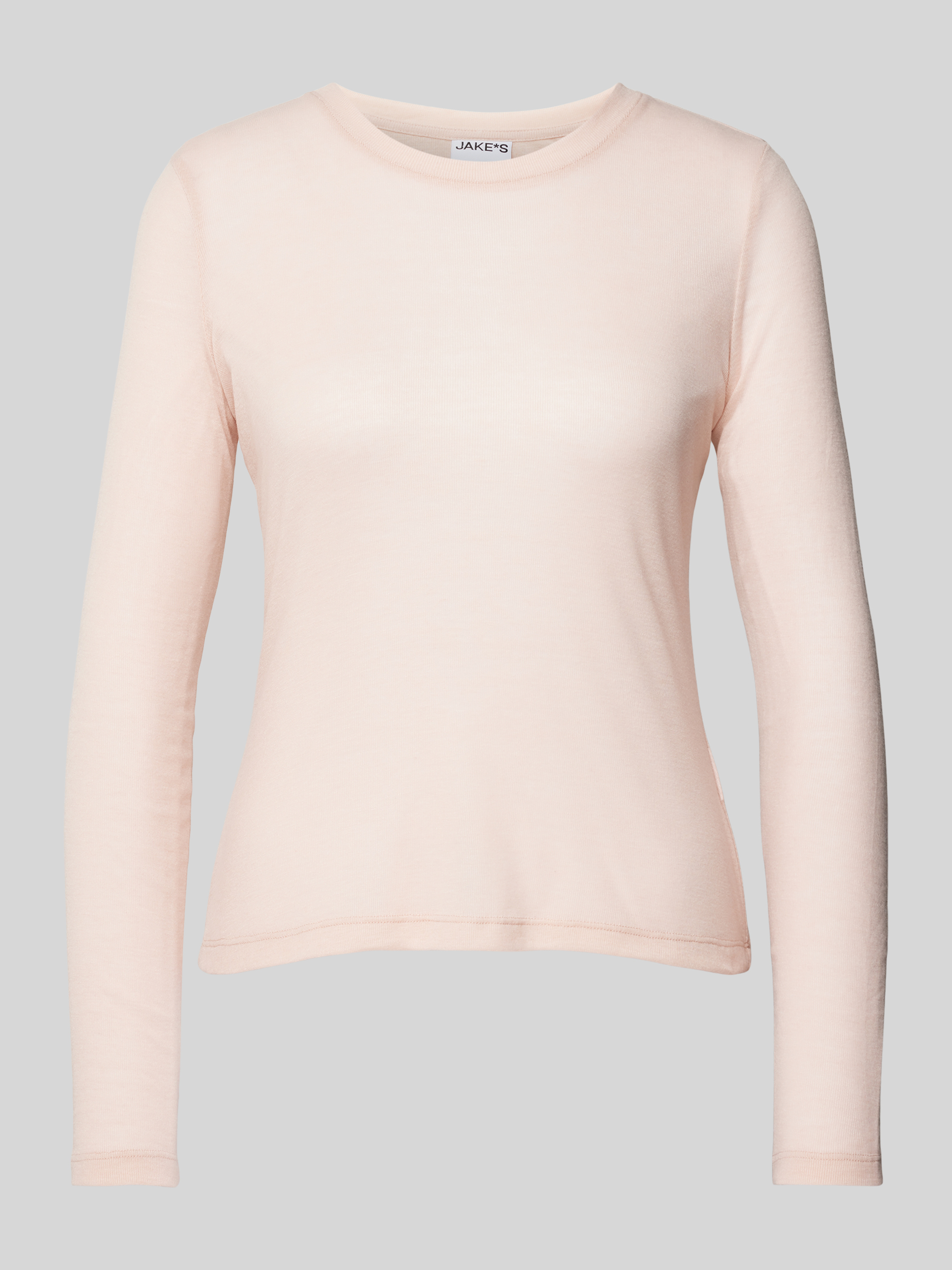 Jake*s CasualLongsleeve mit geripptem Rundhalsausschnitt in hellrosa