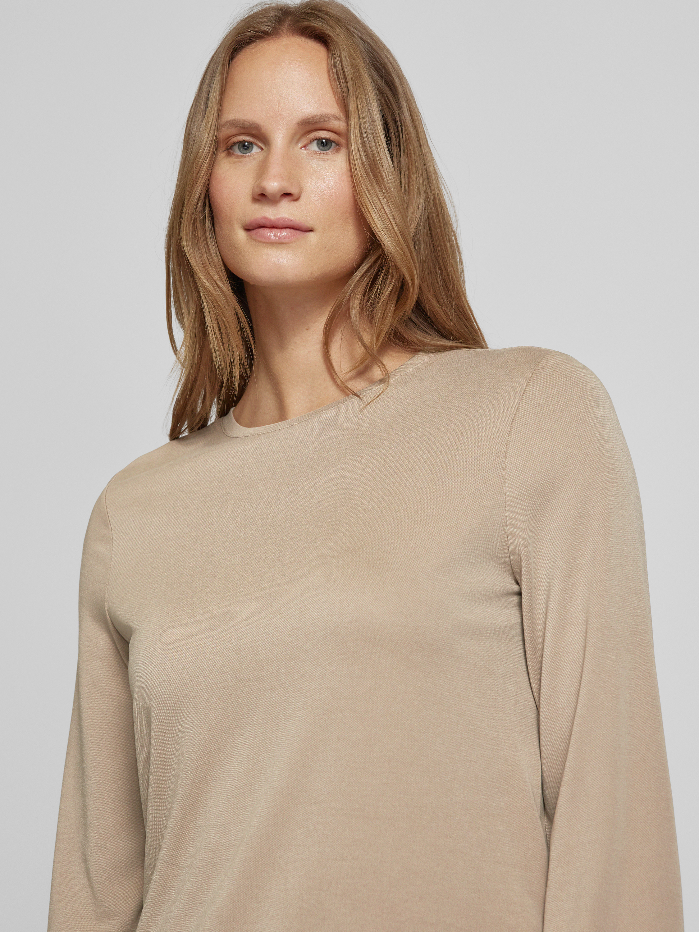 Das Longsleeve von JAKE*S WOMAN CASUAL überzeugt durch seinen geraden Schnitt und den bequemen Modal-Mix, der ein angenehmes Tragegefühl vermittelt. Das unifarbene Design und der klassische Rundhalsausschnitt machen es vielseitig kombinierbar und zu einem unverzichtbaren Teil jeder Garderobe. Ideal für entspannte Tage.