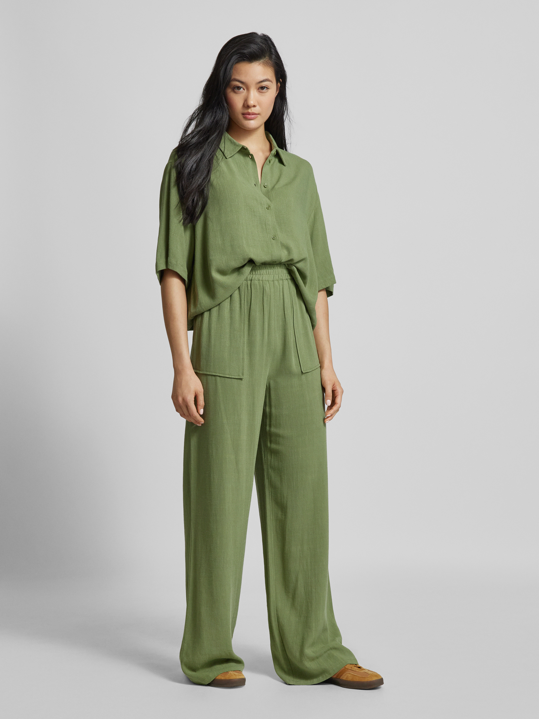 Jake*s CasualLoose Fit Stoffhose aus Viskose-Mix mit Leinen-Anteil in grass