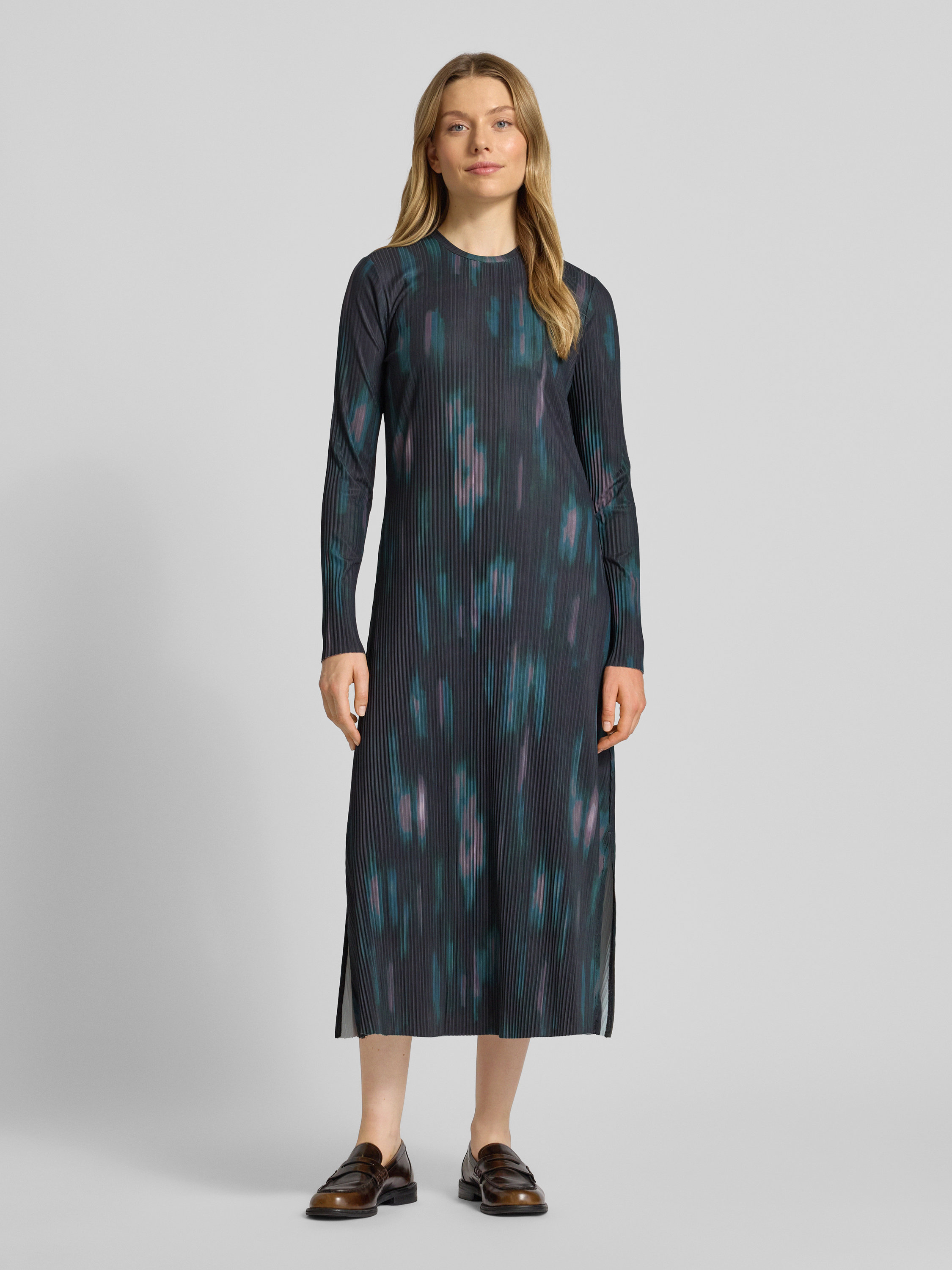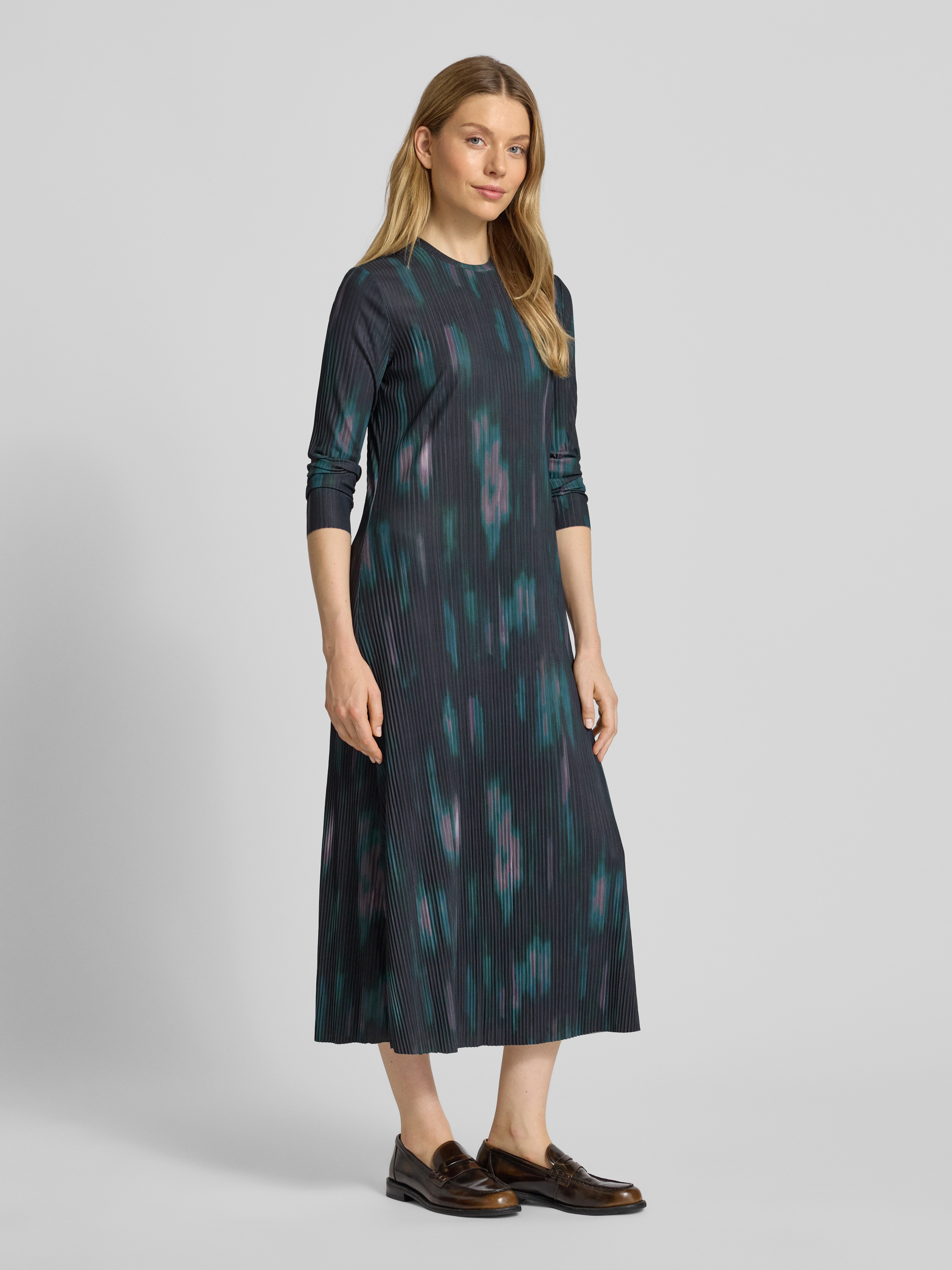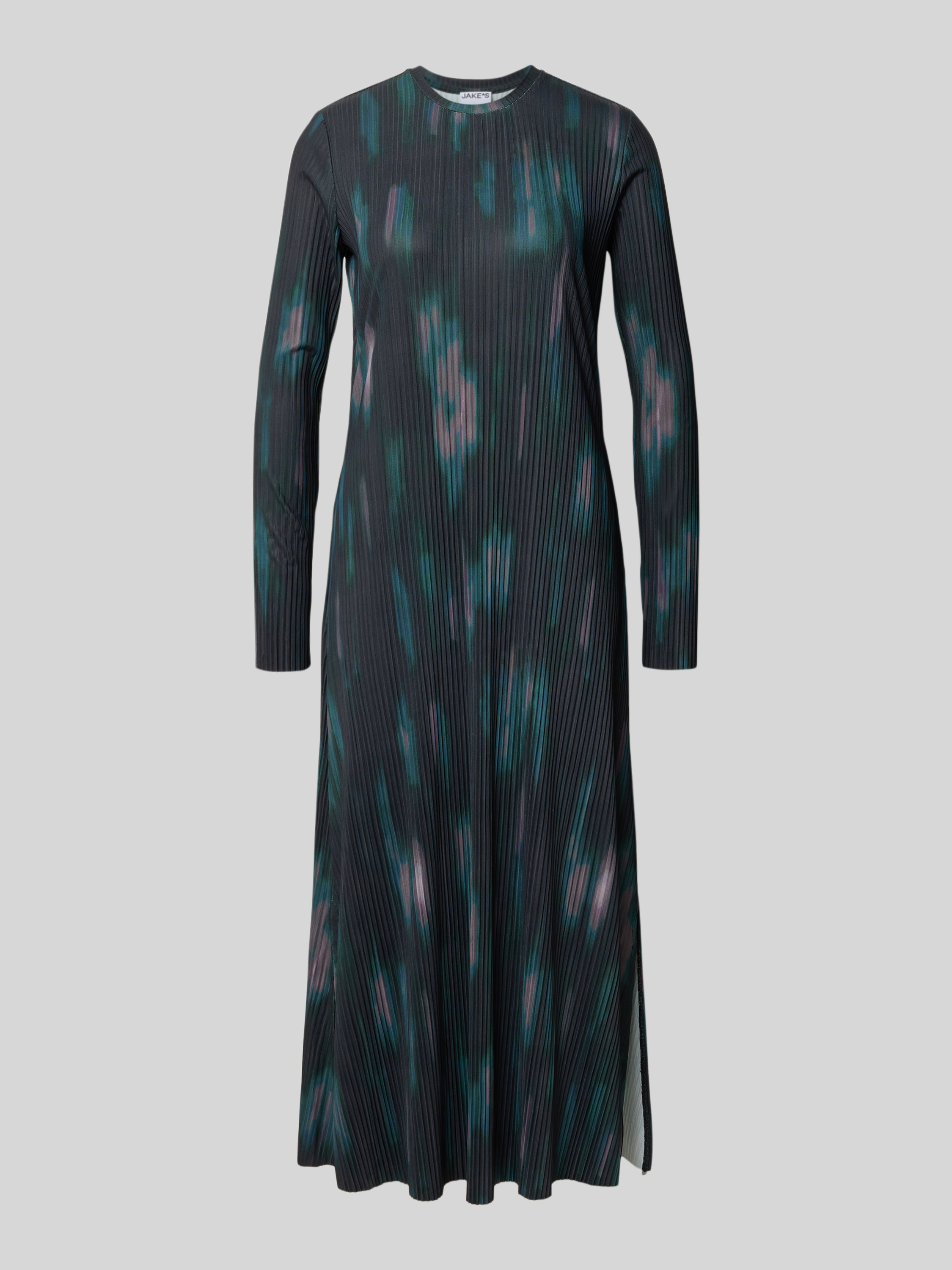 Das Damen Midikleid von Jake*s Casual zeigt sich in einer weich fließenden A-Linie, die Bewegungsfreiheit begünstigt und eine angenehme Passform schafft. Durch den Rundhalsausschnitt und die feinen Plisseefalten entsteht ein harmonischer Look. Der Material-Mix mit Stretch-Anteil sorgt für komfortables Tragen.
