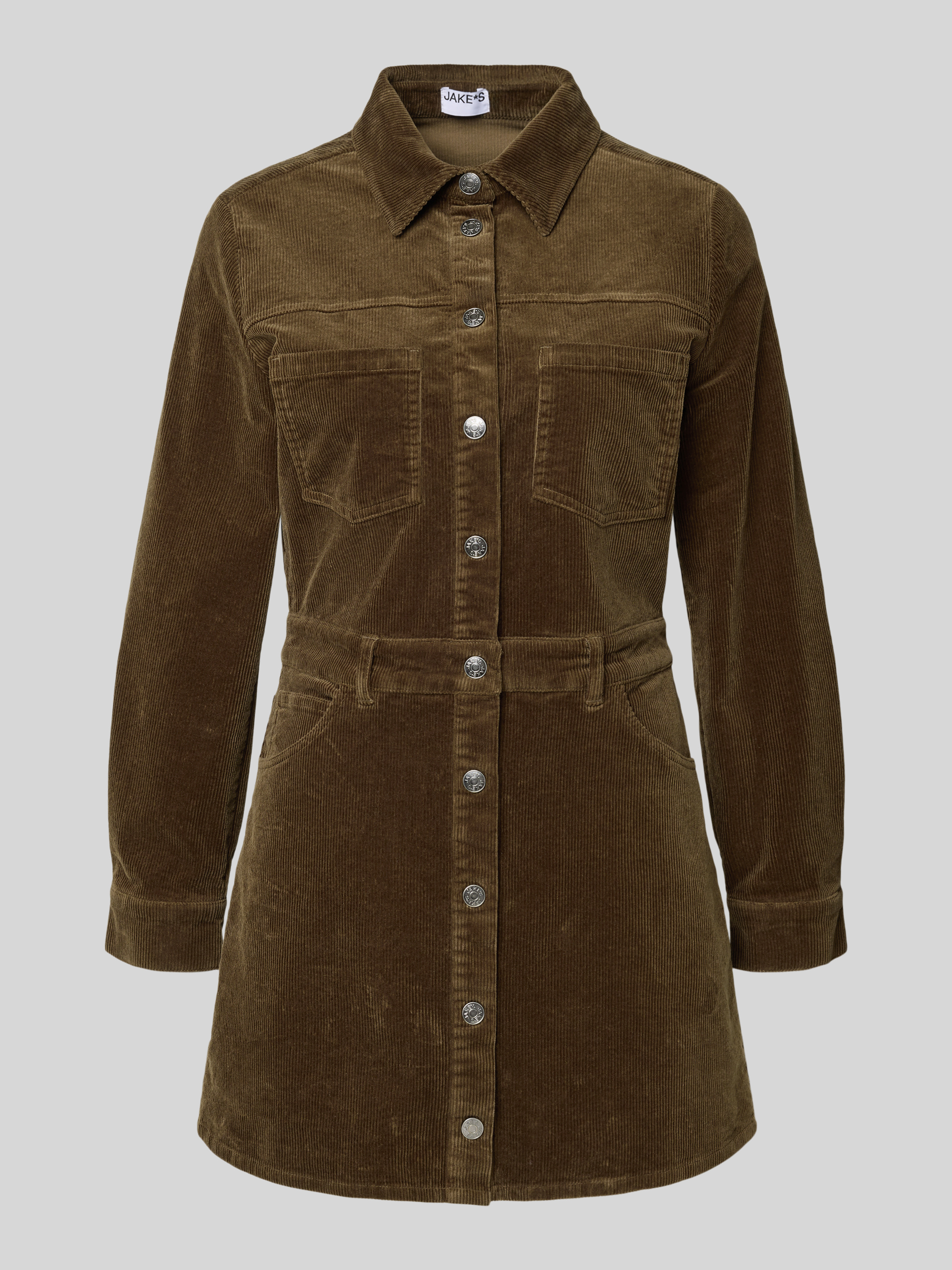 Jake*s CasualMinikleid in Cord-Optik mit Brusttaschen in oliv