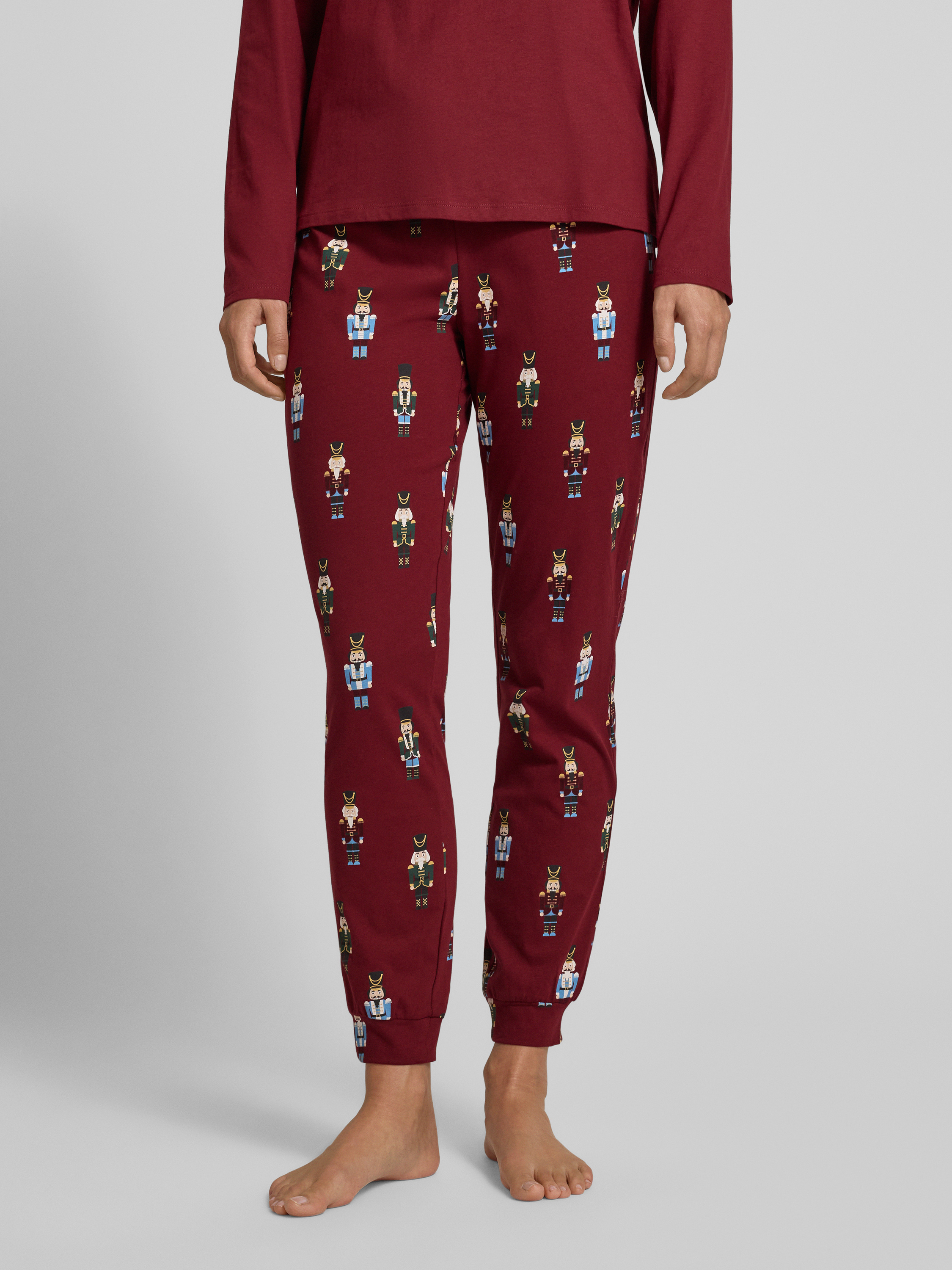 Jake*s CasualPyjama-Hose mit elastischem Bund und Tunnelzug in bordeaux