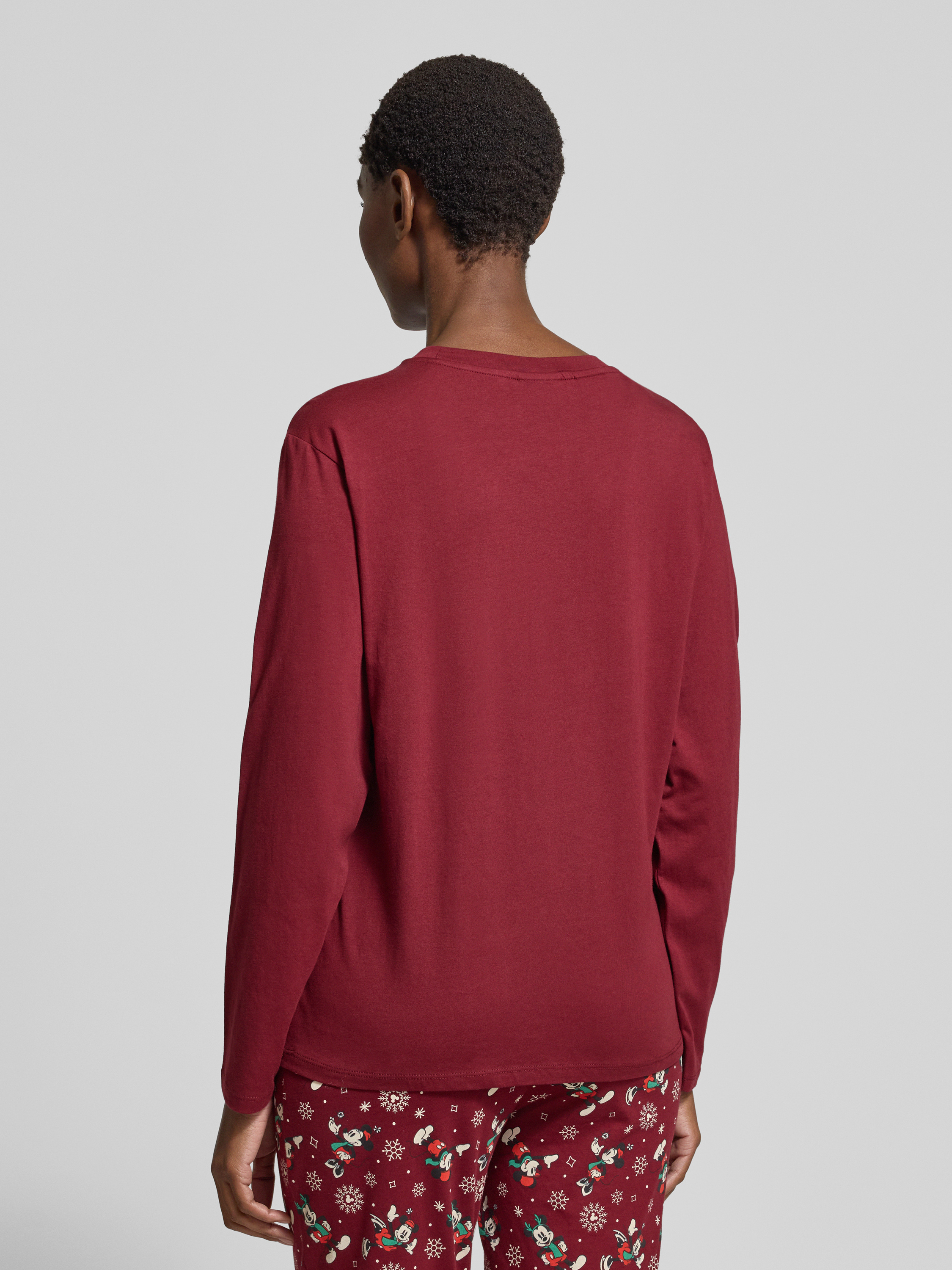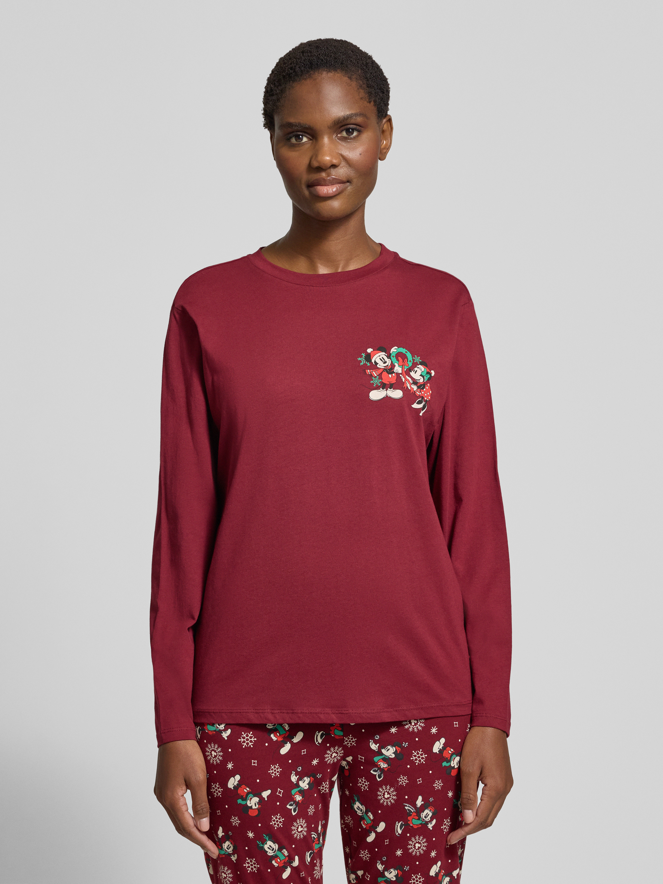 Jake*s CasualPyjama-Oberteil mit Motiv-Print und Rundhalsausschnitt in bordeaux