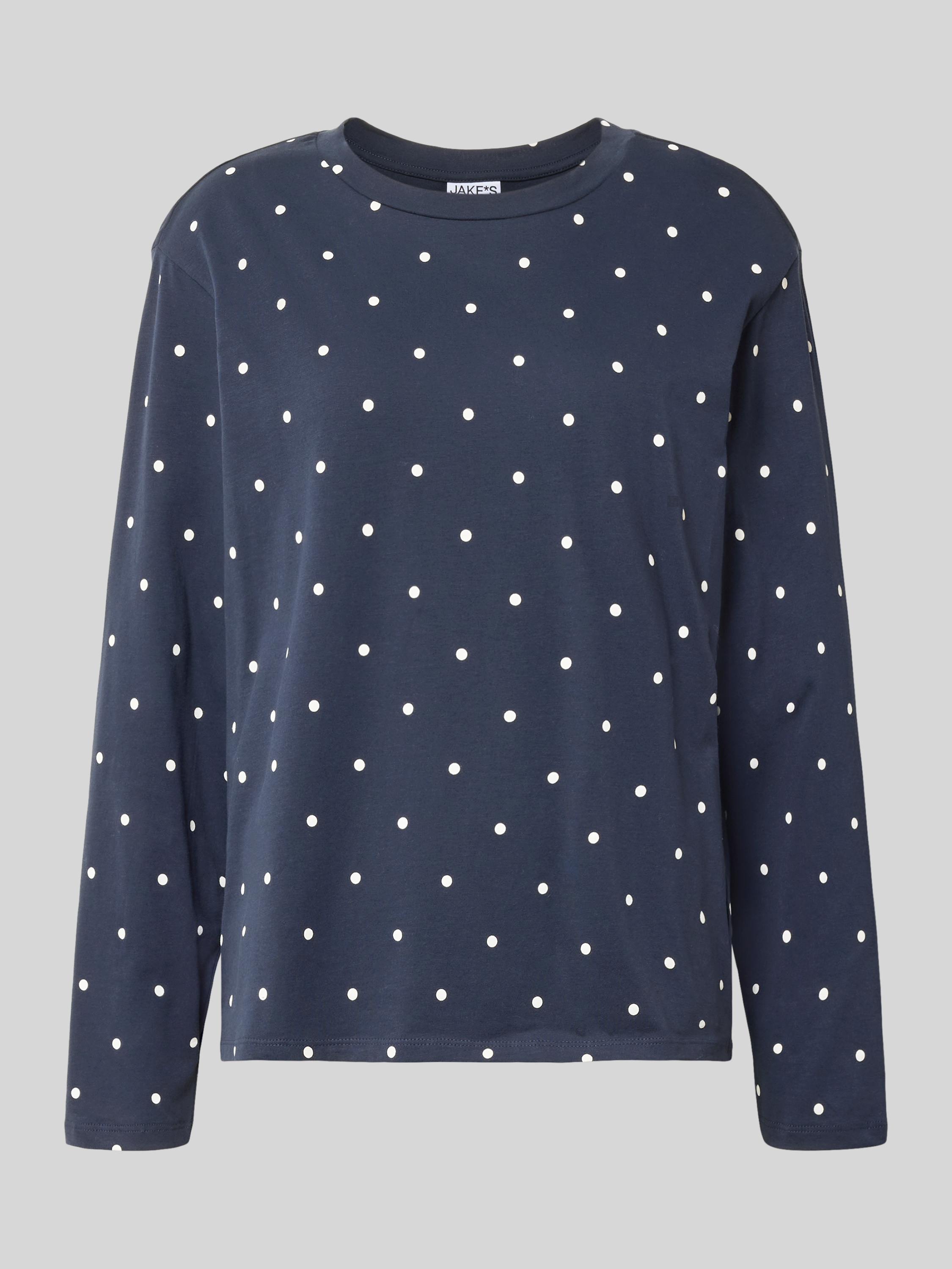 Das Damen Pyjama-Oberteil von Jake*s Casual aus reiner Baumwolle fühlt sich angenehm weich auf der Haut an und sorgt durch den Regular Fit für eine entspannte Passform. Mit dem Allover-Look und dem klassischen Rundhalsausschnitt wirkt es zurückhaltend und unkompliziert. So eignet sich das Oberteil bestens für ruhige Stunden zu Hause.