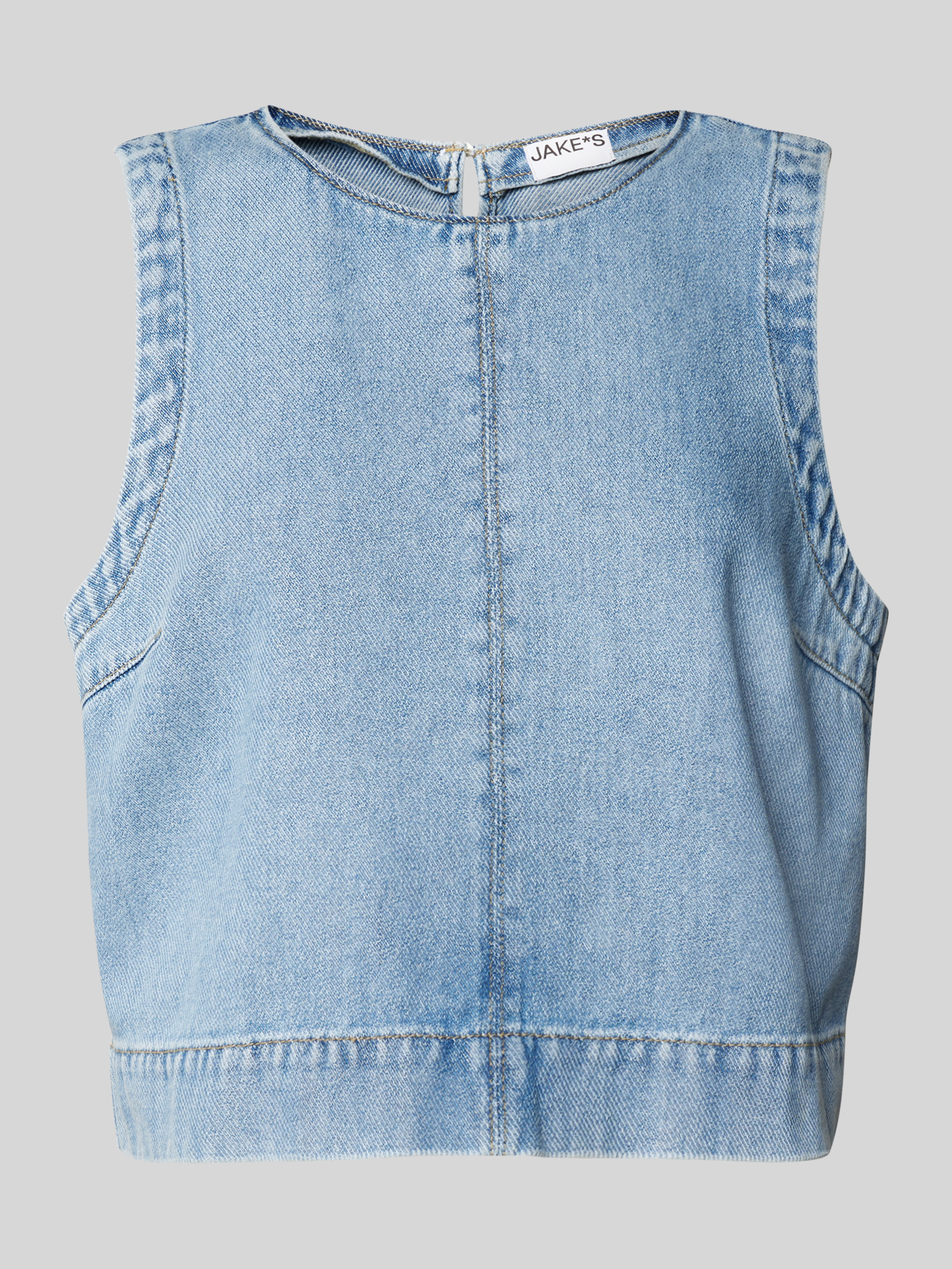Das Jake*s Casual Jeansblusentop für Damen präsentiert sich in einem lockeren Schnitt und besteht aus reiner Baumwolle, die angenehm auf der Haut liegt. Der Rundhalsausschnitt und der dezente Schlüsselloch-Ausschnitt am Rücken verleihen dem Top eine subtile Eleganz. Ideal für entspannte Tage.