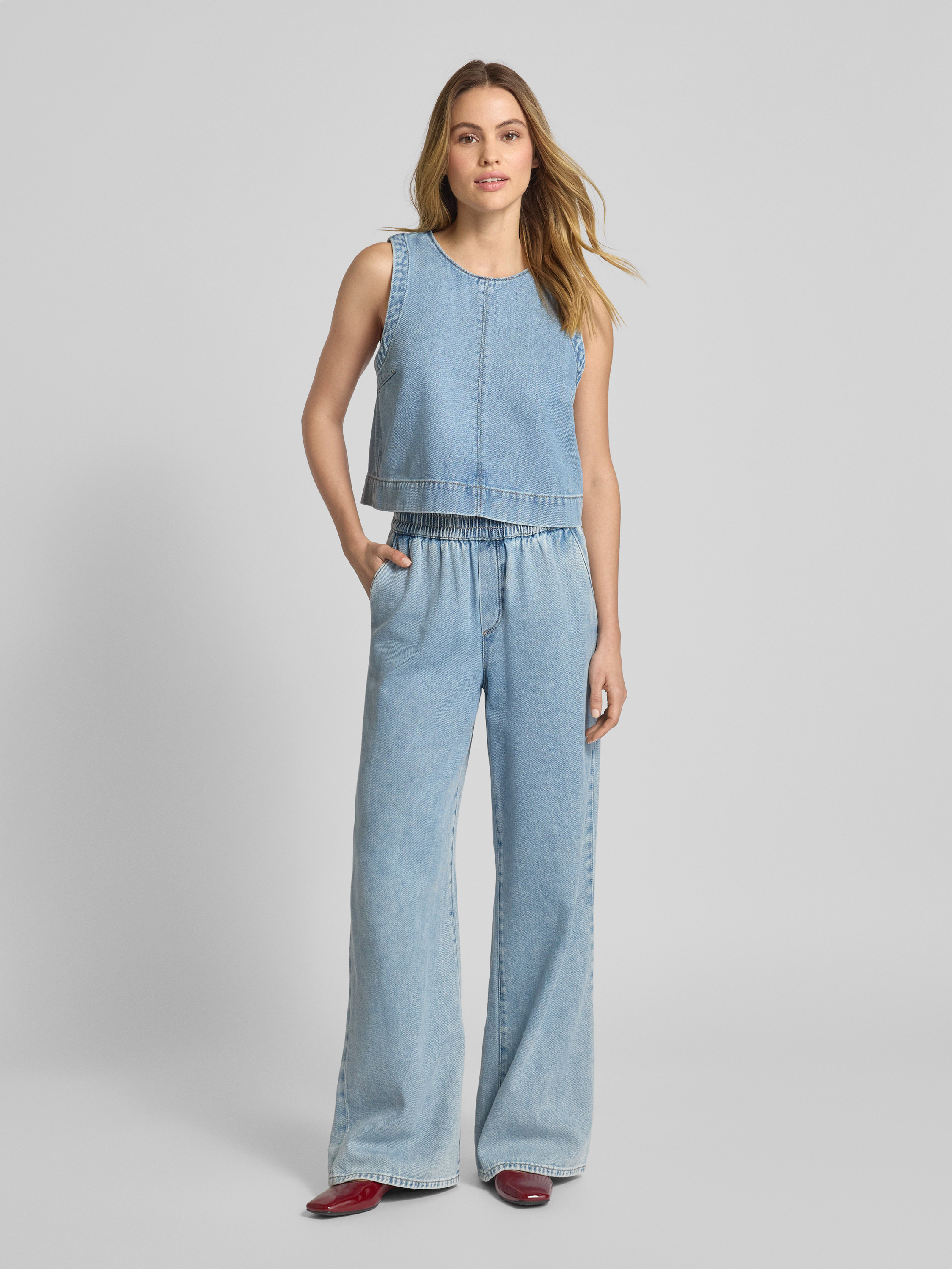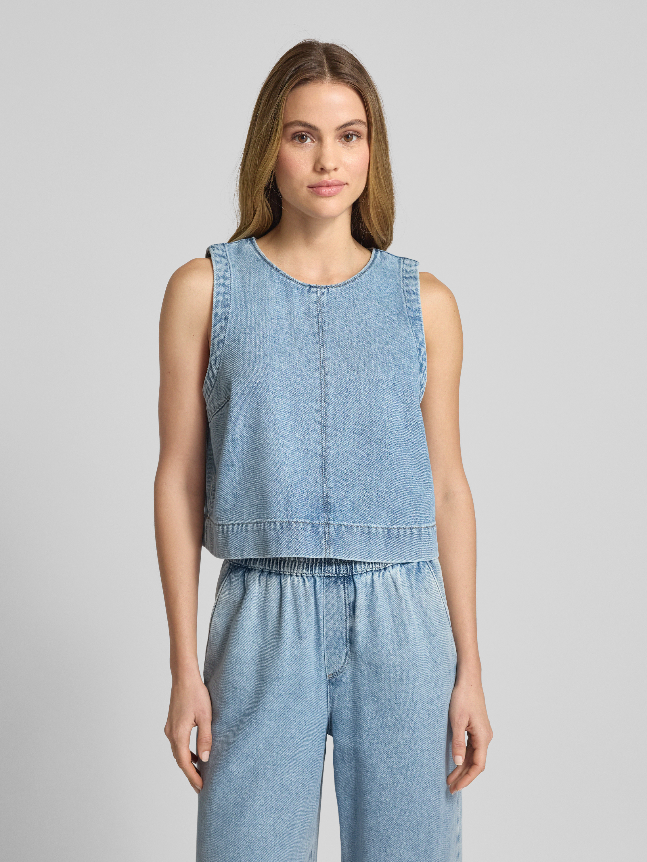 Jake*s CasualRelaxed Fit Jeansblusentop mit Rundhalsausschnitt in sky