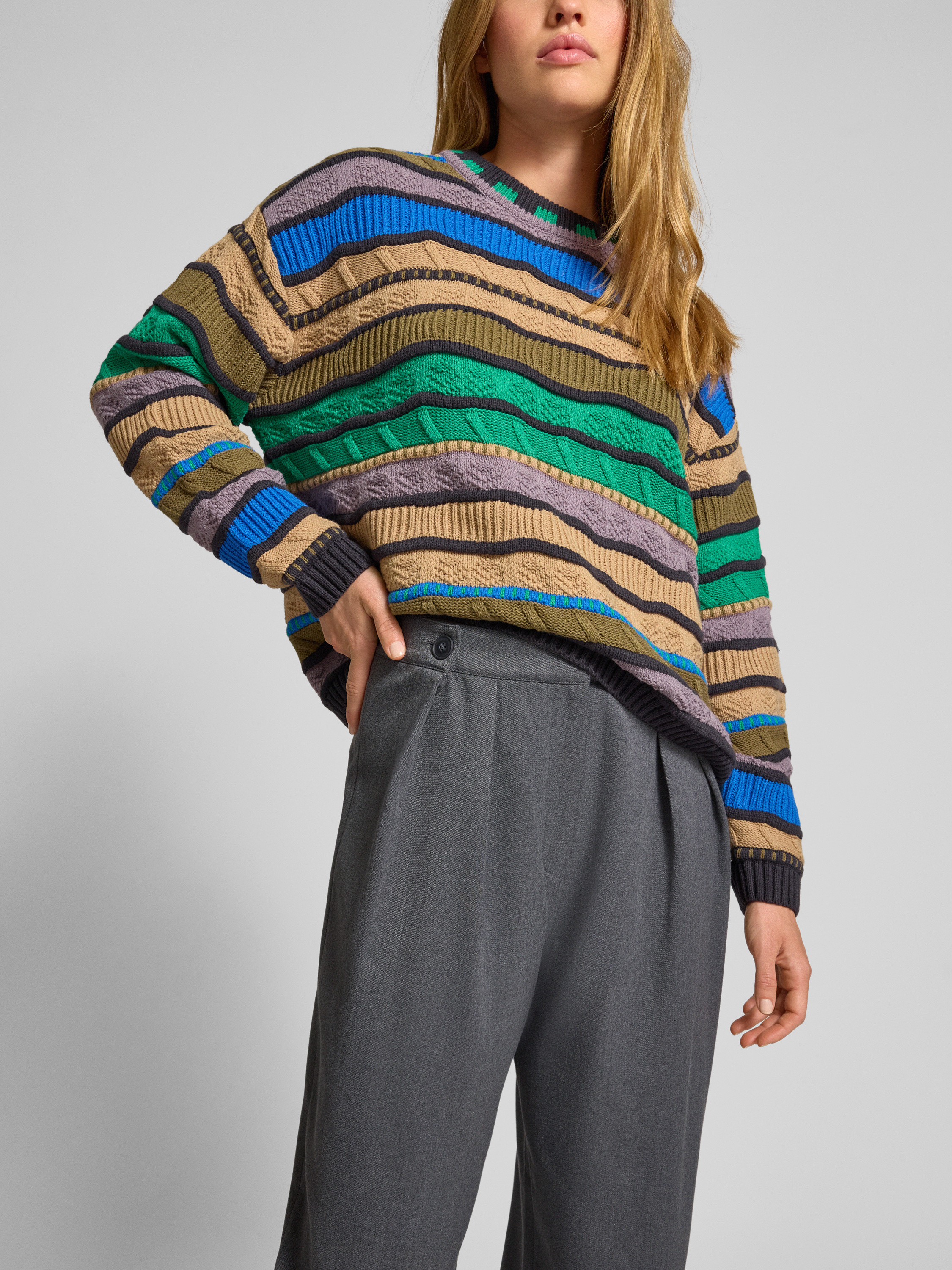 Die Stoffhose von Jake*s Casual überzeugt durch ihr weites Bein und die eleganten gelegten Falten, die für einen angenehmen Tragekomfort sorgen. Paspeltaschen am Gesäß bieten eine praktische Note, während Zierknöpfe dem Design eine stilvolle Raffinesse verleihen. Ideal für vielfältige Anlässe.