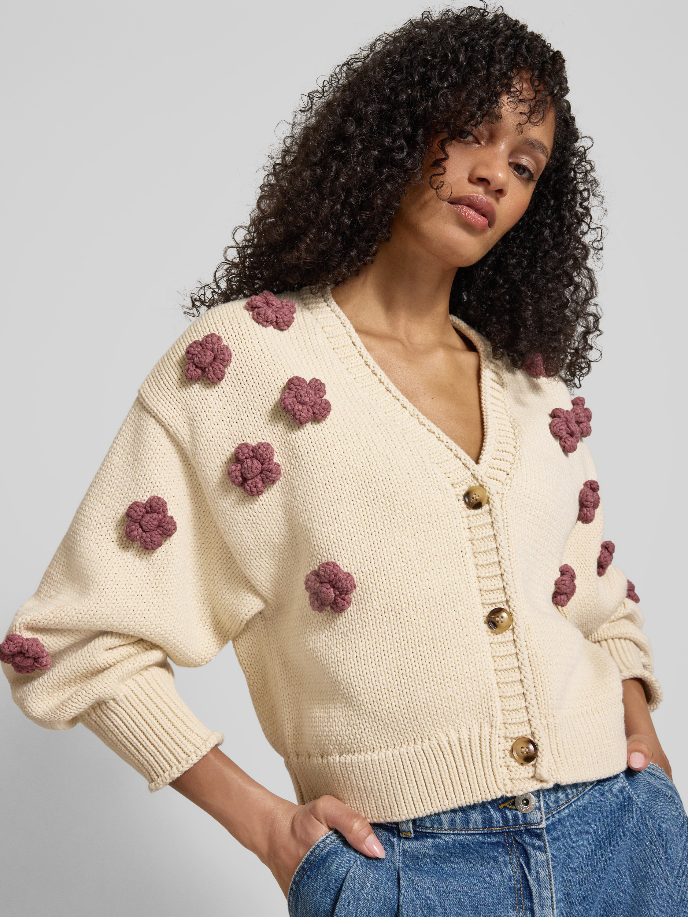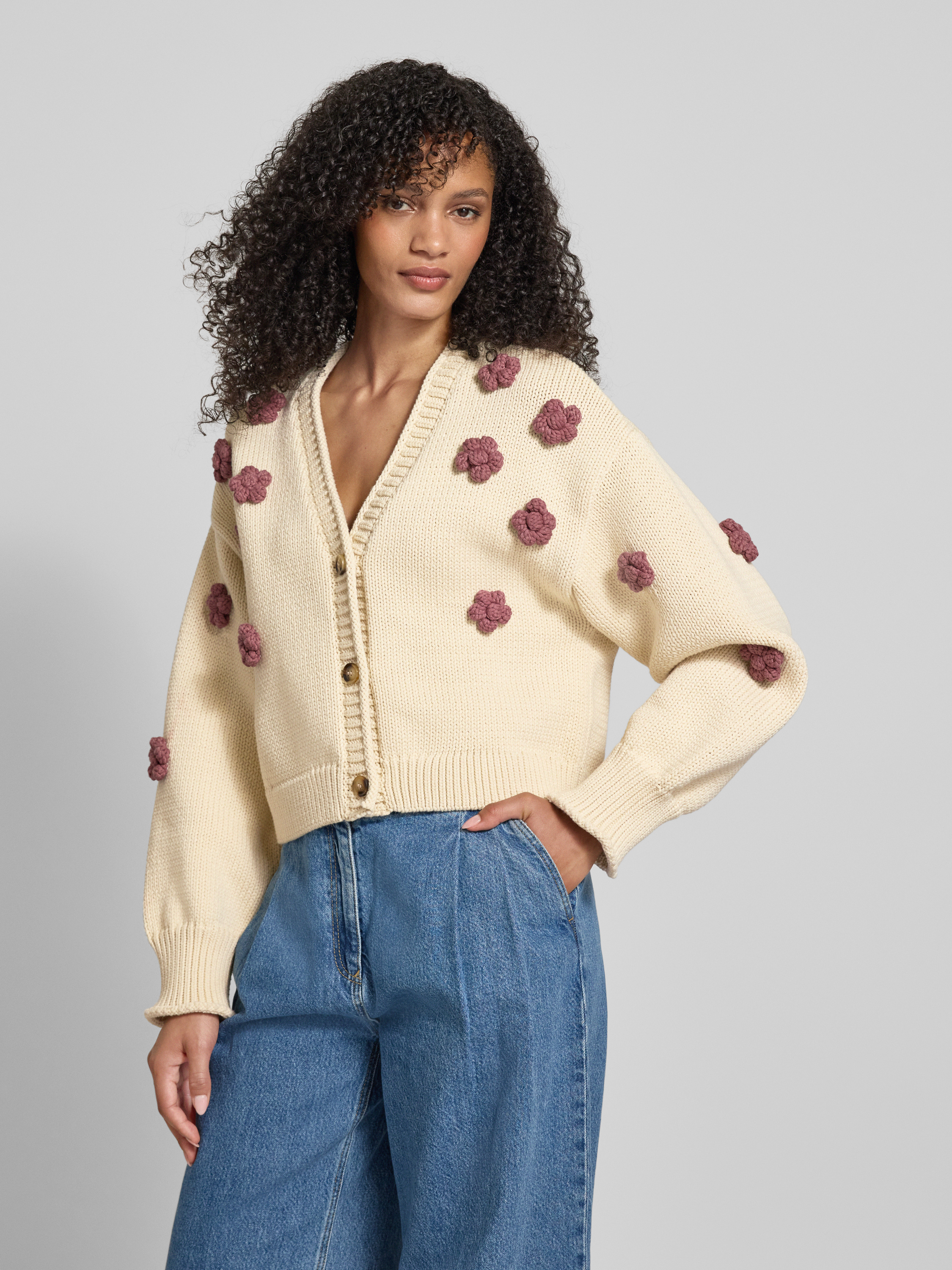 Jake*s CasualStrickjacke mit überschnittenen Schultern und V-Ausschnitt in ecru